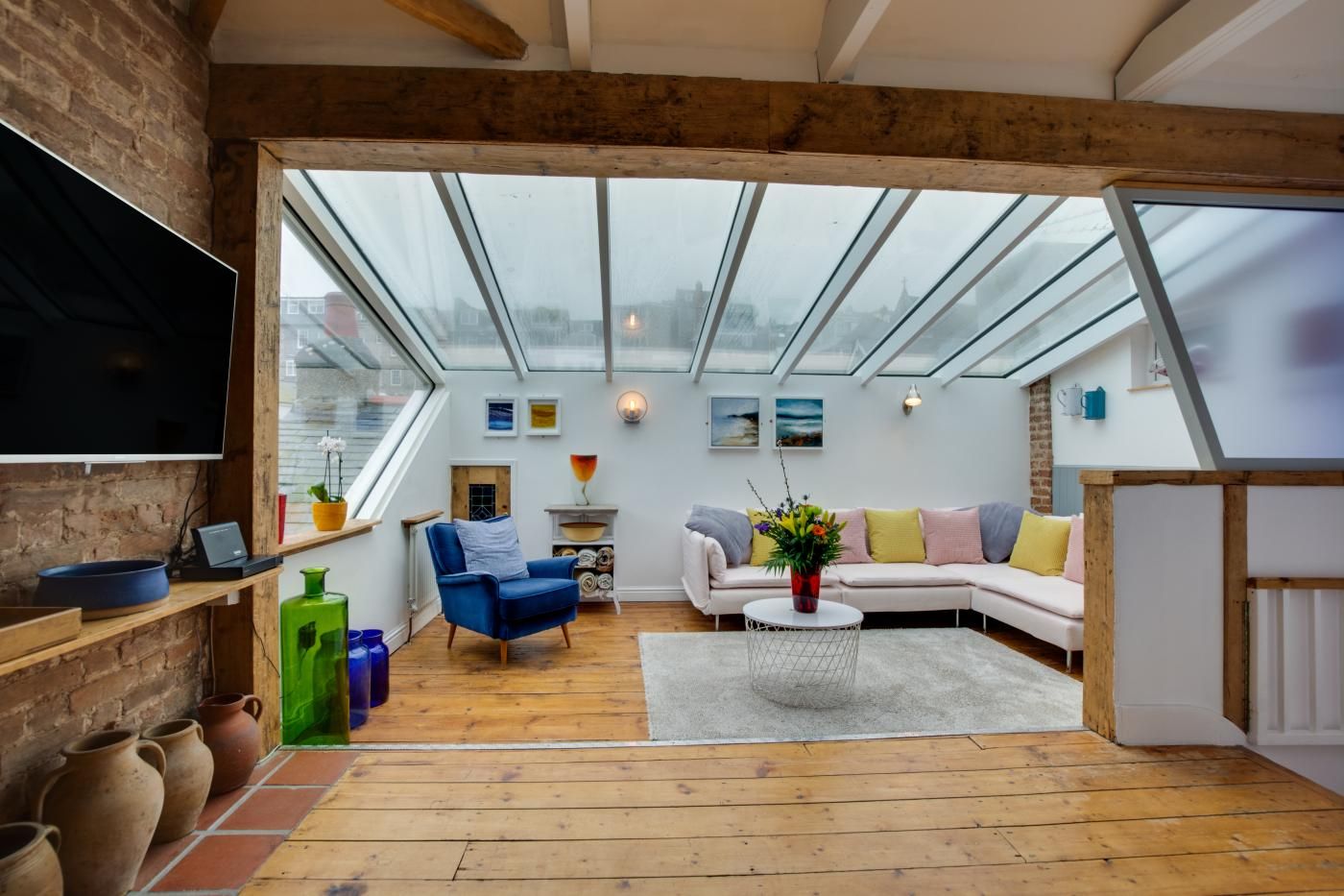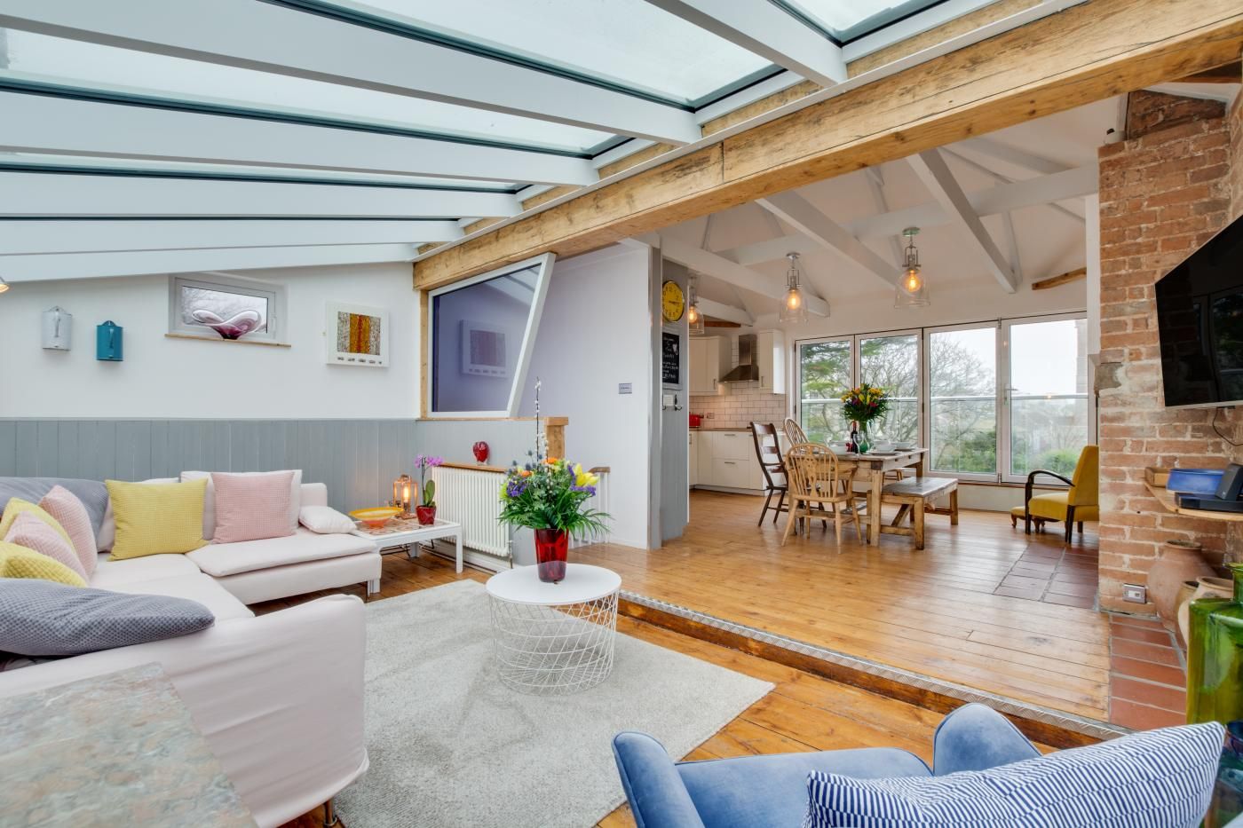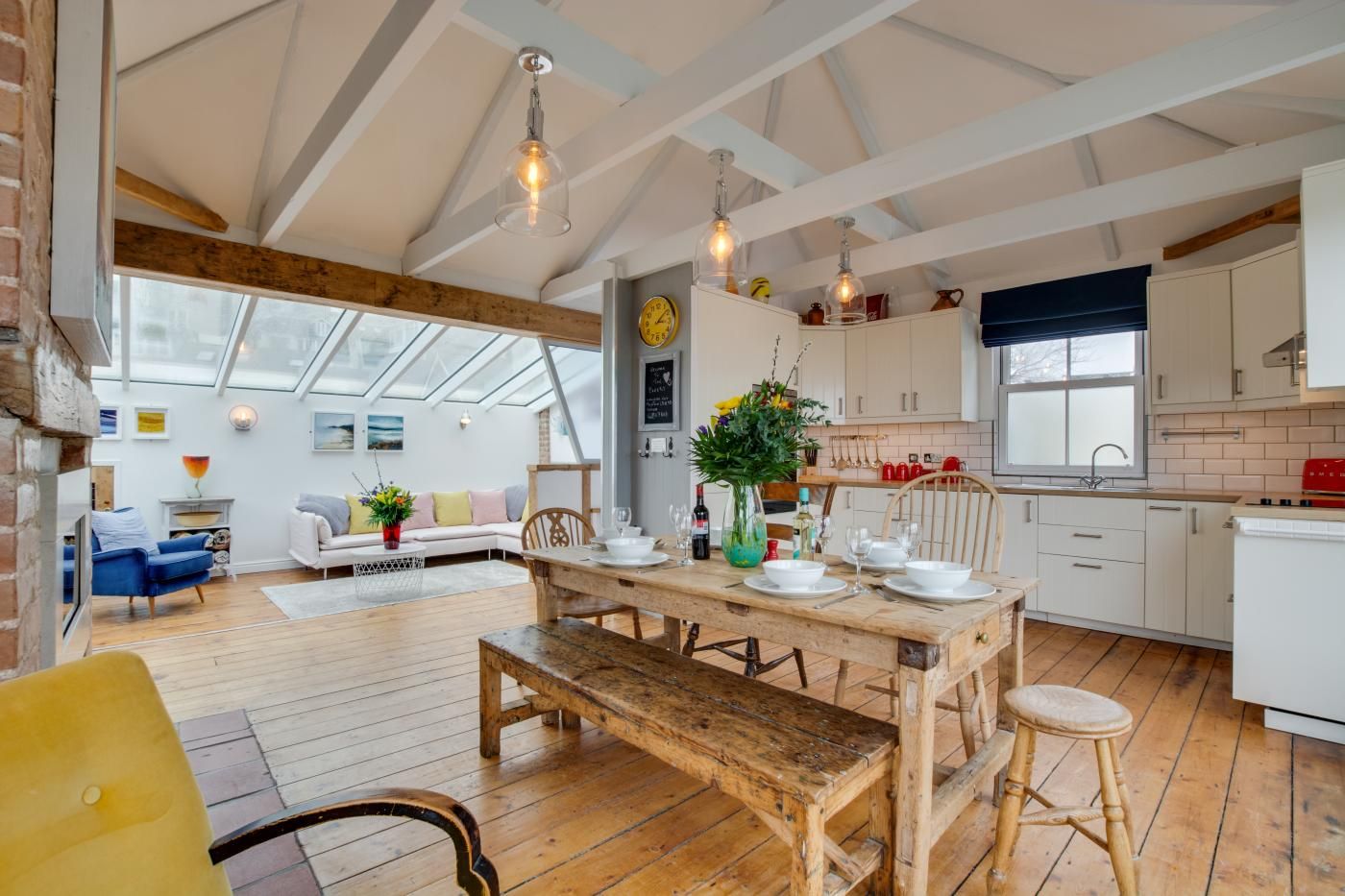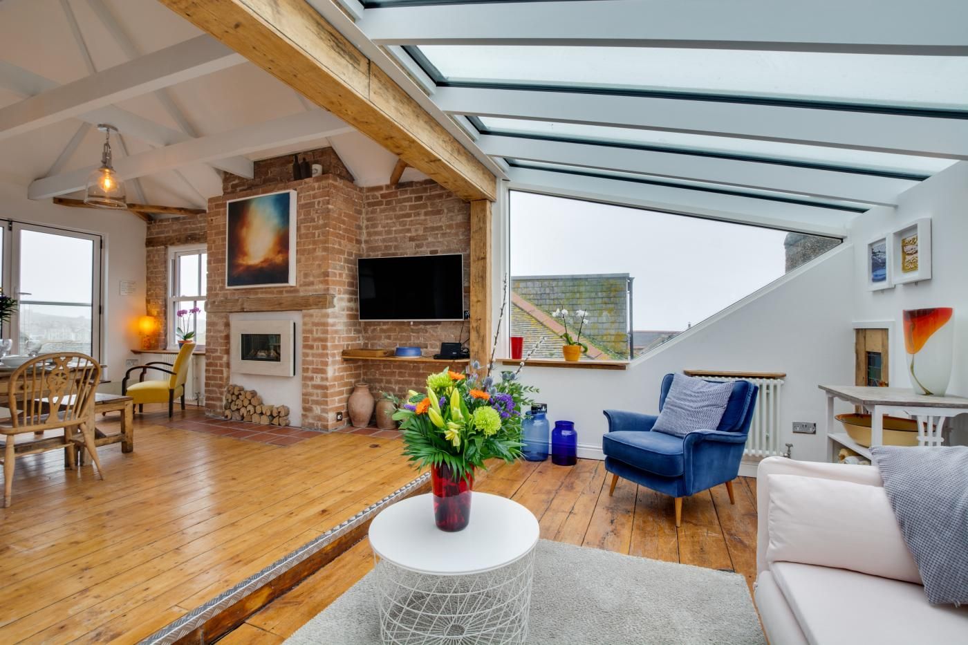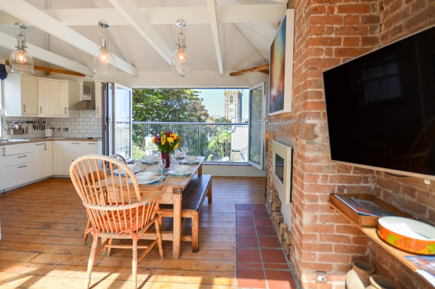 The Old Bakery Flat is one of four properties that can be booked individually (Sundown sleeps 2, Tremayne sleeps 5, Hideaway sleeps 6, The Old Bakery Flat sleeps 6) or booked together as one big house through interlinking doors to accommodate up to 19 people.