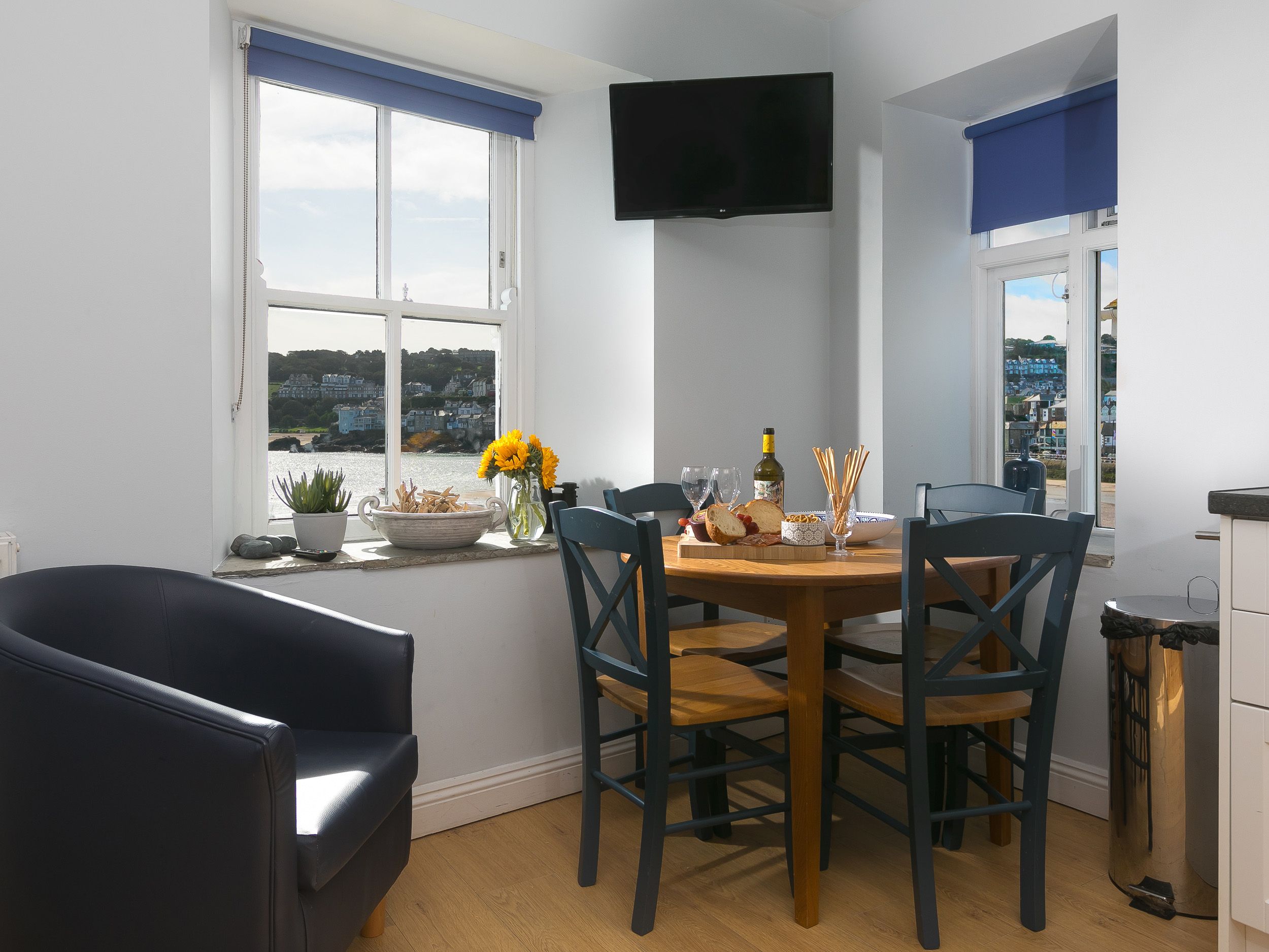 Holiday home Harbour Side consists of an open-plan living space with kitchen with electric oven and hob, microwave, fridge with freezer compartments, washing machine, dishwasher, a dining area for five, and a sitting area with Smart TV. The bedrooms each have a TV and consist of a double with en-suite bath, hand-held shower, basin and WC, a double, and a single, serviced by a shower room with walk-in shower, basin, heated towel rail and WC. Within 0.1 miles or less you will find a shop, a pub and a beach and please note this is a smoke-free property. Highchair and travel cot available. One well-behaved pet welcome at a supplement. WiFi, fuel, power, bed linen and towels included in rent. Explore the stunning coast of Cornwall with a stay at Harbour Side. Note: Check in from 4pm, check-out by 10am Note: Accessible walk-in shower. Note: No outdoor space. Note: The apartment is accessed via internal steps.