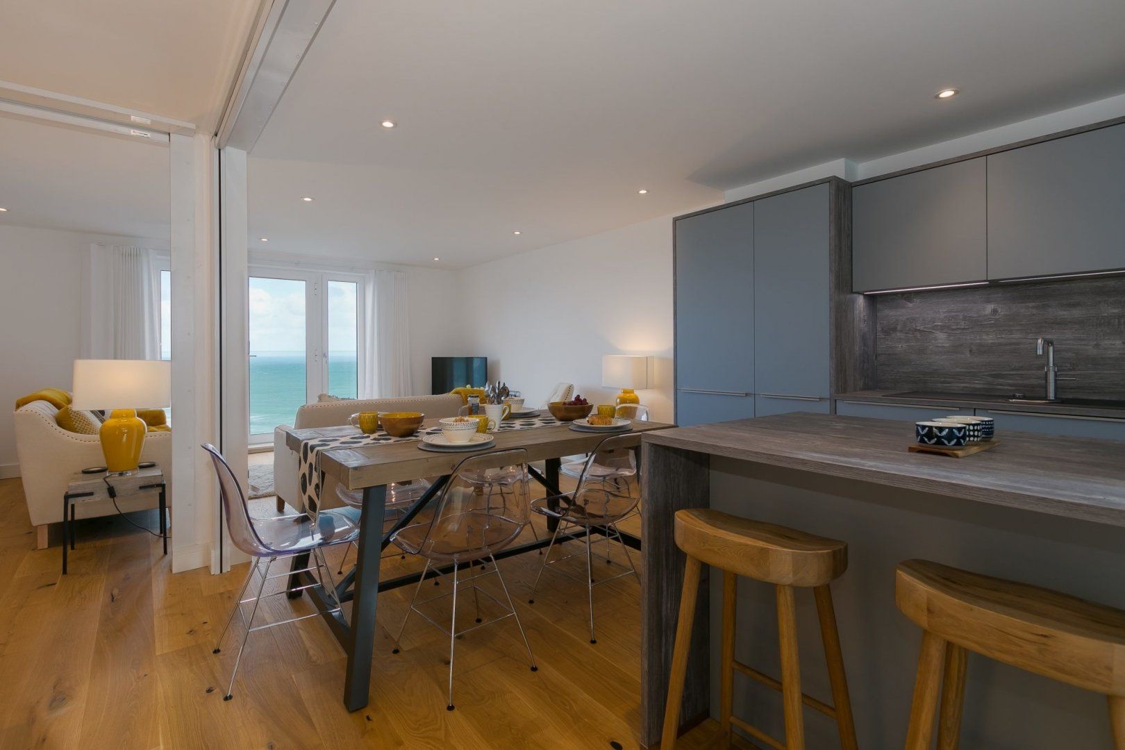Accomodation Details Reverse-level. Over three floors. Three bedrooms: 1 x second-floor king-size with Smart TV, freestanding bath and en-suite walk-in shower, basin and WC, 1 x four poster with en-suite walk-in shower, basin and WC, 1 x ground-floor twin with Smart TV. Bathroom with bath, shower over, basin, heated towel rail. First-floor open-plan living space with kitchen, dining area and sitting area