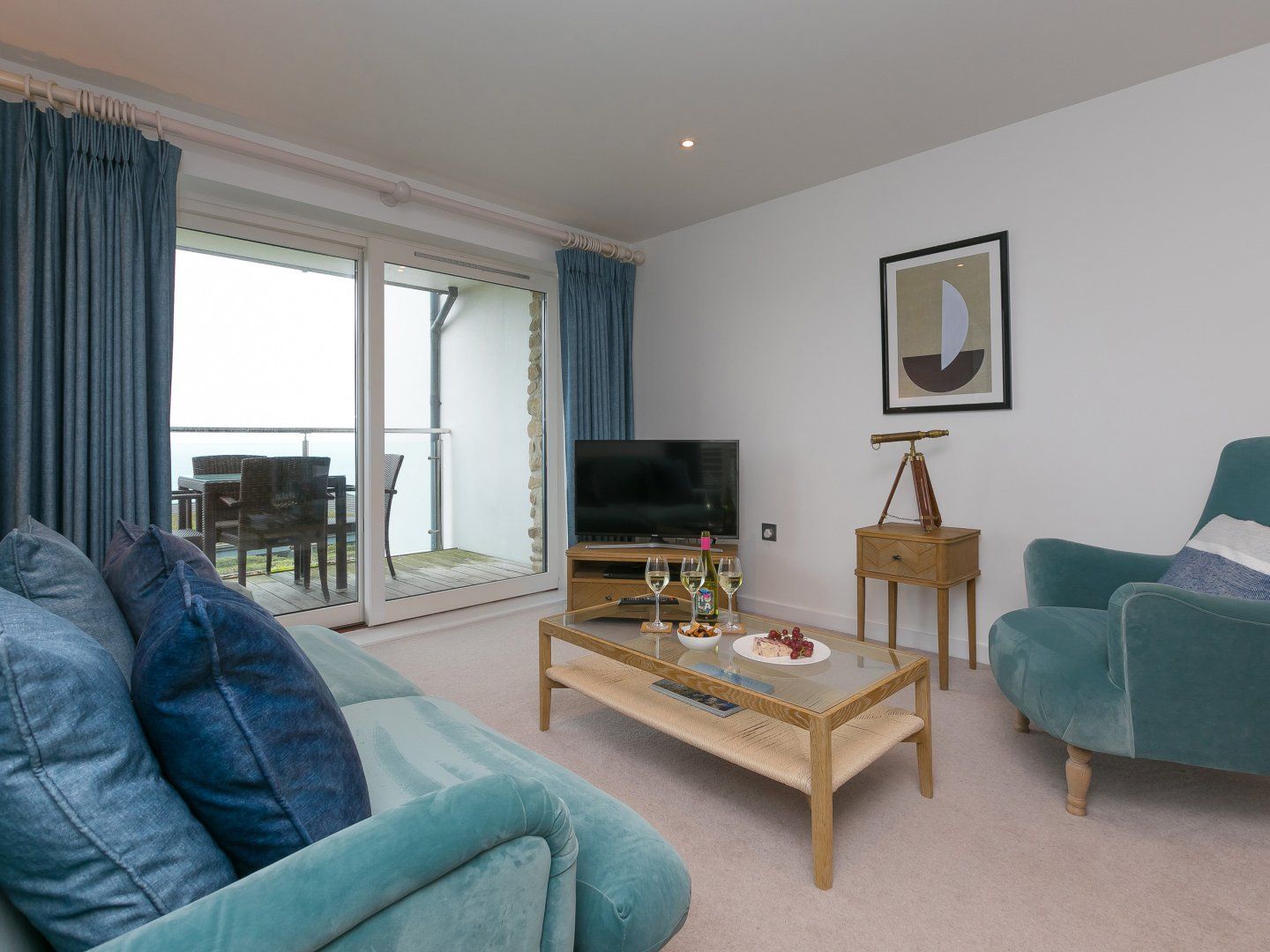 Far Cliffs is an impressive apartment residing in Carbis Bay, Cornwall. Hosting two bedrooms, including a king-size with Smart TV and en-suite shower room, and a double with Smart TV, along with a family bathroom, this property can sleep up to four guests. There is also an open-plan living space with kitchen, dining area, sitting area and a balcony. Outside there is parking and a communal front lawn. Enjoy a seaside adventure from Far Cliffs!