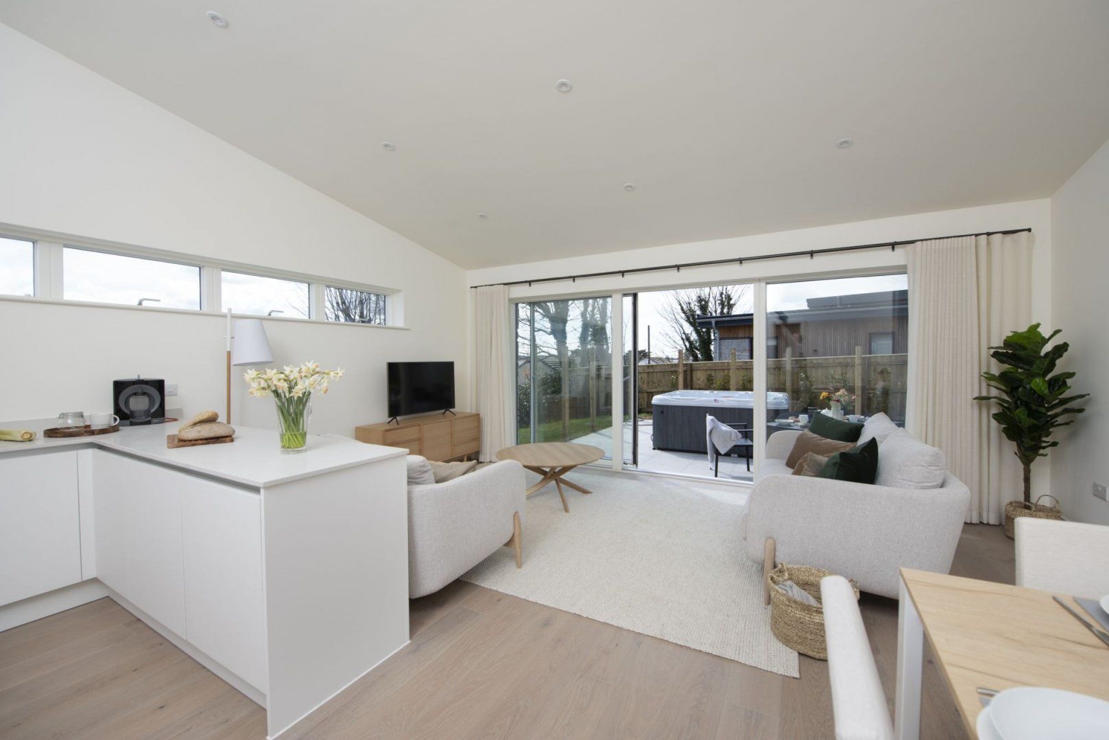 As environmentally sympathetic as it is stylish, this quiet hideaway close to the North Cornish coast is a perfect blend of pared-back simplicity and modern comfort. A picture of immaculate design, it's a cabin-style home made from natural materials (timber framing and bee-friendly bricks) that give way to an interior decorated in neutral shades of cream, light wood and olive green. Minimalist furnishings, sleek flooring and a bright white kitchen with high spec appliances ensure there's no roughing it here.