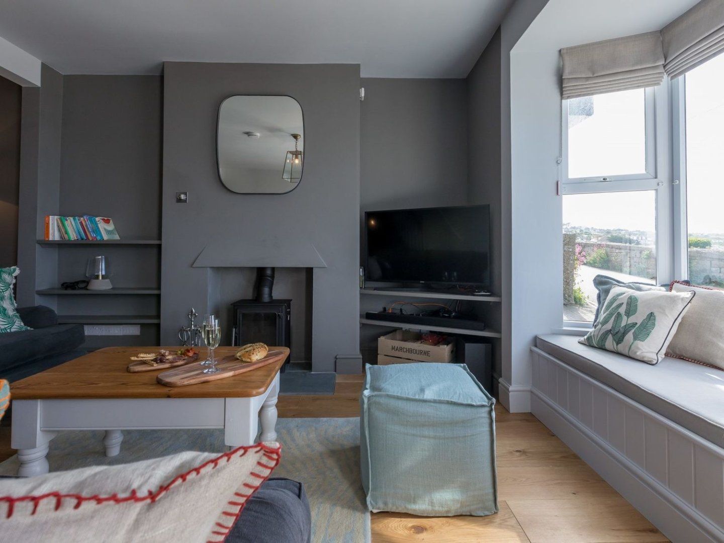 Holiday home The living areas in this three-storey, terraced house include a kitchen with electric oven, gas hob, microwave, fridge/freezer, washing machine, dishwasher, coffee maker, and a breakfast bar for two, and a living/dining room with a dining table for eight, a Smart TV, Bluetooth speaker, Playstation 4, DVD player, selection of games and DVDs, and a woodburning stove. The bedrooms consist of a second-floor king-size with Smart TV and en-suite bathroom, a king-size with Smart TV and en-suite shower room, a twin with Smart TV, and a 5'5" bunk bed (2'6" width) with TV, along with a bathroom. Outside, there is an enclosed patio with furniture, and off-road parking for one car. One well-behaved dog is welcome, but smoking is not permitted. WiFi, fuel, power, bed linen and towels are all included in the price. Check-in 4pm, check-out 9am. Guests are to provide their own cot bedding. Secure your next family holiday in St Ives at Marchbourne. Note: This property sleeps up to 6 adults and 2 children.