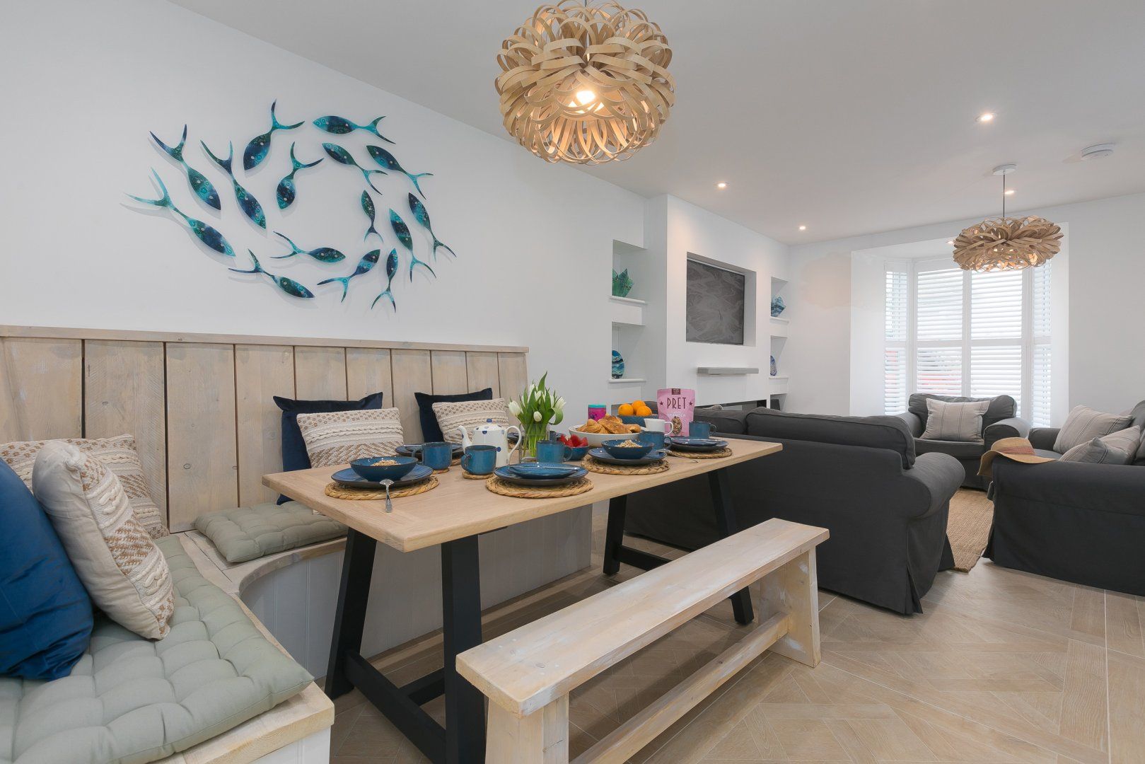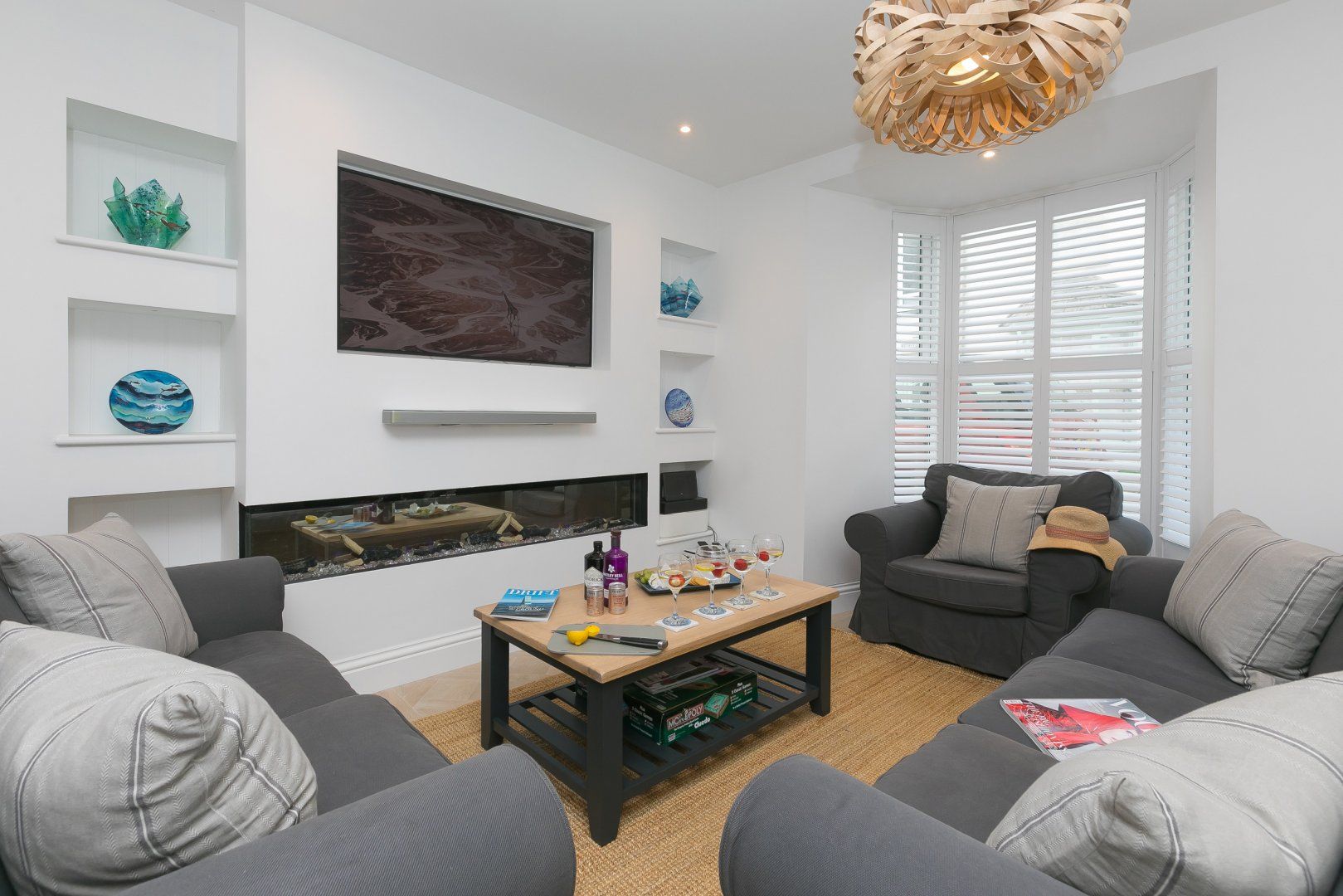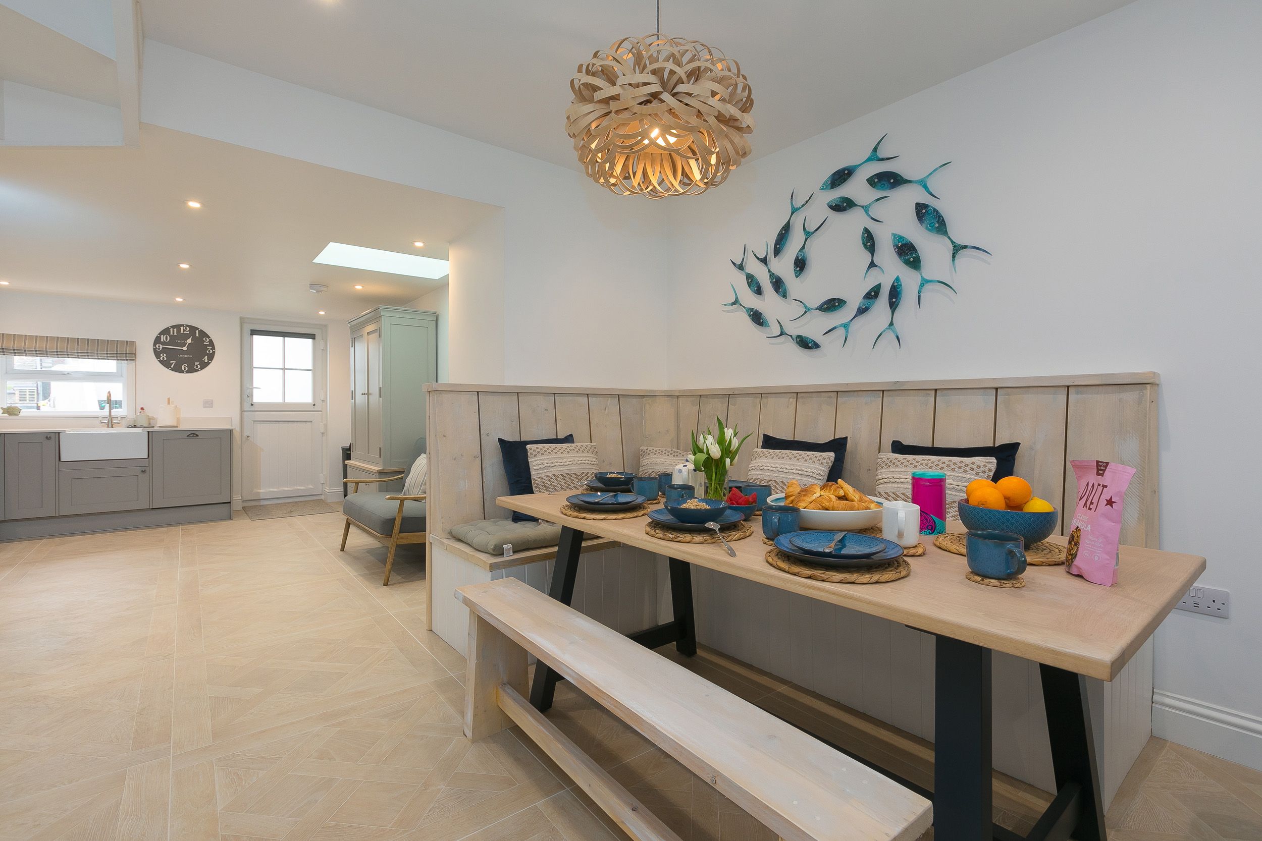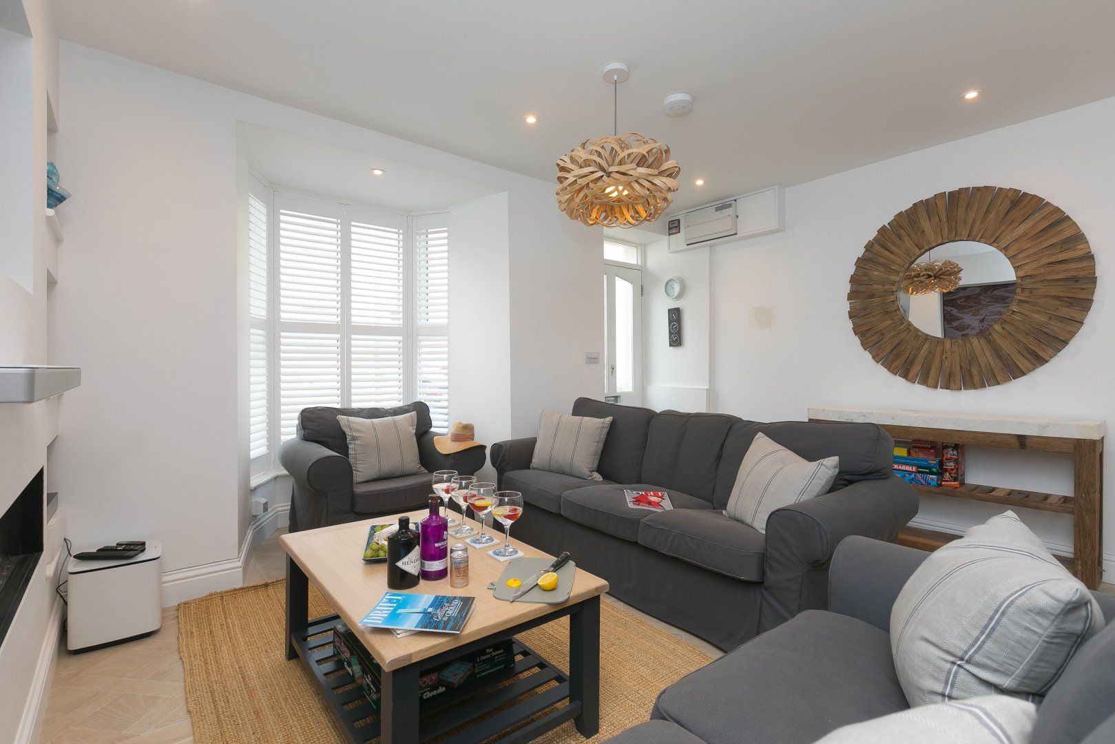 Accomodation Details Over three floors. Three bedrooms: 1 x second-floor super-king-size with small fridge, kettle, coffee pod machine, balcony, Smart TV with en-suite shower, basin, heated towel rail and WC, 1 x king-size with Smart TV, 1 x triple bunk (single over double). Bathroom with bath, walk-in shower, basin and WC. Open-plan living space with kitchen, dining area and sitting area with electric flame-effect fire