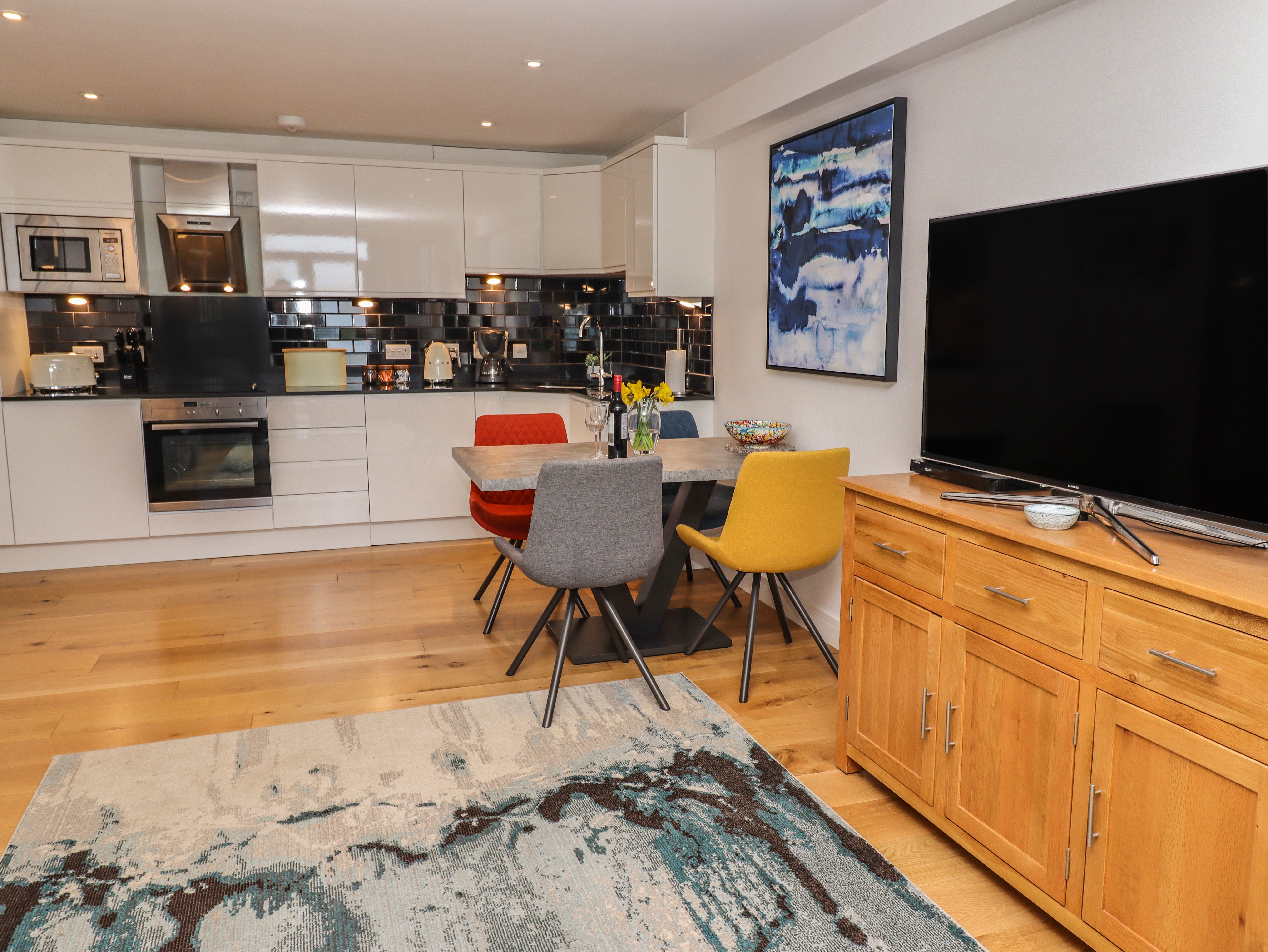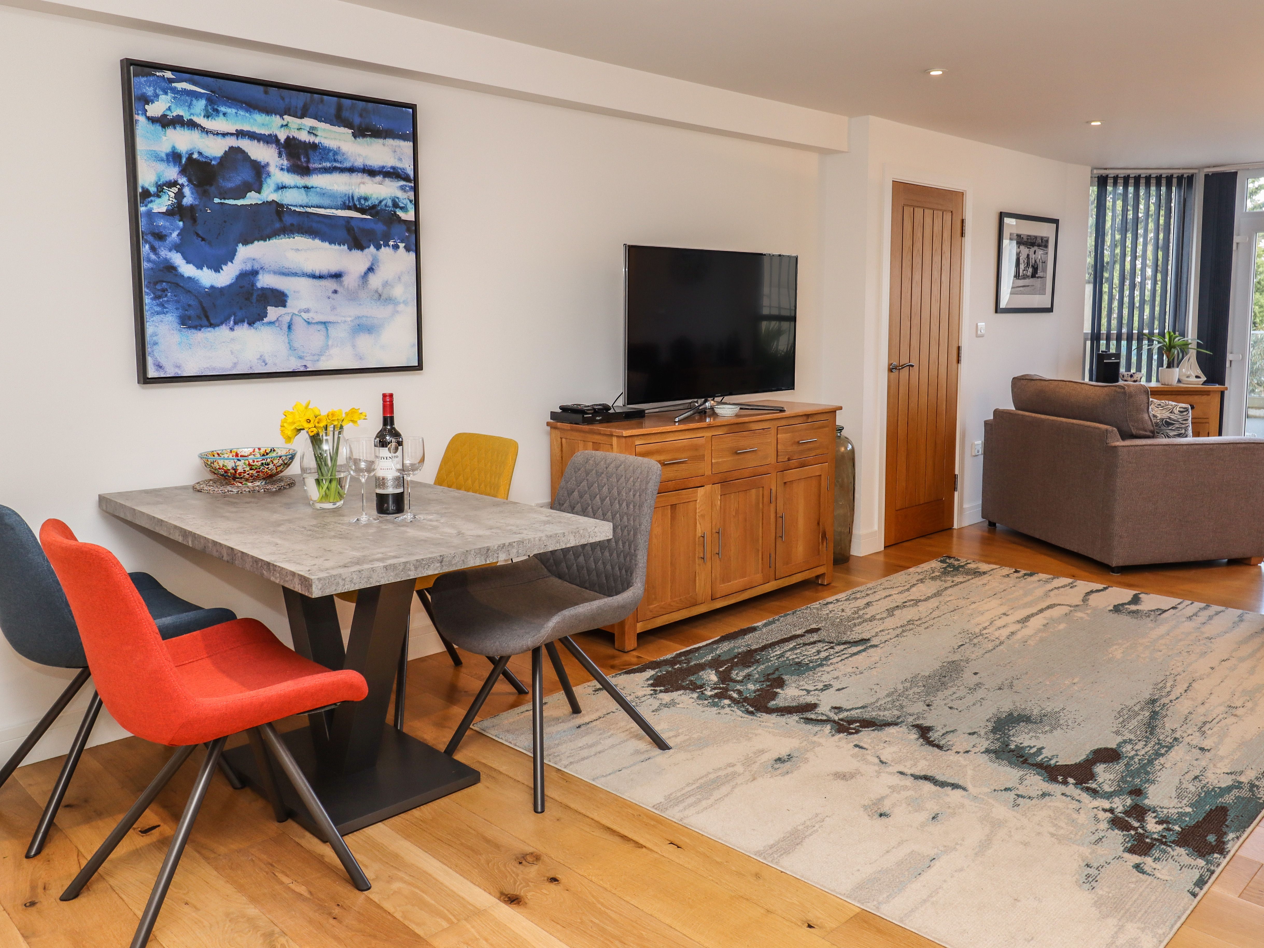 Amenities Gas central heating. Double oven/grill, 4 ring ceramic hob, microwave, fridge/freezer, Cafetiere, washing machine, dishwasher, electric clothes dryer. 43 Samsung smart TV with ultra HD and Sky package to lounge, smart HDTV with Freeview to bedroom, Blu Ray DVD Player with a selection of DVD's to living area, a Dab Radio and Bose Bluetooth speaker to lounge. Full fibre internet. Fuel and power inc. in rent. Bed linen and towels inc. in rent. Off-road parking for one car a short walk away, seaward facing terrace. Outside furniture including a table and chairs. Pet friendly, no smoking. Shop 0.2 miles, pub 0.1 miles, beach 0.3 miles. NOTE: Complimentary spa passes are provided for 2 guests at HarSPA at the Harbour Hotel, the passes include 20% discount off spa treatments Monday - Friday, food at the HarBAR.