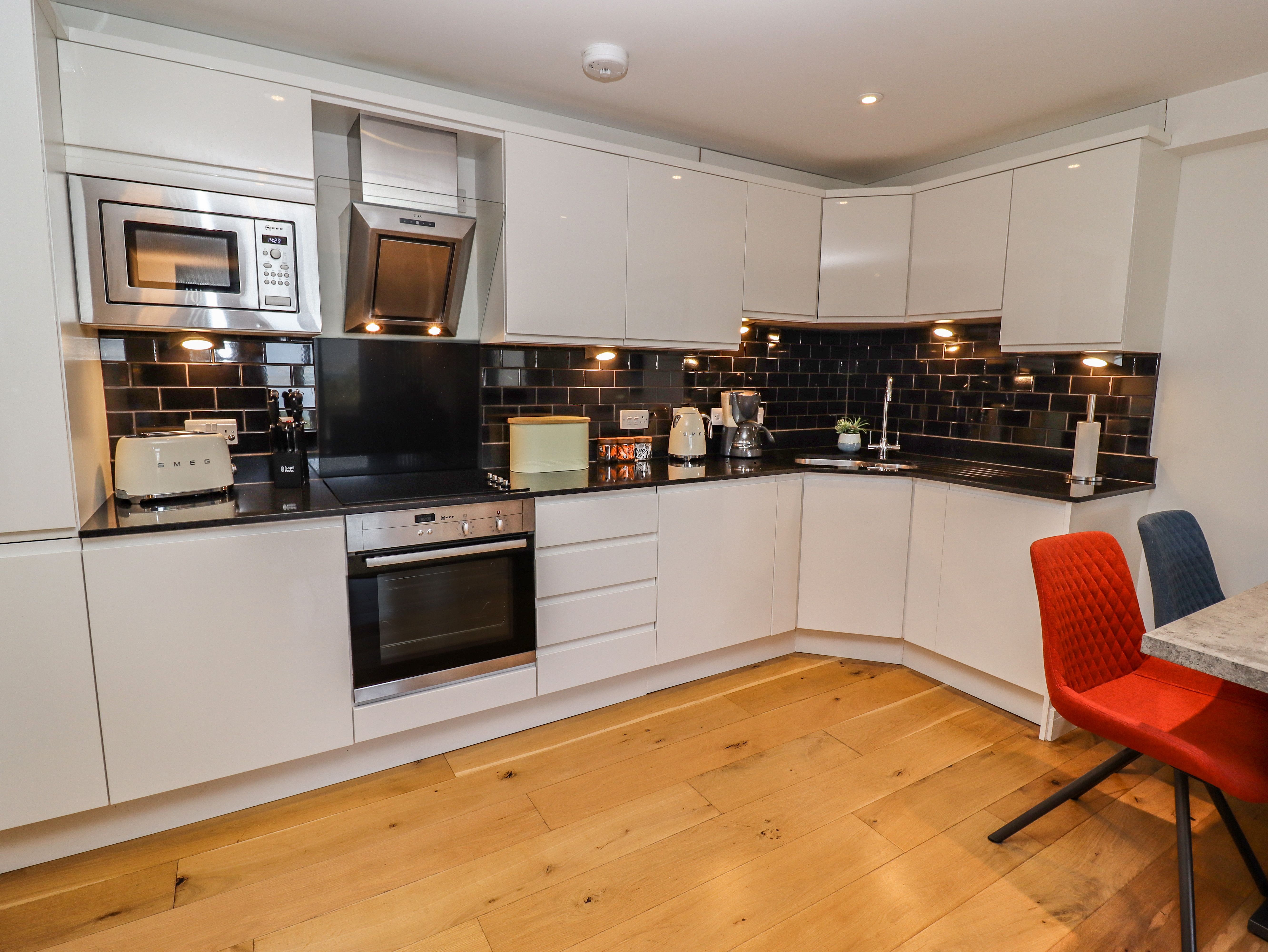 Accomodation Details Ground-floor apartment. One king-size bedroom. Bathroom with bath and shower-over, wash basin, heated towel rail, and WC, Open-plan living space with kitchen/diner, sitting area, seaward facing terrace