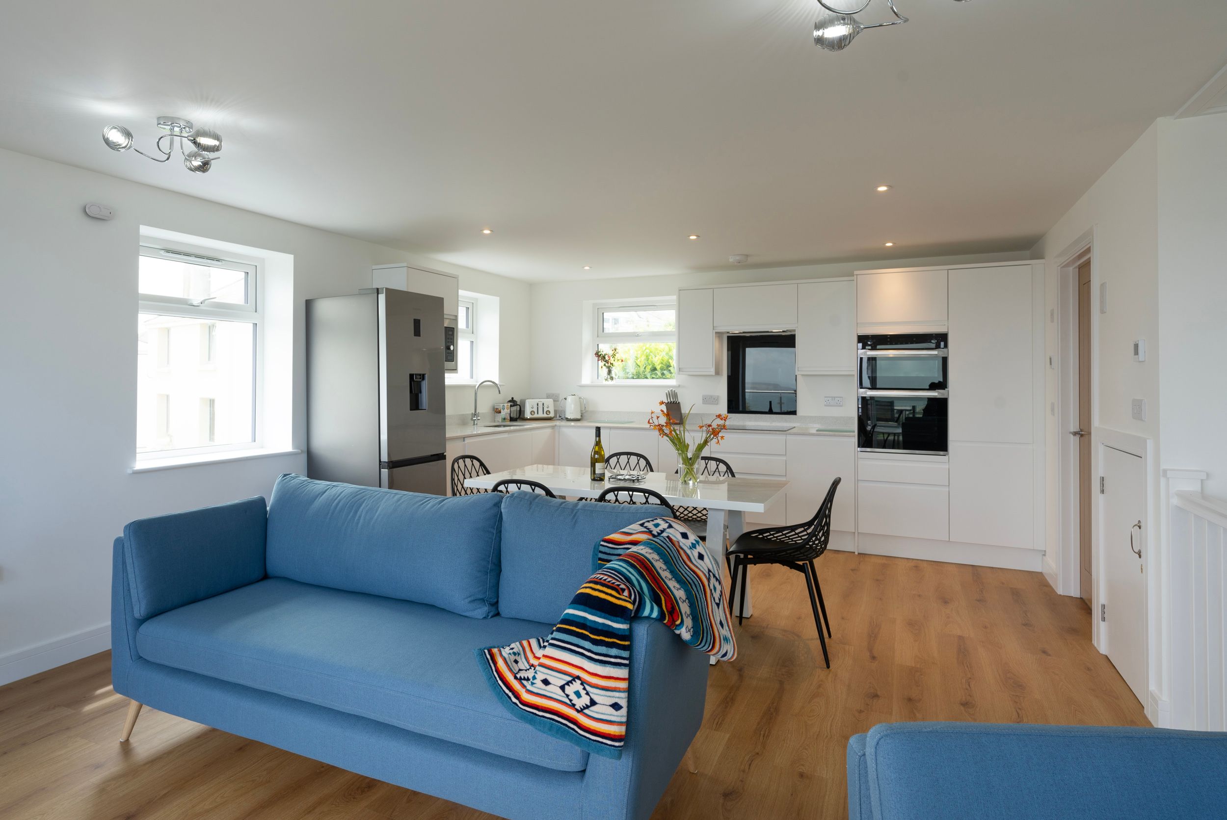 Holiday home Treen is a reverse level accommodation. Appliances include double oven, induction hob, microwave, fridge, freezer and TV. The bedrooms include super-king-size (zip/link), king-size with en-suite shower and a twin, serviced by a bathroom. To the outside is a gravelled garden with furniture. Please note, one pet is welcome however smoking is not allowed at this property. Within 0.5 miles or less there is a shop, pub and beach. WiFi, fuel, power, bed linen, and towels are all included in the rent. Choose Treen for your next base in St Ives.
