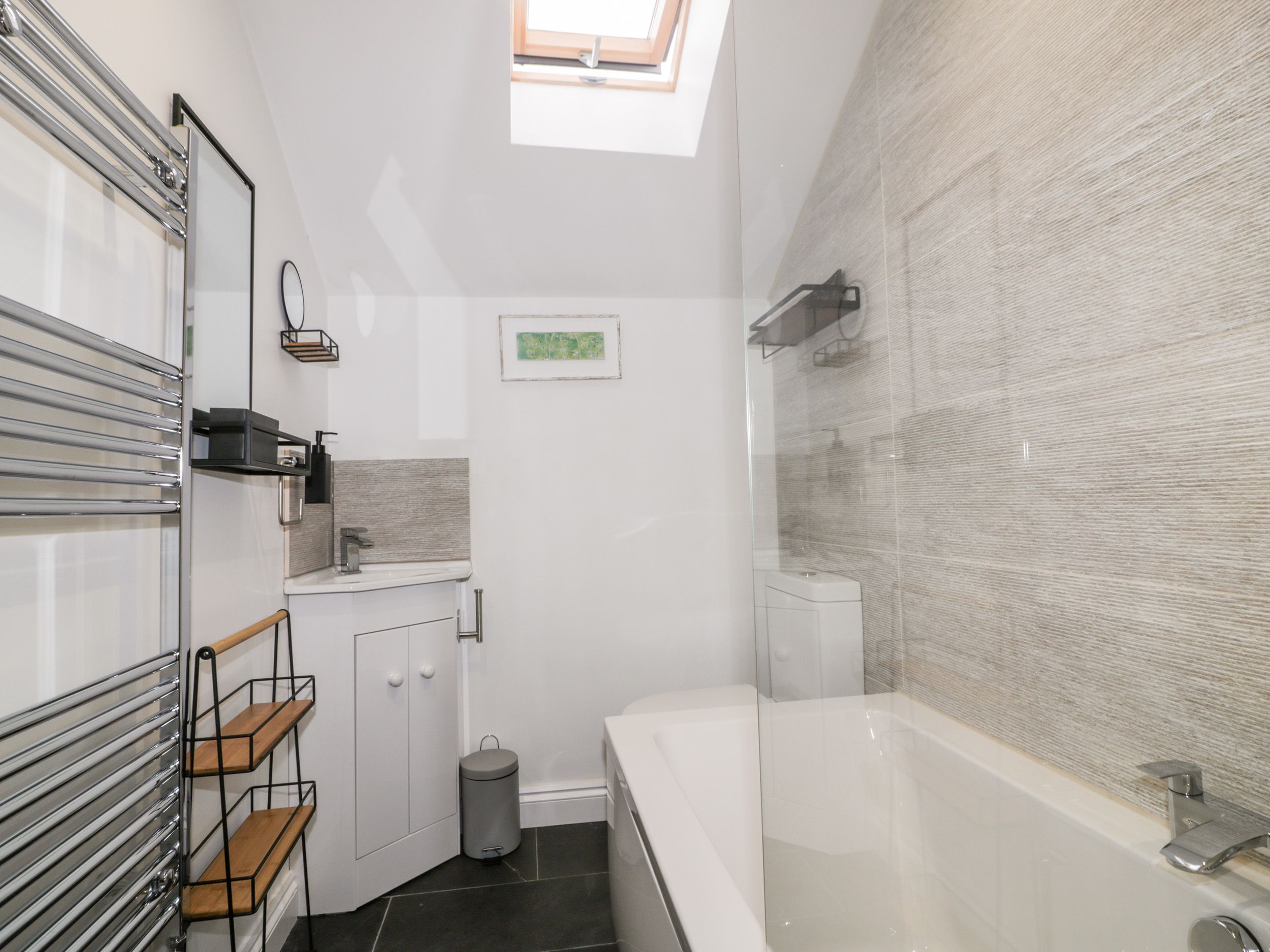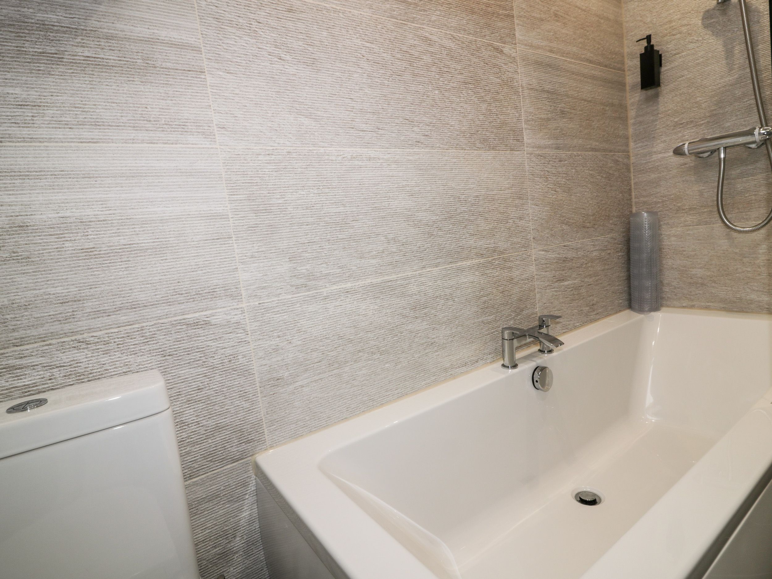 Two bedrooms: 1 x king-size with TV with 32'' TV and en-suite walk-in shower, basin, heated towel rail and WC, 1 x twin room. Bathroom with bath, shower over, basin, heated towel rail and WC. Open-plan living space with kitchen, dining area and sitting area with woodburning fire. Study (can be converted into a single bedroom on request at time of booking)