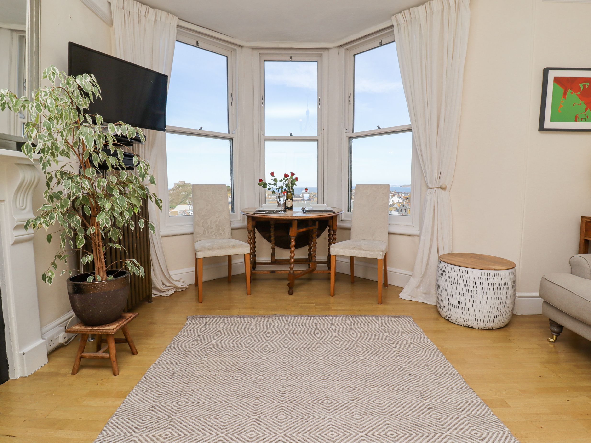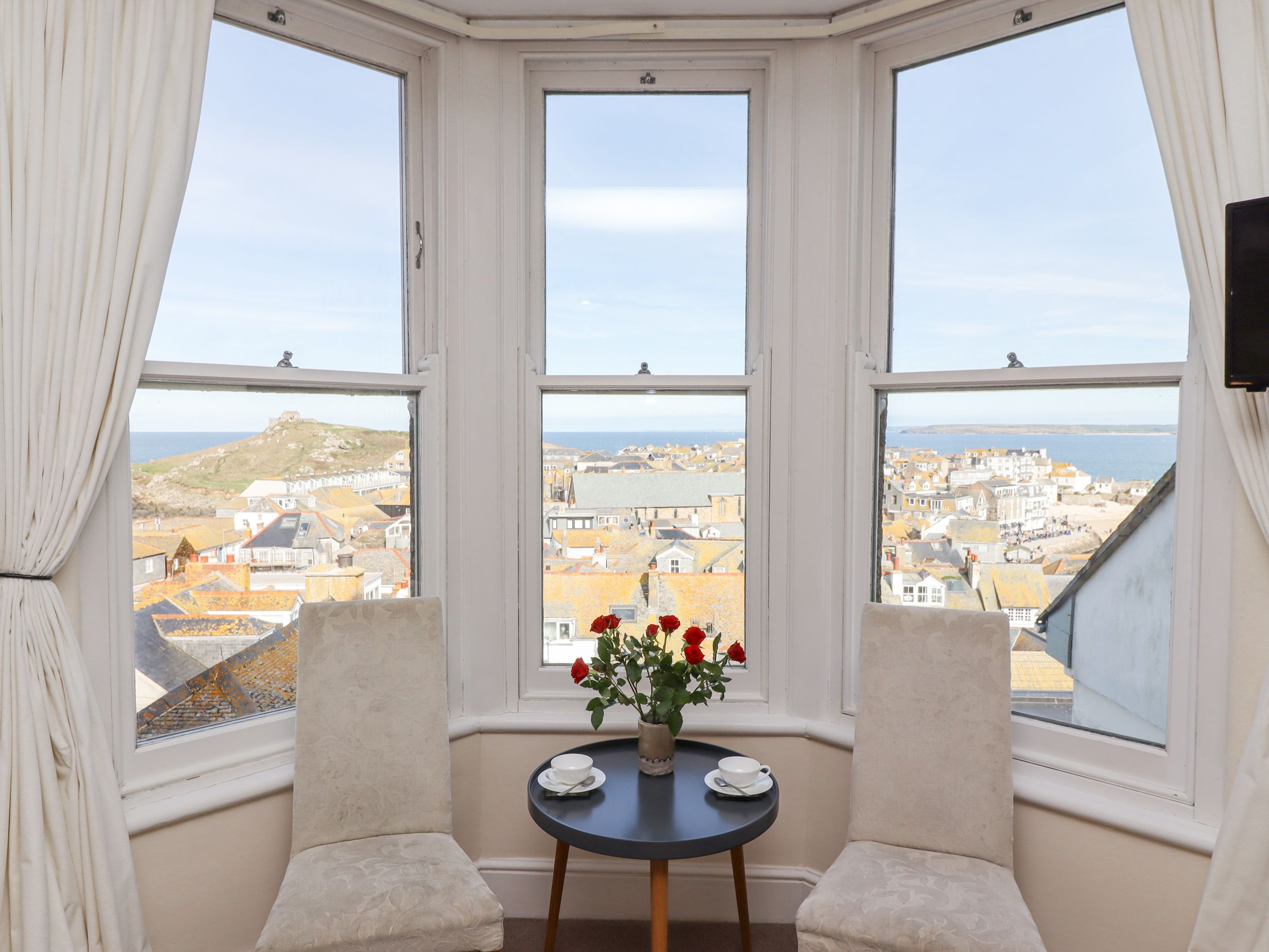 Holiday home The living areas in the first-floor apartment consist of an open-plan living space with a kitchen containing an oven/grill, five burner gas hob, microwave, fridge, freezer, coffee machine, washer/dryer, dishwasher and DAB radio, a dining area, and a sitting area with a Smart TV with Sky and DVD player, collection of DVDs, PlayStation 3 with selection of games. The bedrooms consist of a king-size with TV and en-suite shower room, and a twin with TV and en-suite bathroom. Outside, there is an enclosed, rear terrace with furniture, and off-road parking for one car nearby. Within 0.2 miles, you will find a shop and a beach, and within 0.1 miles, a pub. One well-behaved pet is welcome. Please note that this is a non-smoking property. WiFi, fuel, power, bed linen and towels are all included in the price. A highchair and travel cot are provided, however guests are asked to bring their own bedding for the cot. Whistler welcomes a family of four to enjoy a seaside break in the renowned Cornish town of St Ives. Note: Check-in at 4pm, check-out by 9am.