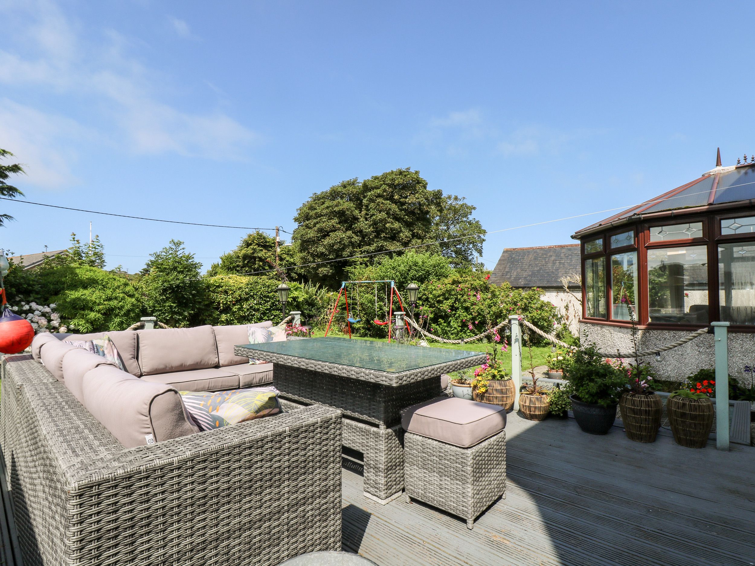 Holiday home The living areas in this holiday home consist of a kitchen/diner equipped with electric oven, gas hob, microwave, fridge/freezer, dishwasher and table, a sitting room with Smart TV and sun room with sofa bed. The bedrooms consist of a king-size with Smart TV and en-suite shower room, a king-size with Smart TV and two more king-sizes all serviced by a bathroom and cloakroom. Outside there is off-road parking for four cars and a rear, enclosed garden with lawn, decking with furniture and small, covered pond. Within 0.4 miles there is a shop and pub and 1.9 miles a beach. Highchair, travel cot and stairgate available. Two well-behaved dogs are welcome, but sorry, no smoking. WiFi, fuel, power, bed linen and towels are all included in the price. Explore Cornwall at 28 The Turnpike. Note: The sun room has a sofa bed for flexible sleeping arrangements or two additional guests for an extra cost. Note: Dogs are not allowed upstairs. Note: The pond is covered, but children and pets should still be supervised.