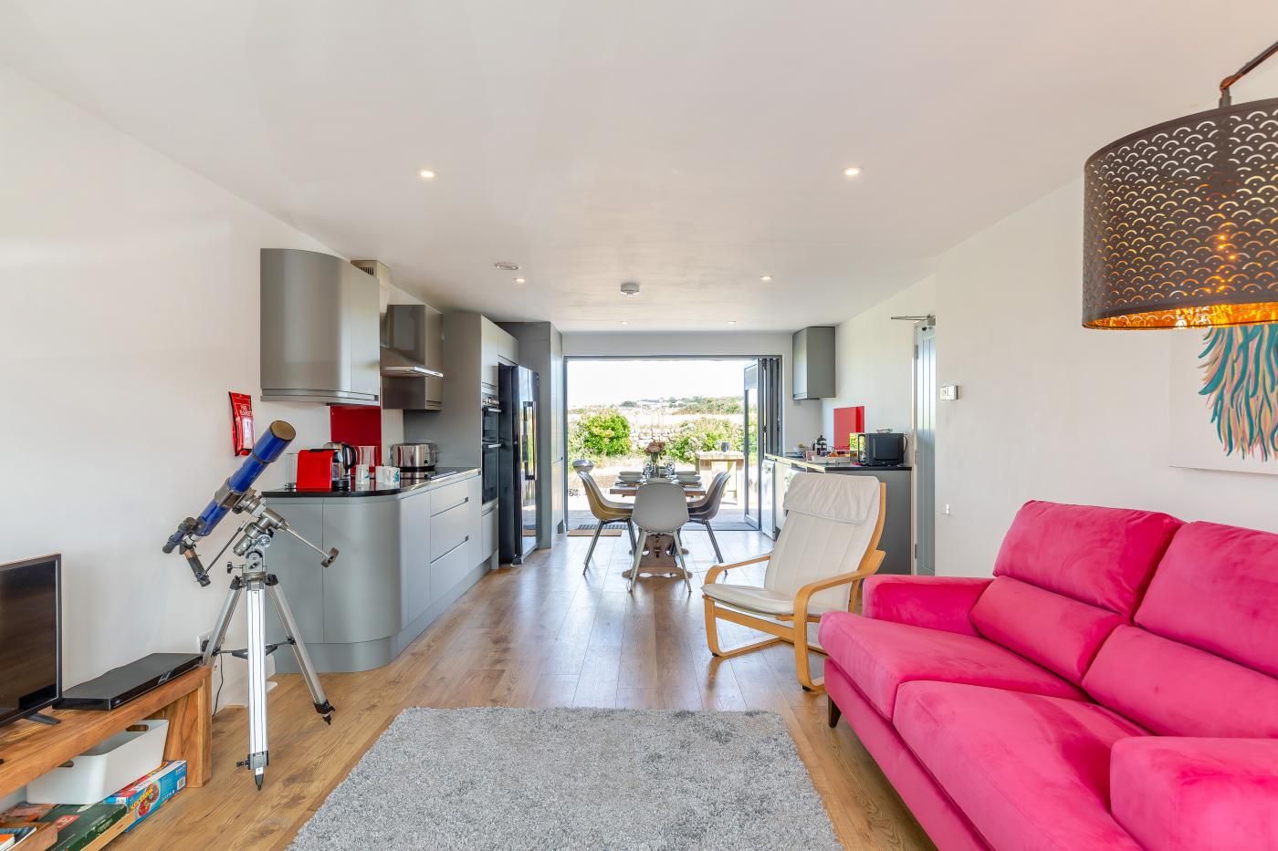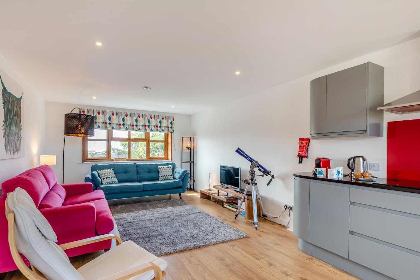 The ideal place to return to after a day in the fresh air, it has space for six guests in three bedrooms and a garden where children can play while you toast marshmallows over the fire pit. Perfect for families or friends looking to really get away from it all.