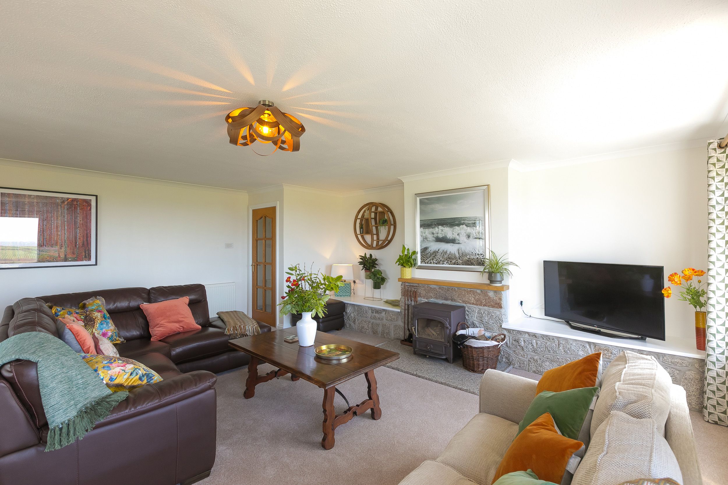 Gas central heating, woodburning stove. Electric Redfyre range cooker with oven and hot plates, microwave, fridge/freezer, washing machine, tumble dryer, dishwasher, coffee machine. 4 x Smart TV, WiFi. Fuel and power inc. in rent. Bed linen and towels inc. in rent. Highchair and travel cot available on request. Private driveway parking for 4 cars. Shed with secure storage for bikes and surfboards. Wrap-around, multi-level garden with hot tub and furniture. Enclosed lawn area. Two well-behaved dogs welcome. Sorry, no smoking. Shop 0.1 miles, pub 0.8 miles, beach 0.5 miles. Note: There are steps down to the property entrance and garden, please take care. Note: Hot tub will be drained prior to guests' arrival and can take up to 10 hours to heat up