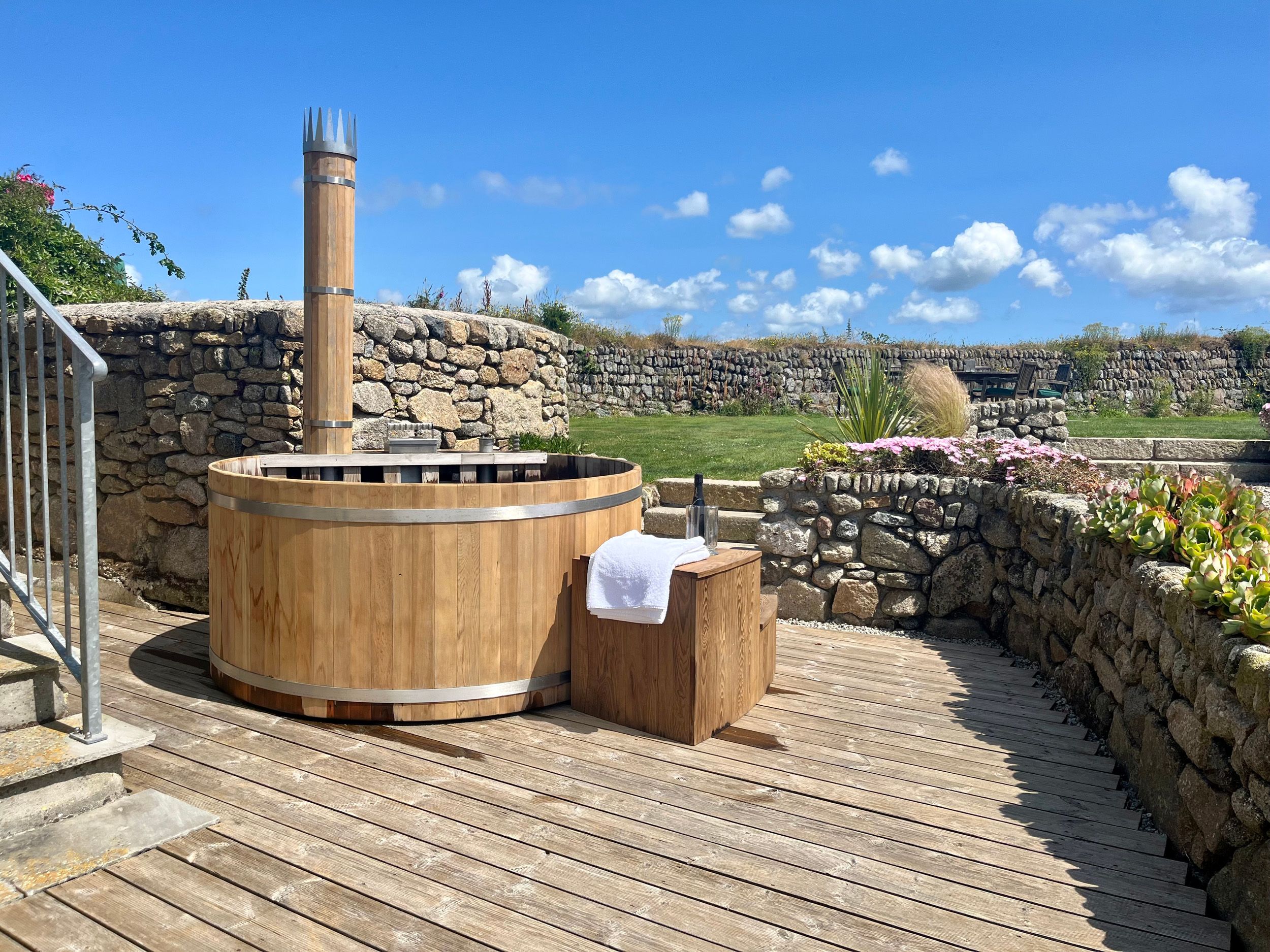 Holiday home This home has a kitchen/diner, utility, sitting room with woodburning stove, and a cinema room, along with a super-king-size bedroom with roll-top bath, a ground-floor double with en-suite, and a twin (zip/link), serviced by a shower room. Appliances consist of a Range, microwave, fridge/freezer, mini fridge, washer/dryer, dishwasher, coffee machine and wine chiller, and for entertainment, a selection of books, DAB radio, and five Smart TVs. Outside there is an enclosed garden with lawn, patio, furniture, decking, barbecue and wood-fired hot tub, a private driveway, and an EV charger. Three well-behaved dogs welcomed, but sorry no smoking. WiFi, fuel, power, bed linen and towels are all included, along with a highchair and travel cot. Enjoy a luxury, Cornish break at the Riblows. Note: Complimentary snack, toiletries and bathrobes are provided. Note: There are steps to the interior and exterior; please take care. Note: Check-in from 4p, check-out by 9am.