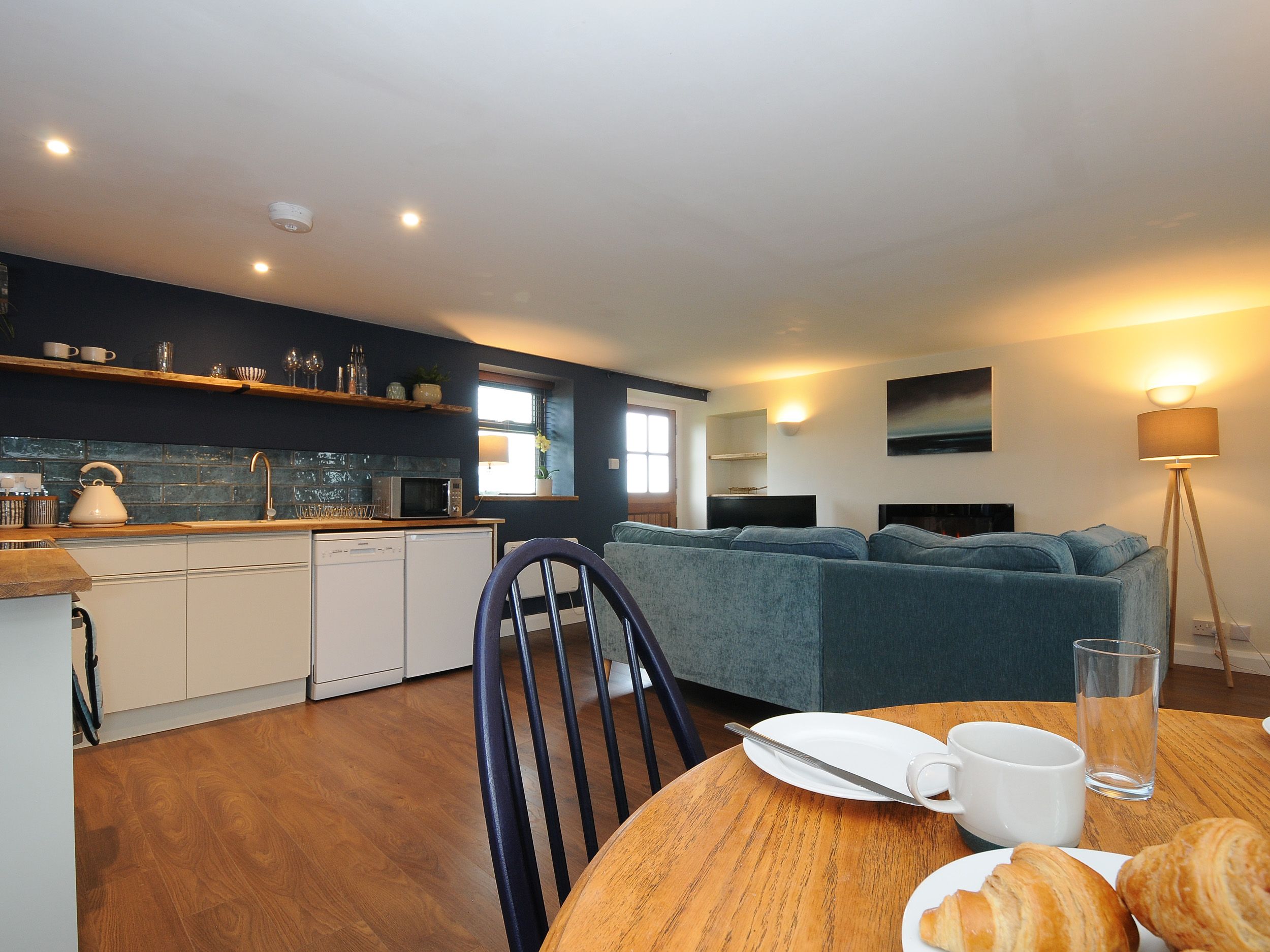 Accomodation Details Ground-floor apartment. One king-size bedroom with en-suite walk-in shower, basin, heated towel rail and WC. Open-plan living space with kitchen, dining area and sitting area with electric fire
