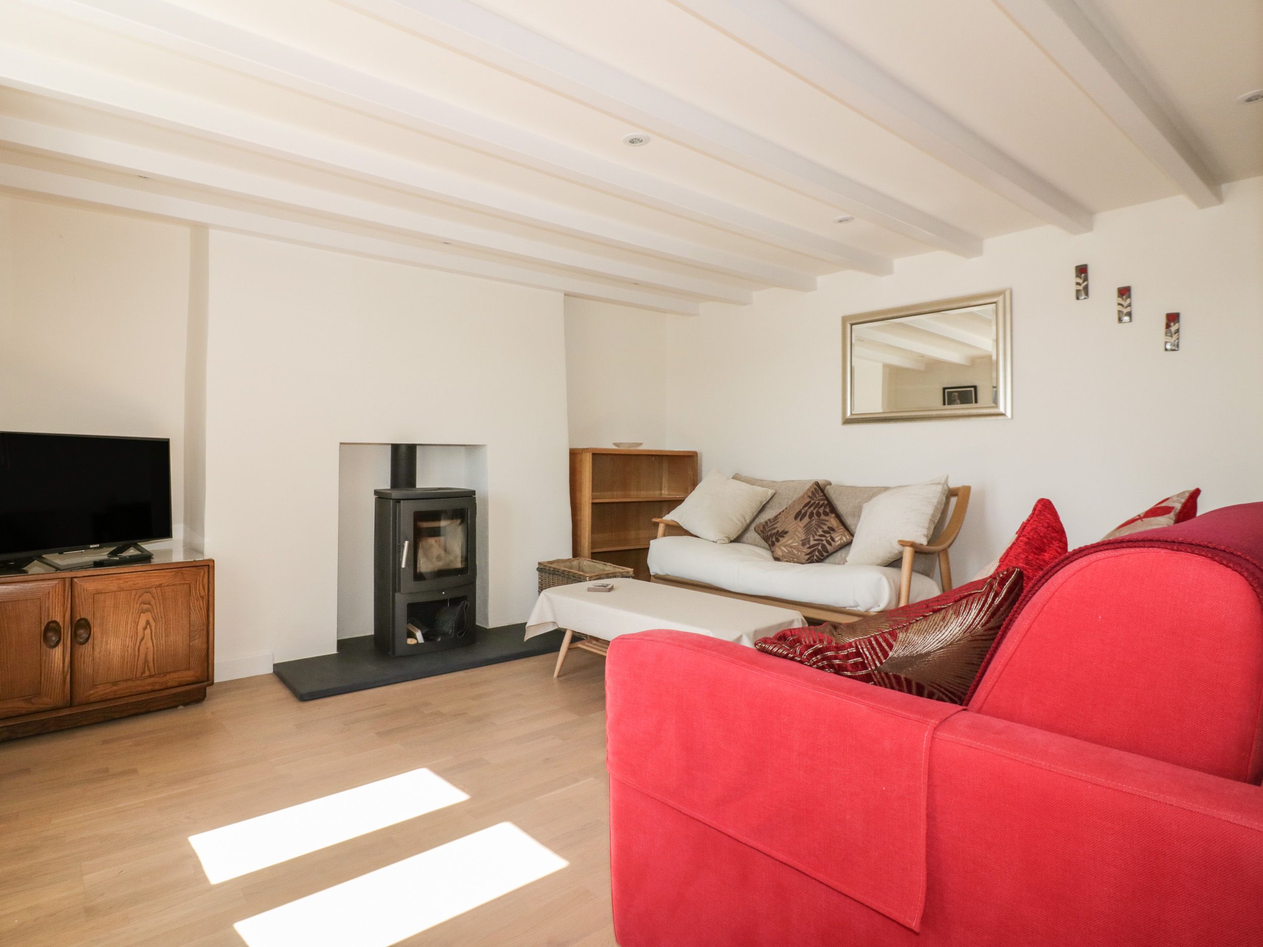 Amenities Underfloor heating throughout the property. Electric towel rails in bathrooms. First-floor kitchen/diner. Electric oven, microwave oven, induction hob, fridge/freezer, slim dishwasher. WiFi. Fuel and power included. Bed linen and towels included. Public car-park parking. Enclosed rear decked garden with furniture. Sorry, no pets, no smoking and no BBQs. Shop and pub 0.1 mile. Beach 0.3 miles. Adults only. Please note: there are steep steps low ceilings. Please note: Friday changeovers only. Please note: the property is accessed by a steep incline and may not be suitable for people with mobility issues. Note: This property only accepts weekly, Friday to Friday bookings.