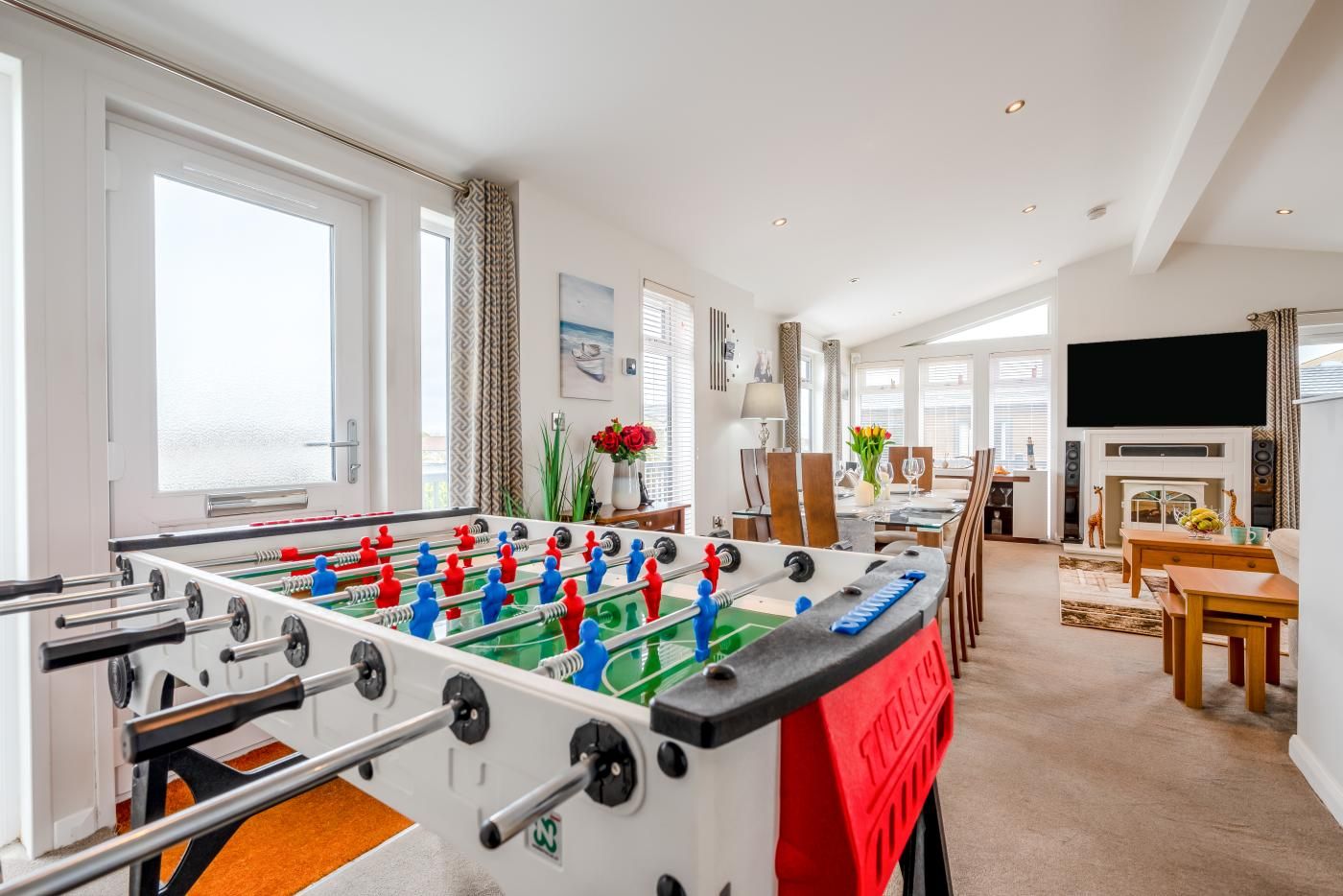 With on-site tennis, football and a children’s play area, and located close to fabulous beaches and fun attractions, this two-bedroom lodge is a great choice for both families and sports lovers.