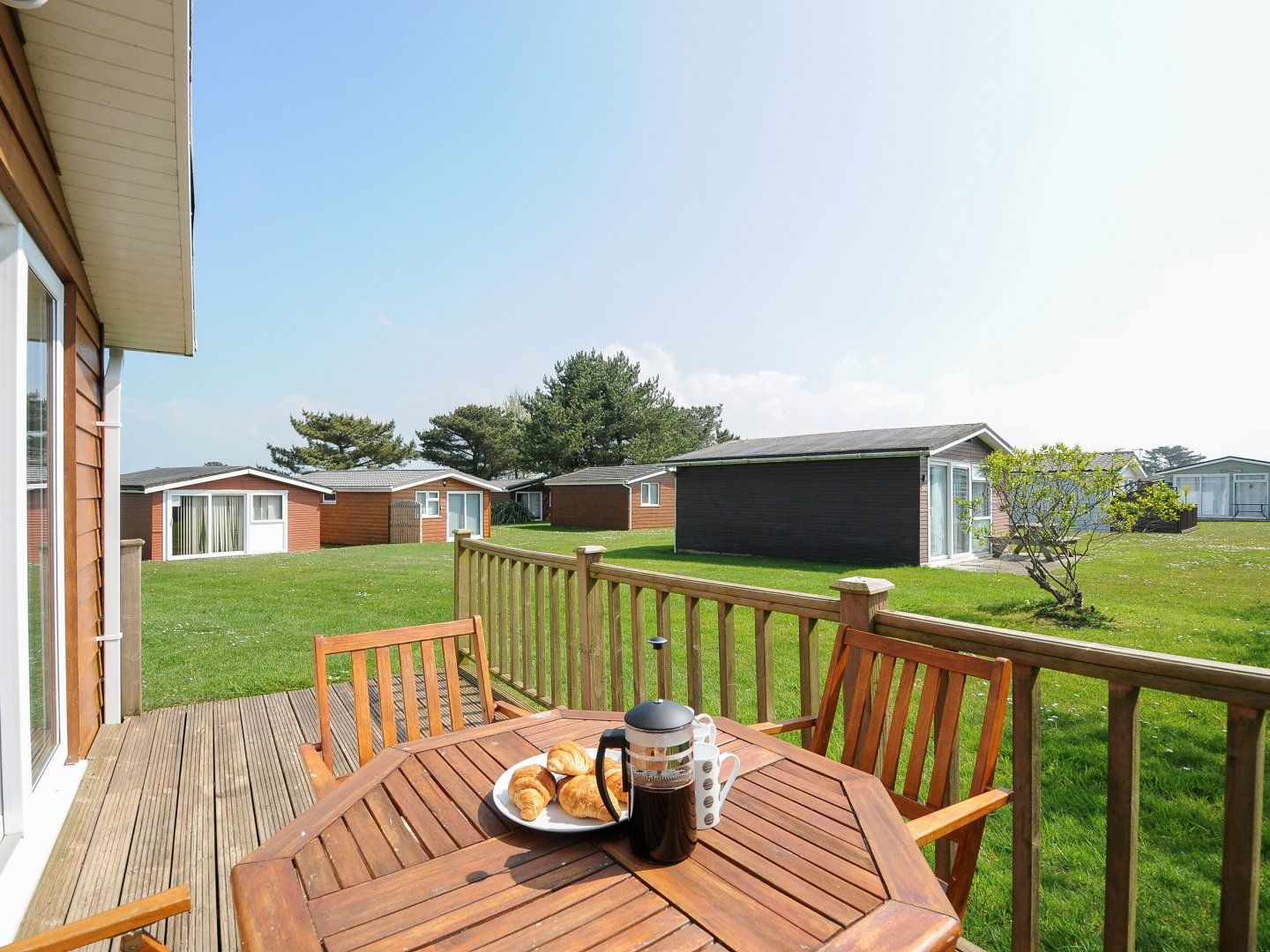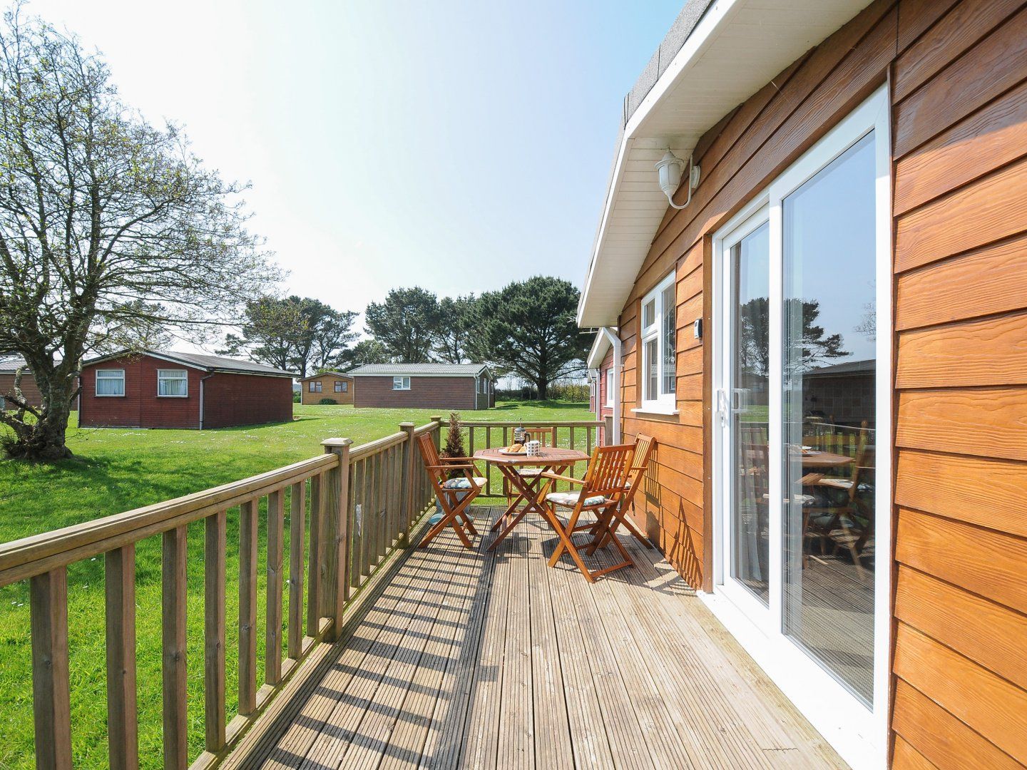 Amenities Electric heating. Electric oven and hob, microwave and fridge/freezer. TV. Fuel and power inc. in rent. Bed linen and towels inc. in rent. Off-road parking available nearby. Decking with furniture. Access to site lawn and facilities. Sorry, no pets and no smoking. Shop and pub on-site. Note: There is a step up to the chalet. Note: The shop opening days/times vary and cannot be guaranteed to be open all year around. Note: The onsite bar and restaurant are currently not open due to storm damage earlier in the year.