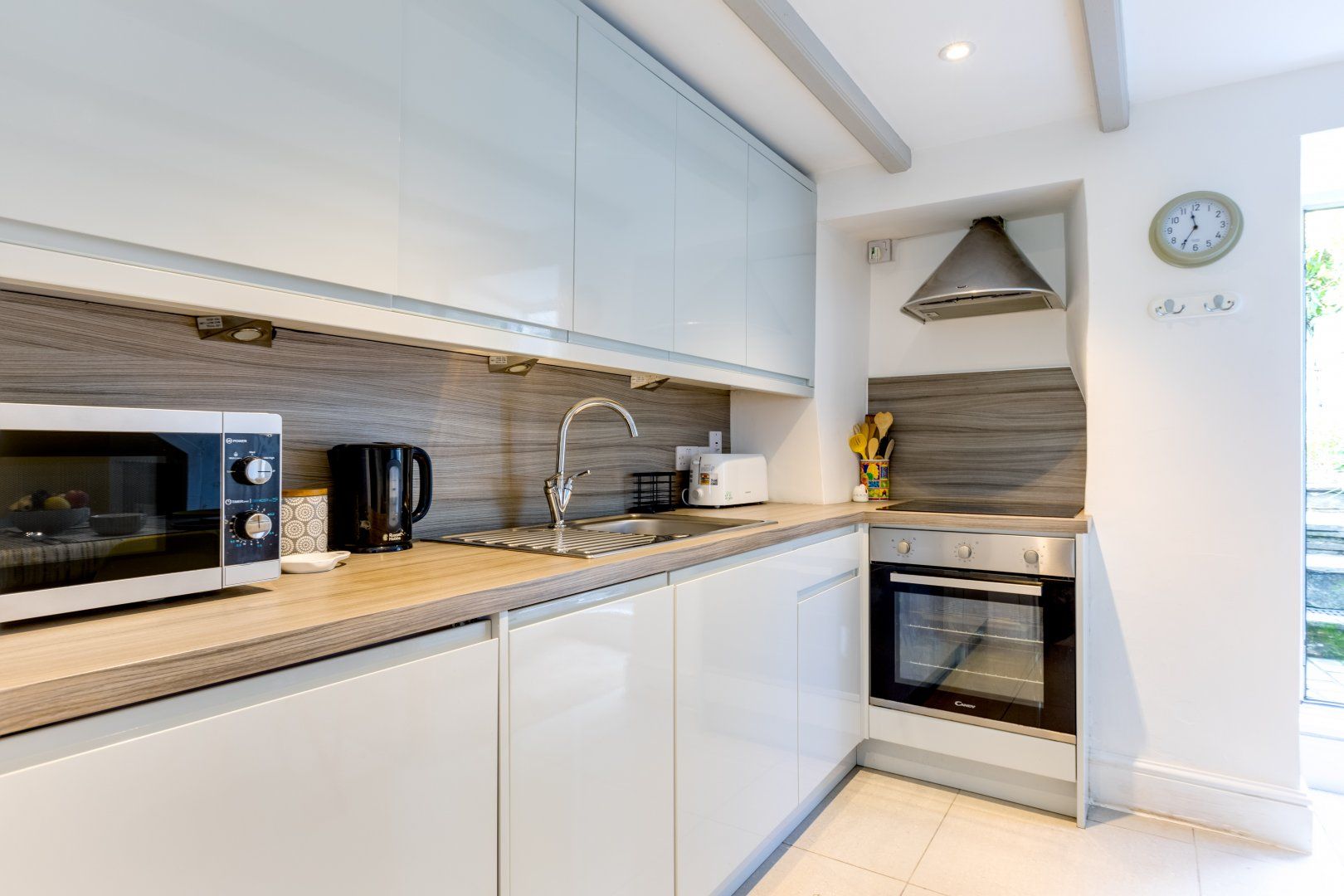 Two bedrooms: 1 x king-size, 1 x twin. Shower room with walk-in shower, basin, heated towel rail and WC. Kitchen/diner. Utility with washing machine and extra fridge. Sitting room with open fire