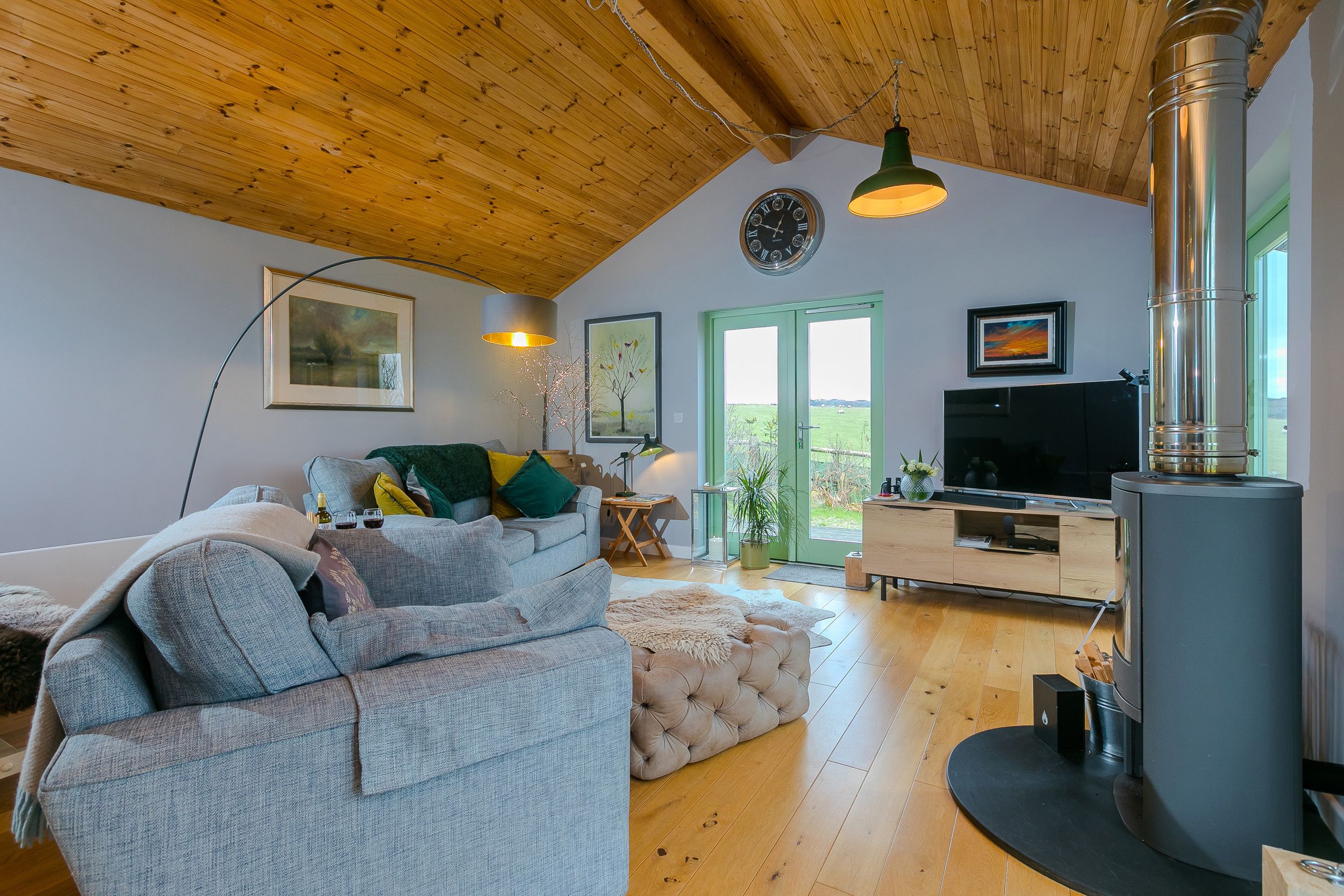 Accomodation Details Single-storey. One king-size bedroom with Smart TV, en-suite with free-standing bath, walk-in rain shower, basin, WC, heated towel rail and underfloor heating. Boot room with washer dryer and small freezer. Cloakroom with basin and WC. Open-plan living space with kitchen, dining area and sitting area with woodburning stove.