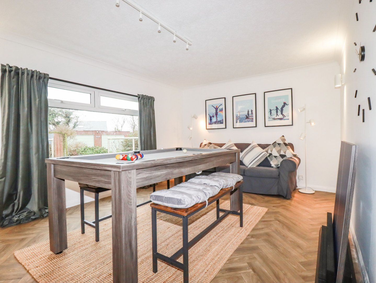 Accomodation Details Single-storey. Two bedrooms: 2 x single beds with a day bed, 1 x double. Shower room with walk-in shower, basin, heated towel rail and WC. Kitchen. Living/dining room. Games room