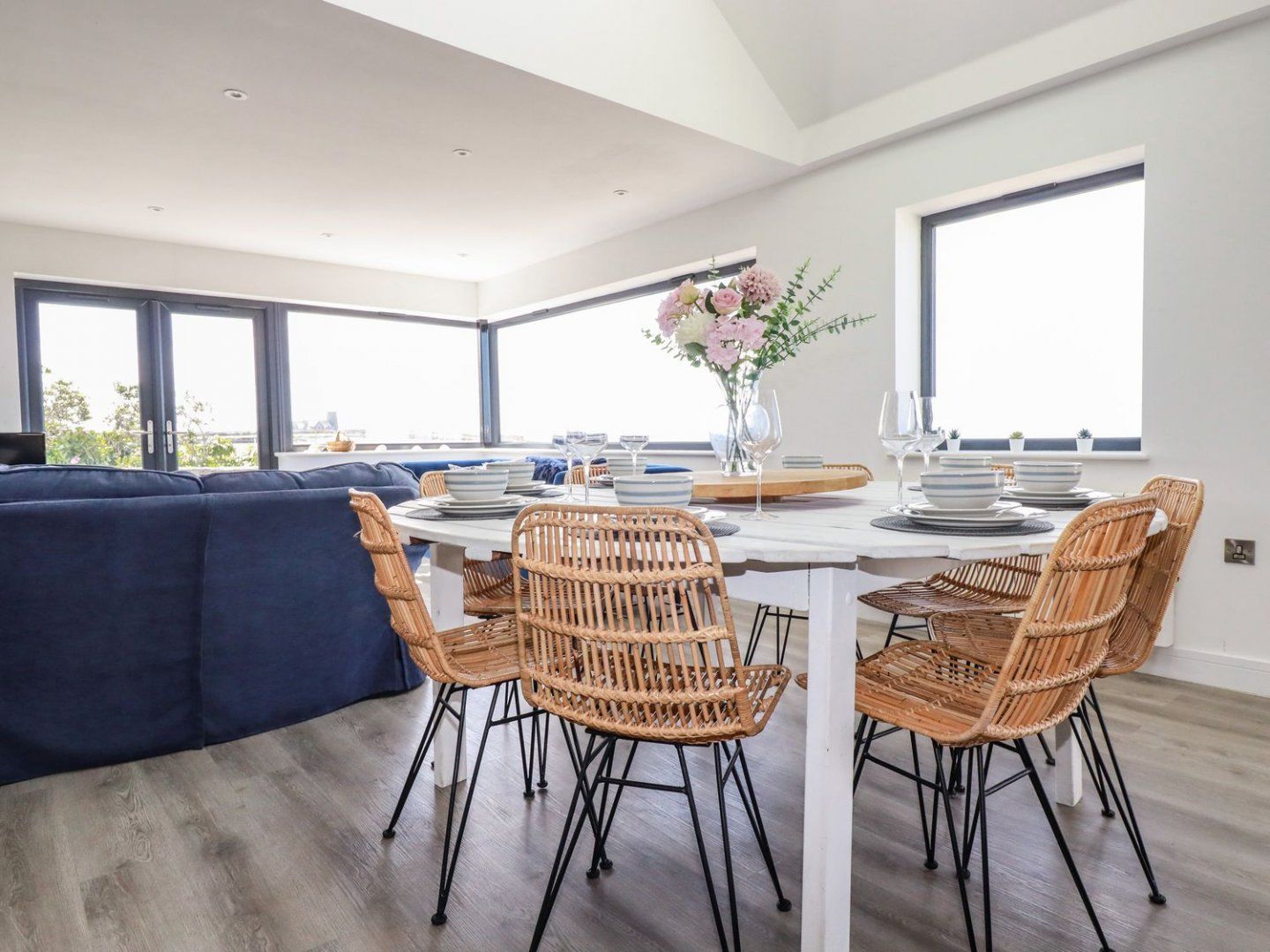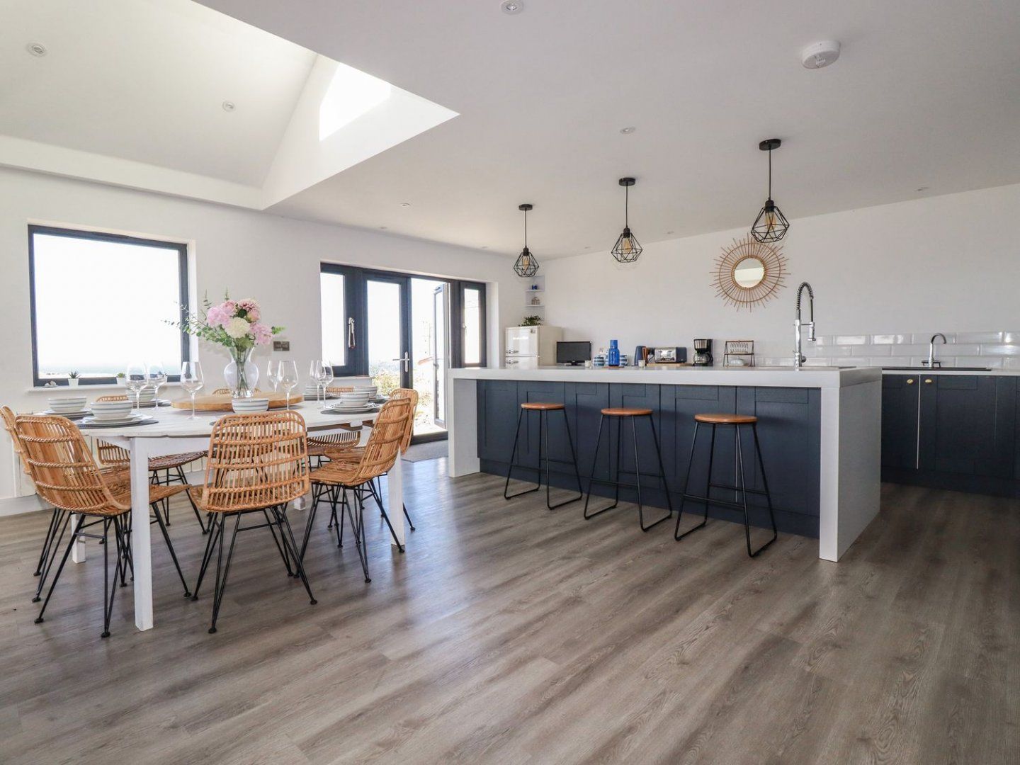Accomodation Details Five bedrooms: 1 x ground-floor double with TV and en-suite bath, shower over, basin and WC, 1 x ground-floor double with en-suite walk-in shower, basin, heated towel rail and WC, 1 x double, 1 x twin with TV and truckle bed, 1 x ground-floor family room with triple bunk and single. Shower room with walk-in shower, basin and WC. Ground-floor shower room with walk-in shower, basin and WC. Open-plan living space with kitchen, dining area and sitting area. Utility. Games room