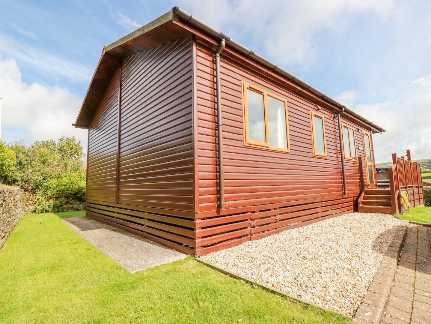 Amenities Gas central heating. Electric oven and gas hob, microwave, fridge/freezer, dishwasher and washing machine . TV with Freeview, DVD, CD/radio, WiFi, selection of books, games and DVDs. Fuel and power inc. in rent. Bed linen and towels inc. in rent. Off road parking for 1 car next to lodge and another on site. Patio with hot tub and furniture. Pets welcome, please note no smoking. Cot and highchair available upon request. Shop 0.7 miles, pub 0.8 miles. Note: There are a number of steps down to the cove from the coastal path. Note: Please bring own towels for use in the hot tub. Note: Dogs are not allowed on the site that come under the Dangerous Dogs Act 1991. Please note: Short break bookings must be 3 nights minimum in duration