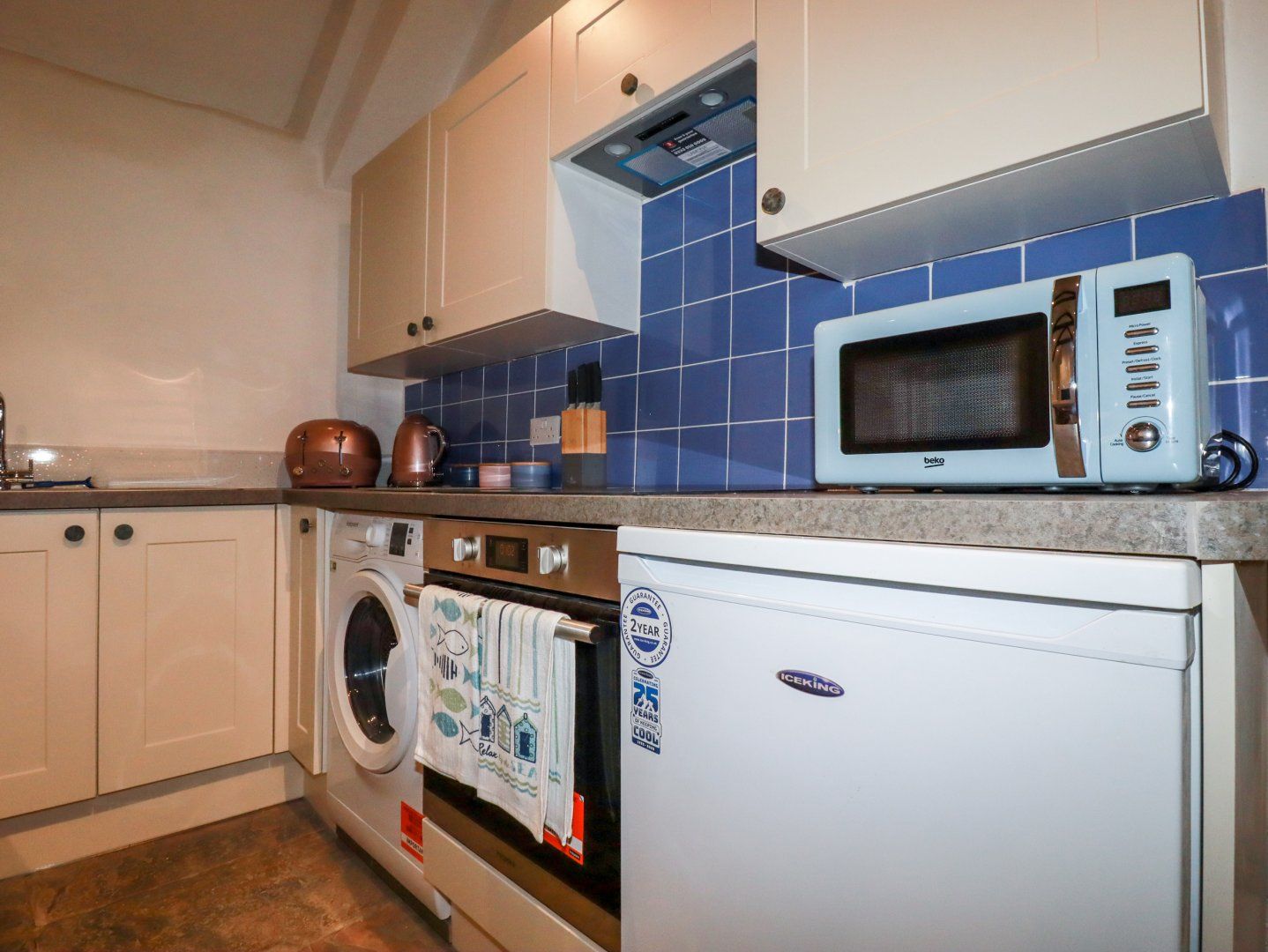 Amenities Electric central heating. Oven and hob, microwave, fridge/freezer, dishwasher, washing machine. TV, WiFi. Fuel and power inc. in rent. Bed linen and towels inc. in rent. Off-road parking. Rear garden with furniture. One well-behaved pet welcome. Sorry, no smoking. Shop 1.2 miles, pub 1.3 miles, beach 1.4 miles
