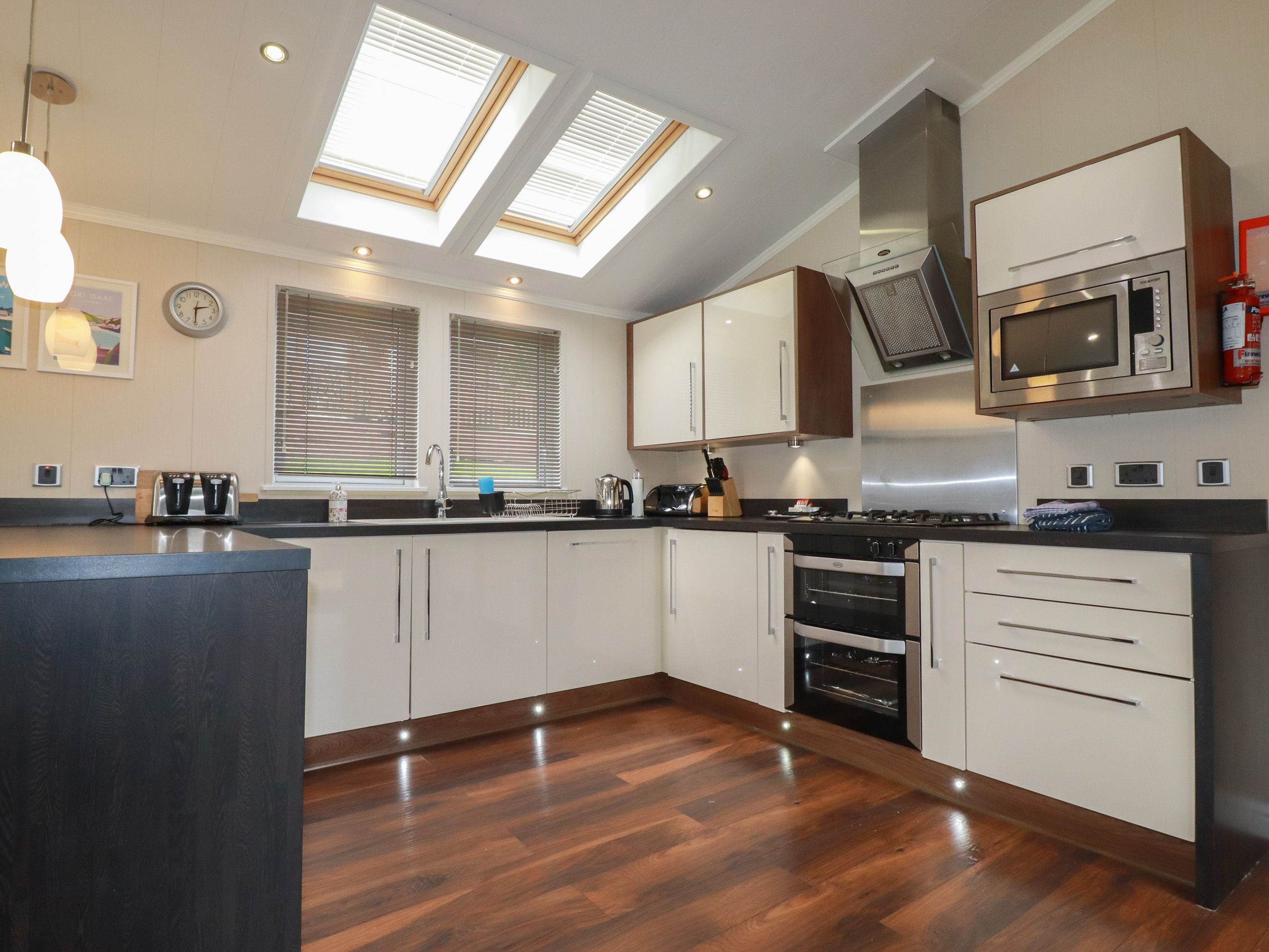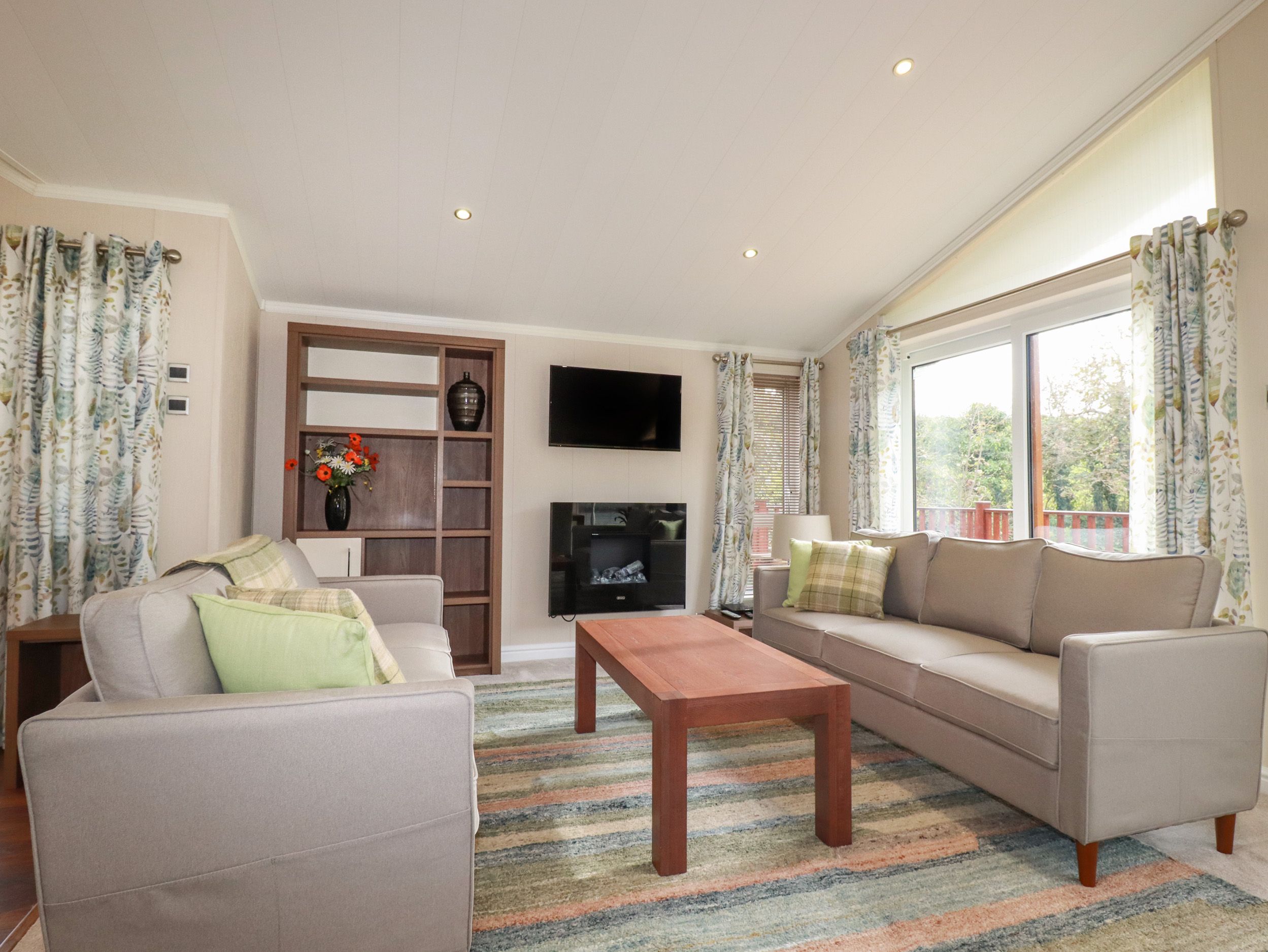 Please note: the only check-in days are FRI/SAT/MON, (NO SUNDAY check-in) and this property has a 4 night minimum stay. Single storey. Two bedrooms: 1 x double with en-suite walk-in shower, basin and WC, 1 x twin. Bathroom with bath, shower over, basin and WC. Open-plan living space with kitchen, dining area and sitting area with electric fire
