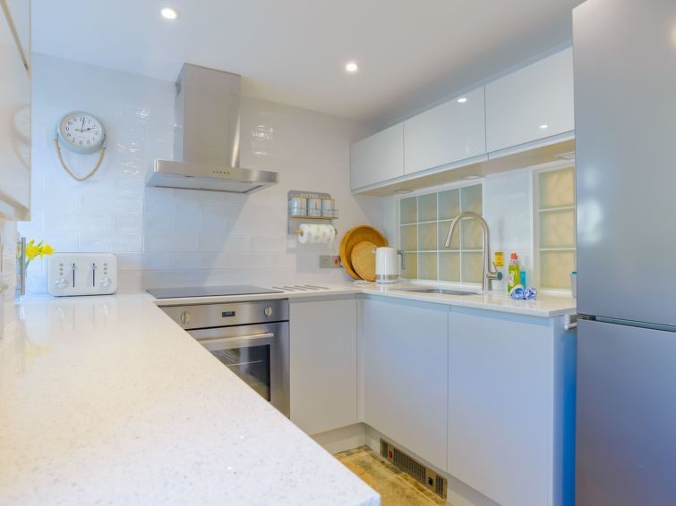 3-room apartment 40 m2. Spacious and bright, modern and stylish furnishings: living/dining room with TV (flat screen). Exit to the patio. Kitchen-/living room (oven, dishwasher, 4 ceramic glass hob hotplates, toaster, kettle, microwave, freezer). Shower/WC. Heating. On the lower ground floor: 1 double bedroom with 1 double bed.