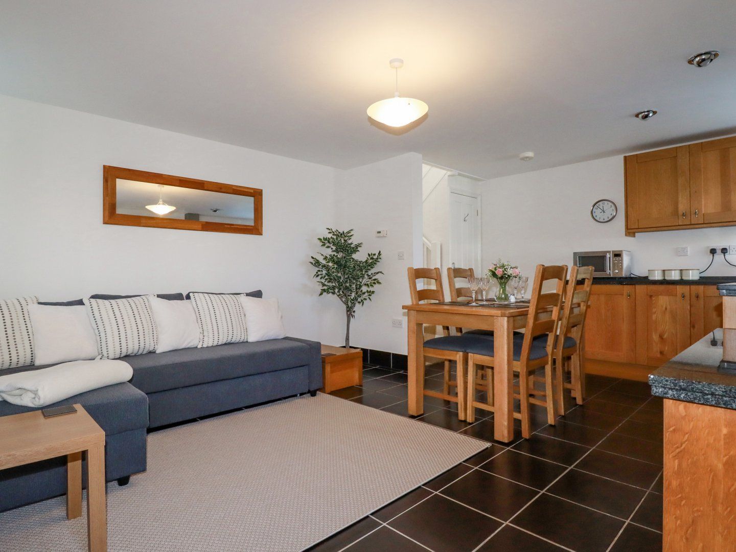 Holiday home The living areas in the property consist of an open-plan living area with a kitchen with an electric oven, electric hob, microwave, a sitting area and a dining area with seating for two. The bedrooms consist of a double with a Juliette balcony and an en-suite with walk-in shower, basin and WC. Outside there is an enclosed side garden with patio and furniture and off-road parking for one car. Within 1.5 miles, you will find a shop, within 1.7, a pub, and within 0.9, a beach, and please note that this is a pet-free, non-smoking property. WiFi, fuel, power, bed linen and towels are all included in the price