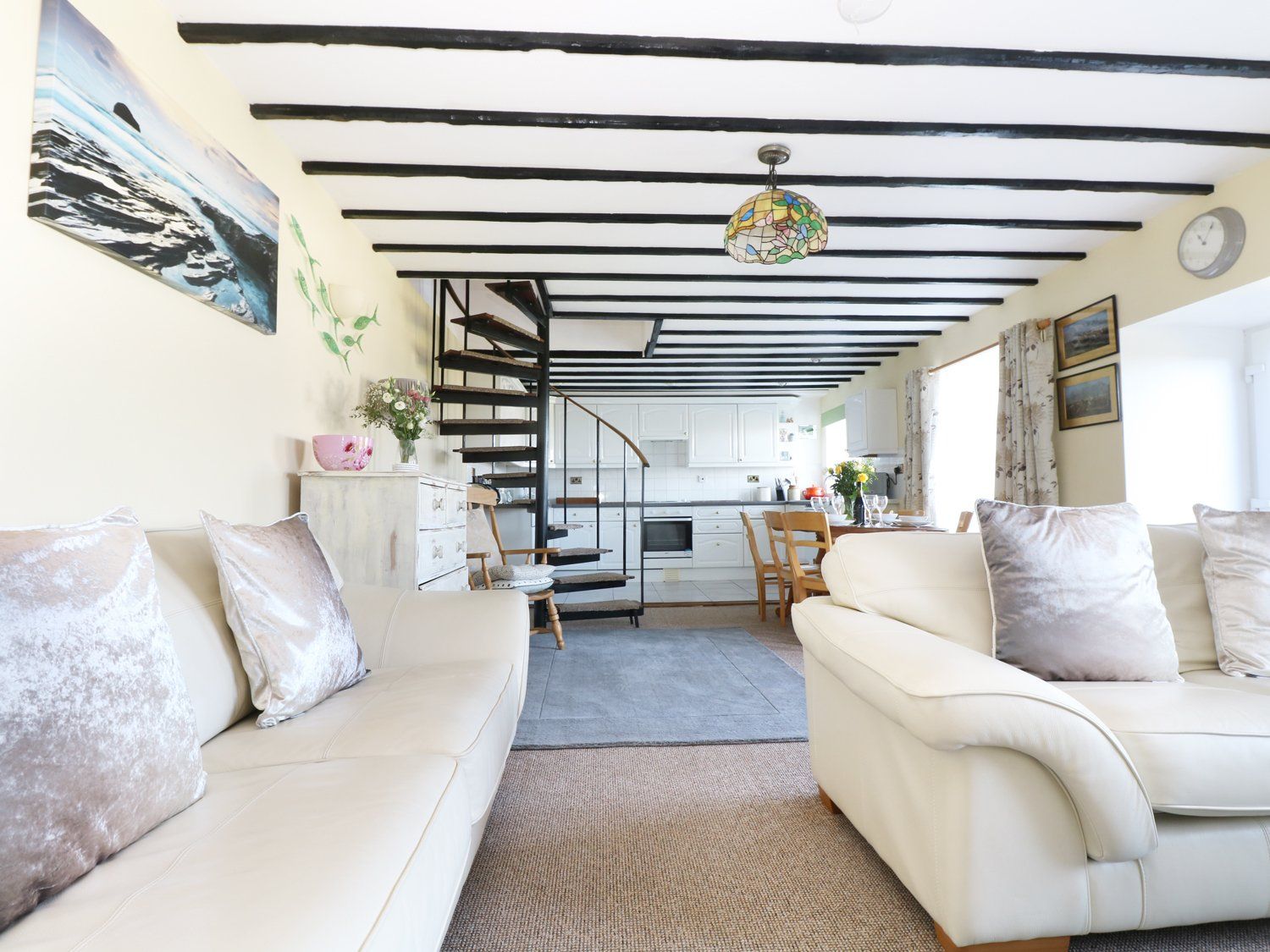 Holiday home With sea views from the garden, the water just a short walk and pigs and poultry around you, this semi detached stone-built cottage offers the ideal mix between coast and country living. The living accommodation is airy and open plan, with a spiral staircase leading to the family room with double and single bed, a further double and a twin. Take a meal on the patio, play a game in the enclosed garden or stroll to the beach at Bossiney Cove. Alternatively, head to Tintagel, Bude or the Eden Project.