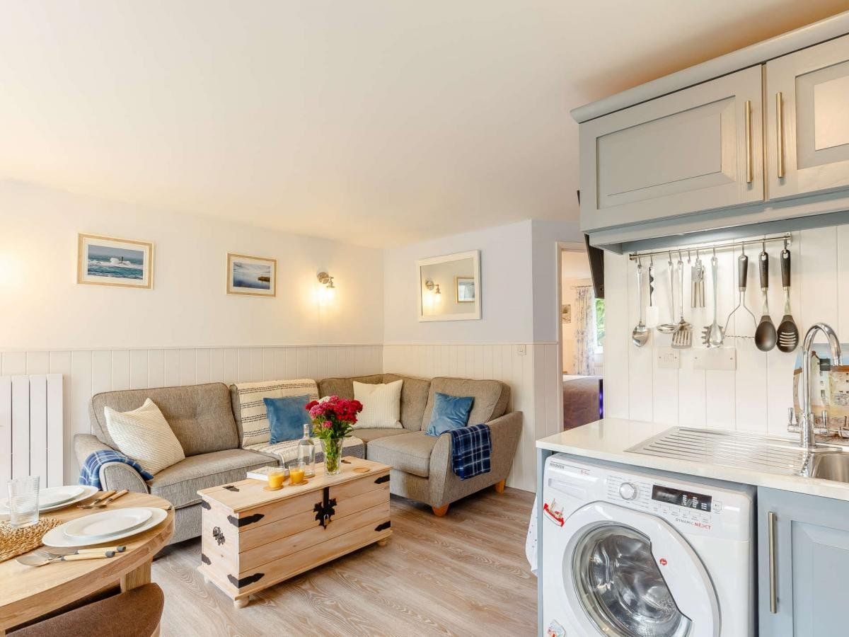 The property, which is just a short walk down to the village’s local beach, boasts a pretty terrace with palm trees outside, a perfect spot for enjoying afternoon tea or an evening tipple whilst admiring some of Cornwall’s vibrant scenery. The single-storey property provides comfortable accommodation for four guests, complete with a cosy and compact bunk bedroom that children will love.