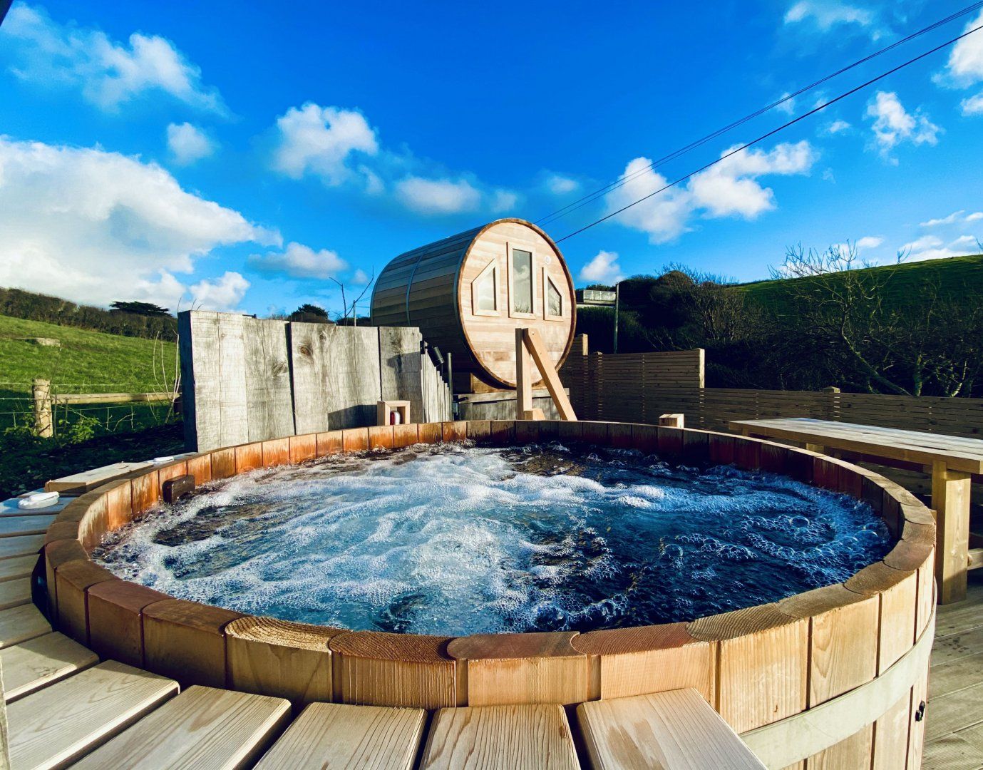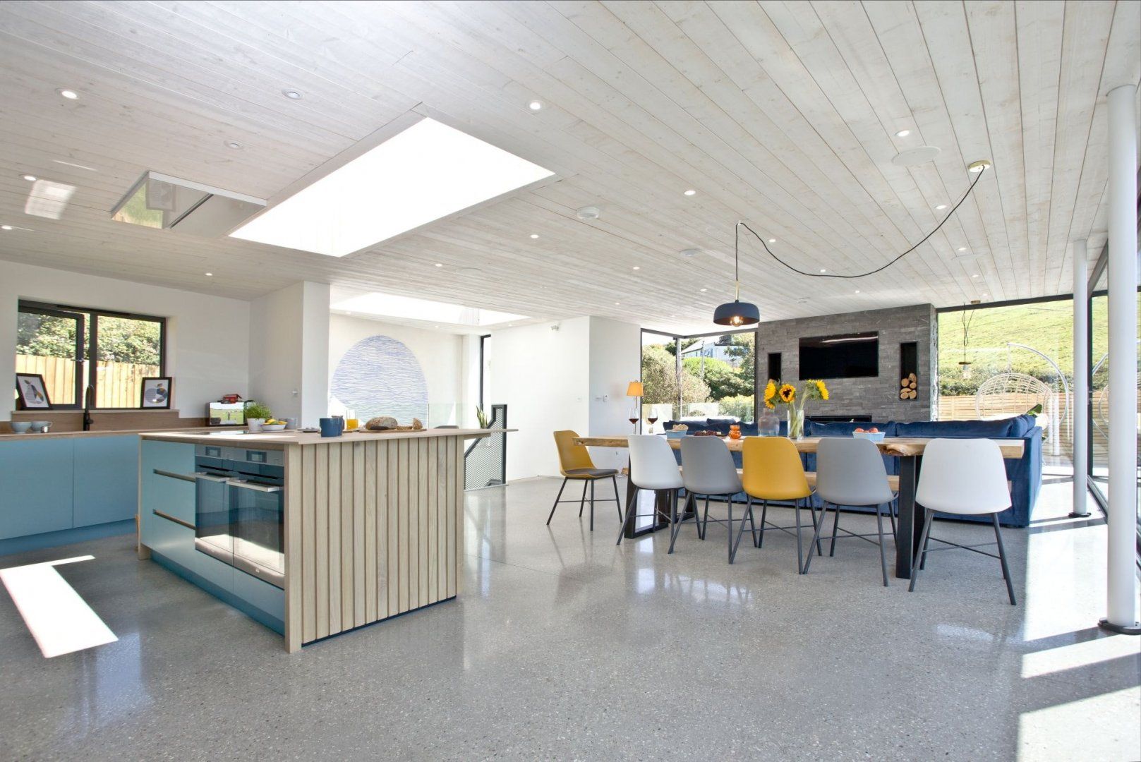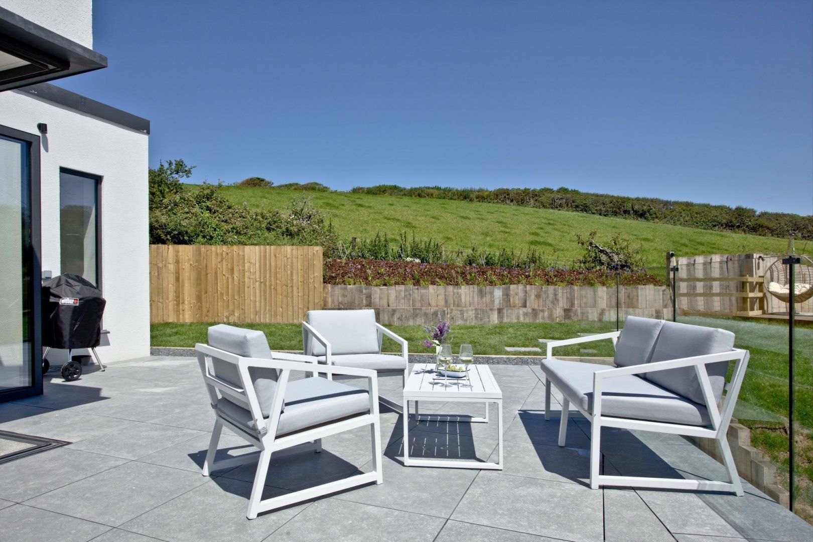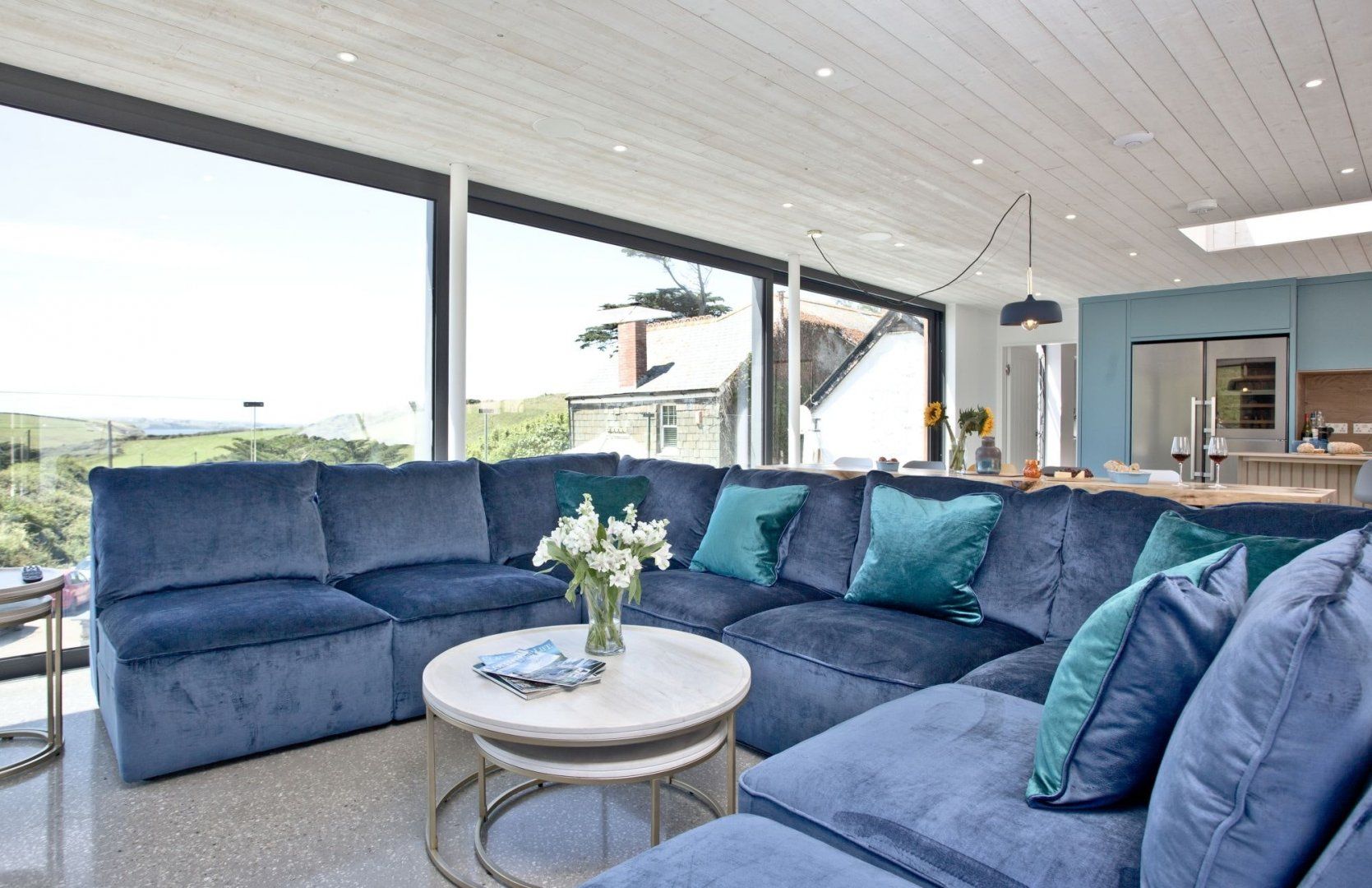 A masterstroke in modern living, this architect-designed home stands proud overlooking majestic Watergate Bay. Set out over two floors united by considered design, downstairs, you’ll find three airy, luminous bedrooms with contemporary en-suites and a cosy cinema room for movie nights. Head upstairs and things keep getting better, with a further bedroom offering up direct access to the landscaped gardens. But for us, the clear standout feature has to be the palatial living area and kitchen with incredible views of the distant fields rolling into the glistening sea. This space is best served with the patio doors slid right back to let the sunshine in as you come together for lazy breakfasts around the dining table. And when the sea comes calling, you won’t have far to go. The two-mile-long surfing beach at Watergate Bay with a buzzy cafe and restaurant is a mere ten-minute walk away. Or for a change of pace, Padstow is just ten miles north, and The Eden Project is a thirty-minute drive away. Just be sure to make it home for dusk to fire up the barbecue and enjoy the ultimate post-surf relaxation in the sauna and hot tub. With the views of the setting sun in the distance, there is no better place to be.