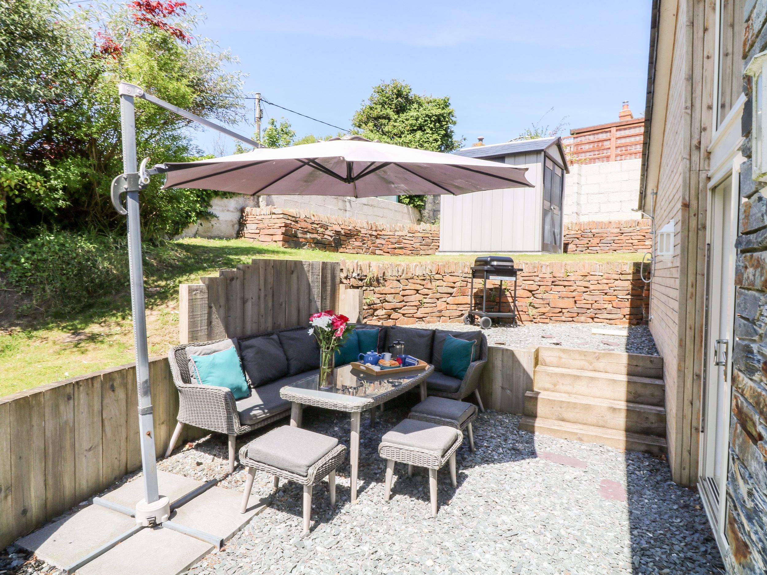 Electric heating with woodburning stove. Electric oven and hob, microwave, fridge, freezer, washing machine, dishwasher, Nespresso coffee machine, Smart TV, Netflix and WiFi. Fuel, power and starter pack for woodburner inc. in rent. Bed linen and towels inc. in rent. Off road parking for two cars. Two well behaved pets accepted, sorry no smoking allowed, Garden with lawn, patio, table and chairs and BBQ, (The garden is not enclosed). Shop and pub 0.9 miles, beach 4 miles. Note: This property has a 4pm check in time. Note: the ground floor bedroom and bathroom are accessed via 4 steps.