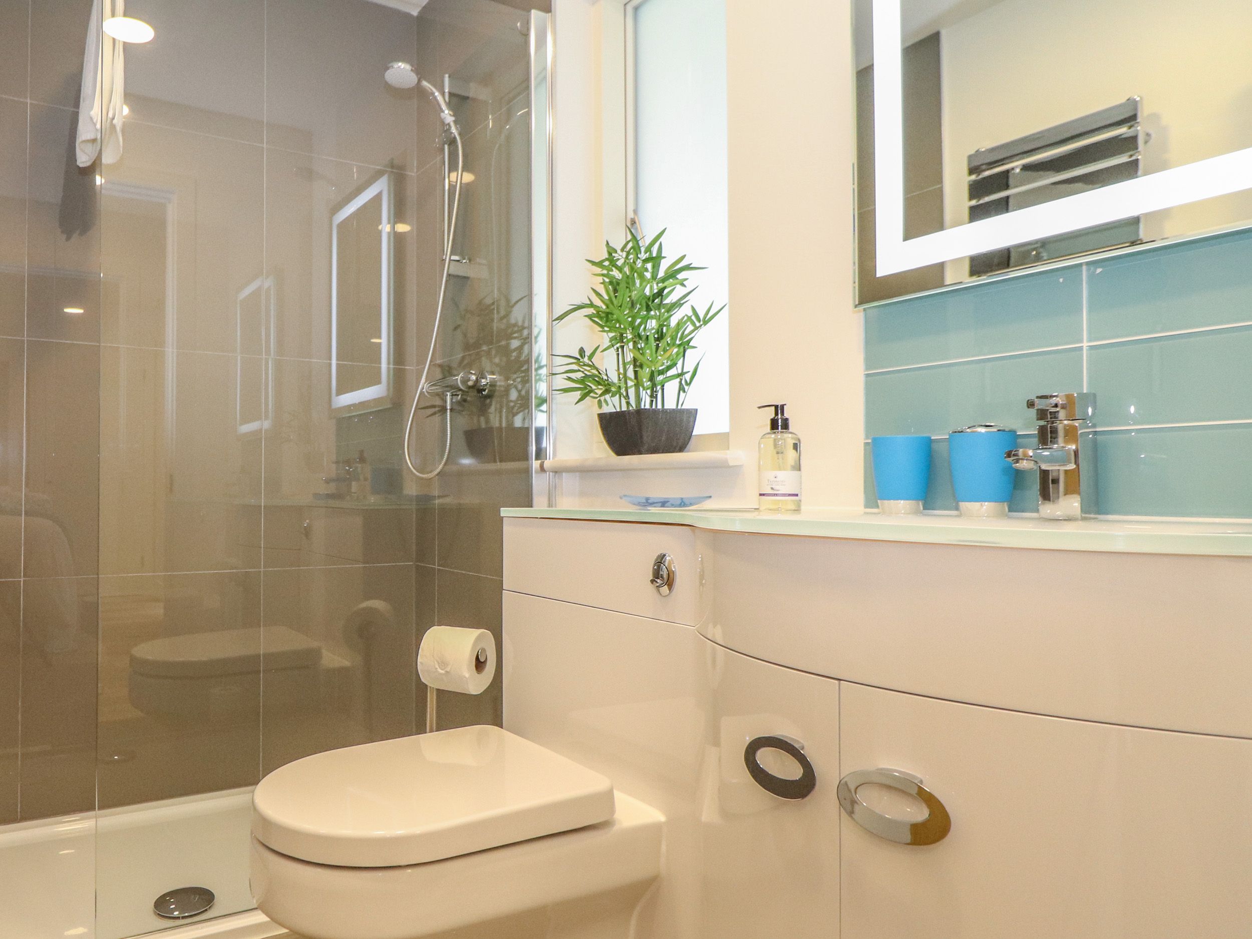 All ground floor. Three bedrooms: 1 x super king-size double (zip/link, can be twin upon request) with en-suite walk-in shower, basin and WC, 1 x super king-size double (zip/link, can be twin upon request) with en-suite walk-in shower, basin and WC, 1 x super king-size double (zip/link, can be twin upon request). Wet room with walk-in shower, basin and WC. Open-plan living area with kitchen dining area and sitting area with woodburner.