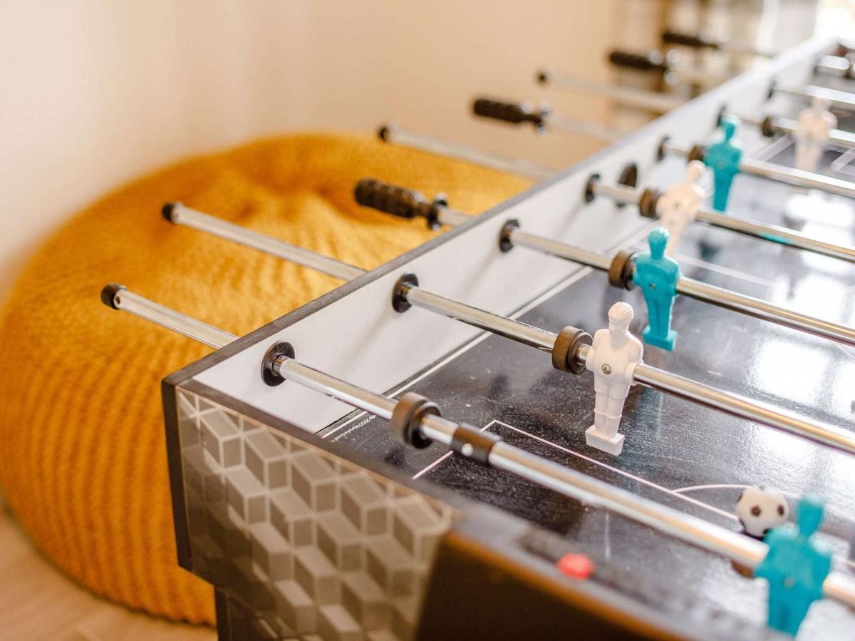 It’s got something for all the family (including two dogs), with a pretty garden, an open fire as well as a cosy wood burner to snuggle up by, and a baby football table. There’s plenty of room to kick back and relax as well.