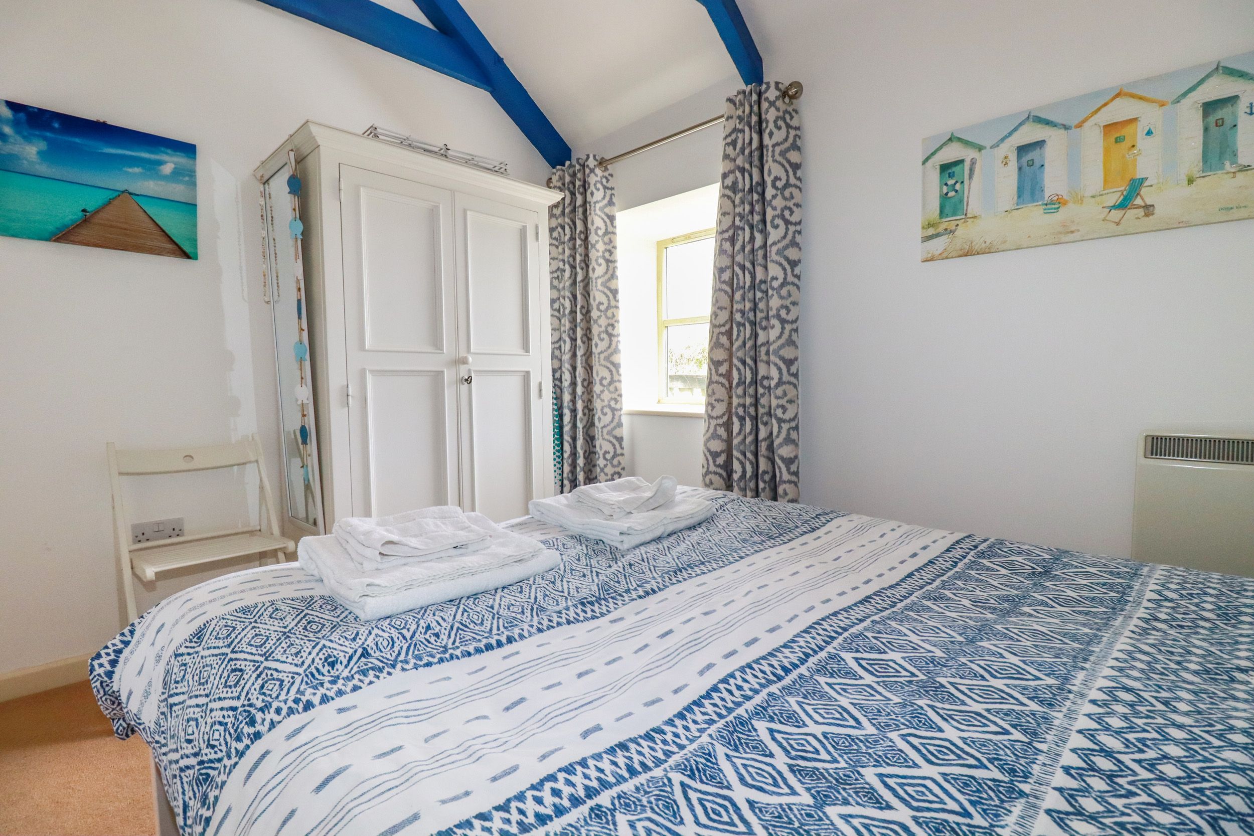 Holiday home Moonlight offers first-floor accommodation with one double bedroom and a shower room. The open-plan living space includes a kitchen, dining area, and sitting area with an electric fire. Amenities comprise electric heaters, electric oven/hob, microwave, fridge, freezer, washing machine, and dishwasher. Entertainment options include a TV with Freeview, DVD player, and WiFi. Bed linen and towels are included. Private parking is available for one car, and there's a first-floor terrace with furniture, as well as a rear shared terrace with lawn, gravel, and furniture. Two well-behaved pets are welcome, and smoking is not permitted. Nearby amenities include a shop (1.3 miles) and pub (3.1 miles). Electricity is operated by a coin meter. Check-in is from 4pm, and check-out is by 10am. Please note the shared garden and the Good Housekeeping Bond of 125GBP. Enjoy a romantic retreat in Cornwall at Moonlight. Property only takes a minimum 3 night short breaks