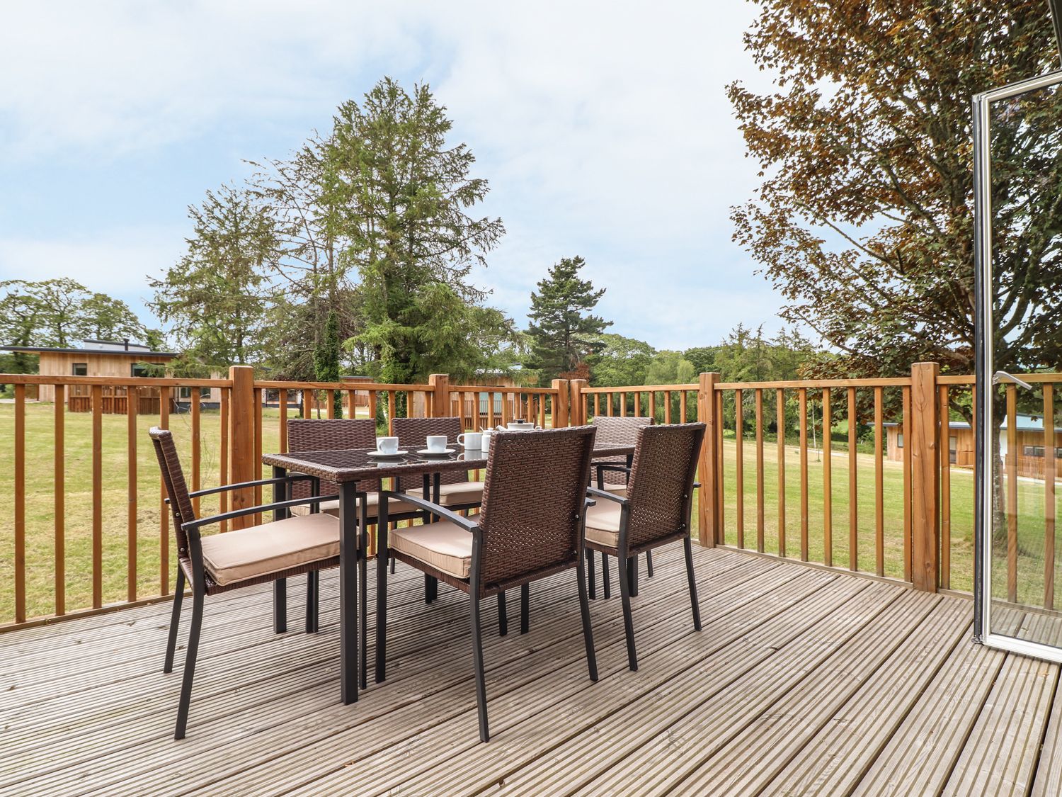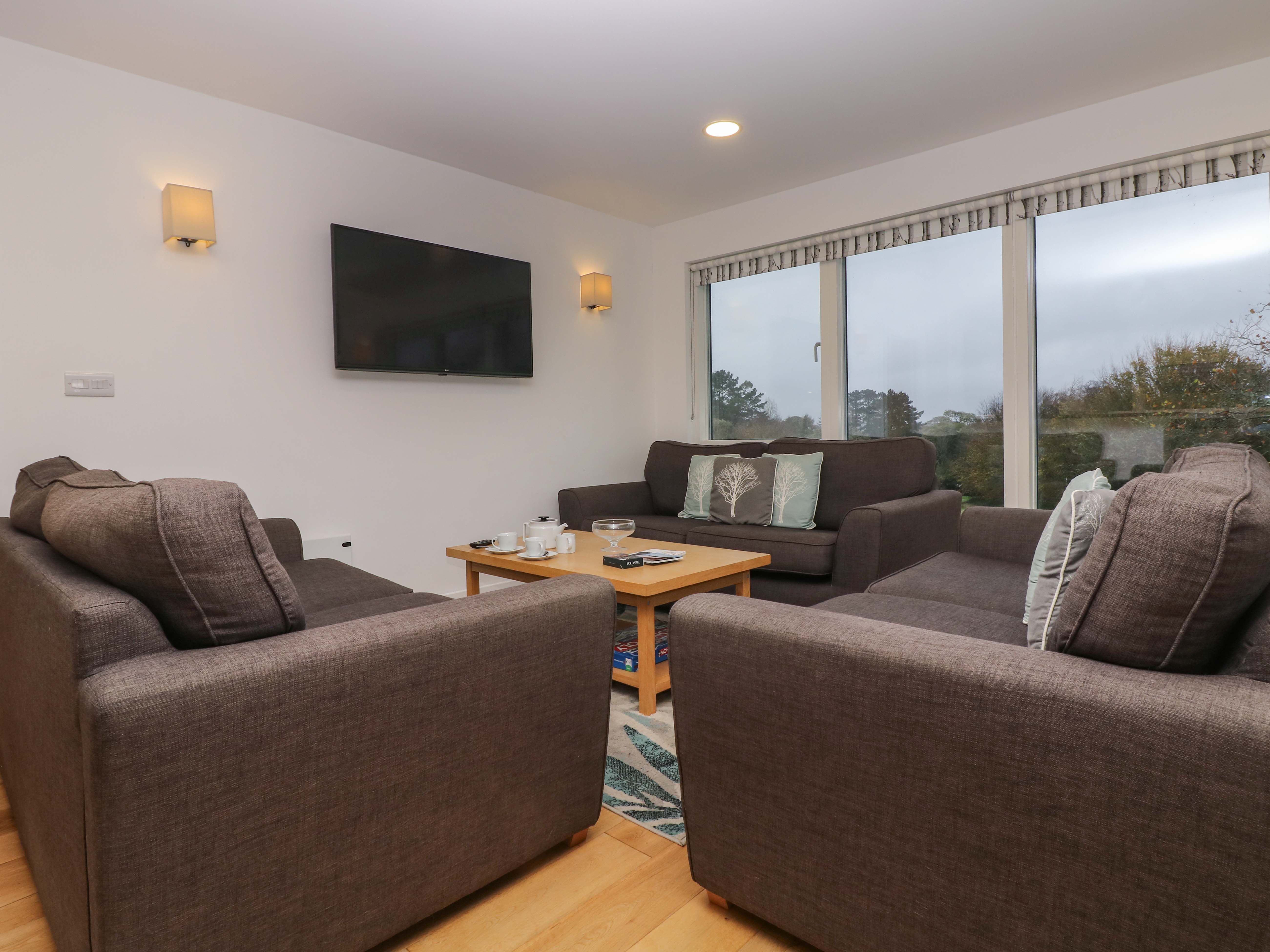 Holiday home Lodge 8 is a contemporary, ground floor property situated just south of Truro in Cornwall. Its three bedrooms consist of a king-size with an en-suite, a double with an en-suite and a double zip/link room, which along with a family shower room, mean that this lodge can sleep up to six people. Its interior also provides an open-plan living area consisting of a kitchen, a dining area and a sitting area with a woodburning stove. Lodge 8 serves as a wonderful base for friends and family seeking a break in this fabulous location.