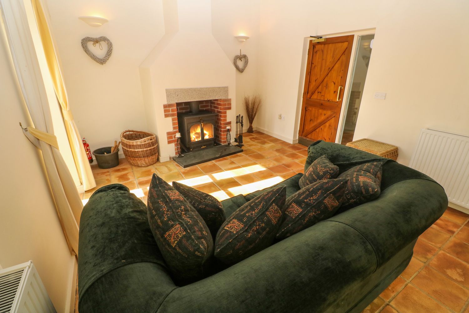 Main farm house: Ground floor 1 x single next to family bathroom,1 x double. First floor 2 x twin, 1 x super-king (zip/link available on request) with en-suite shower and basin. 1 x super-king (zip/link available on request) Ground floor WC. Ground floor bathroom with separate bath, shower, WC and basin. First floor family bathroom.
