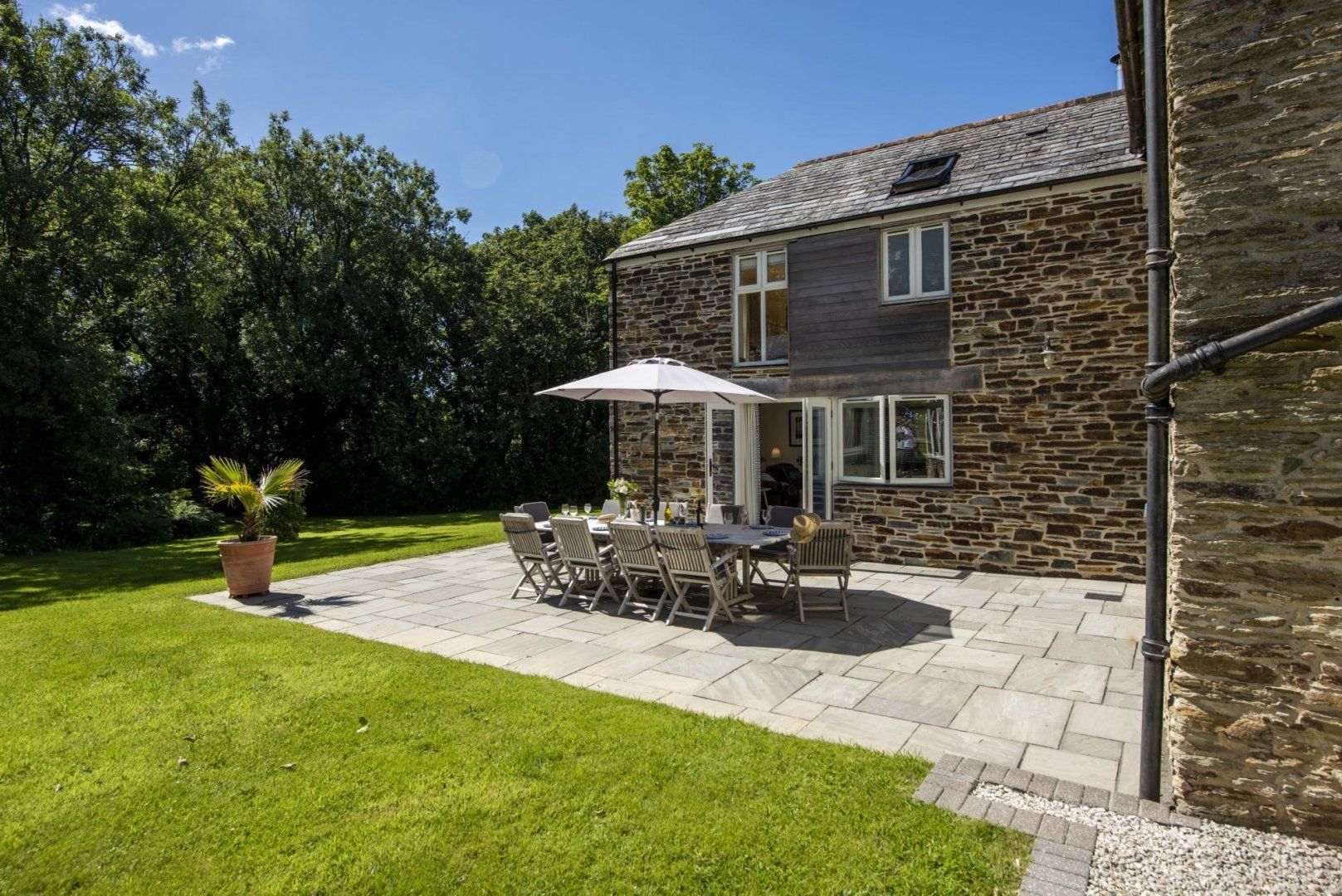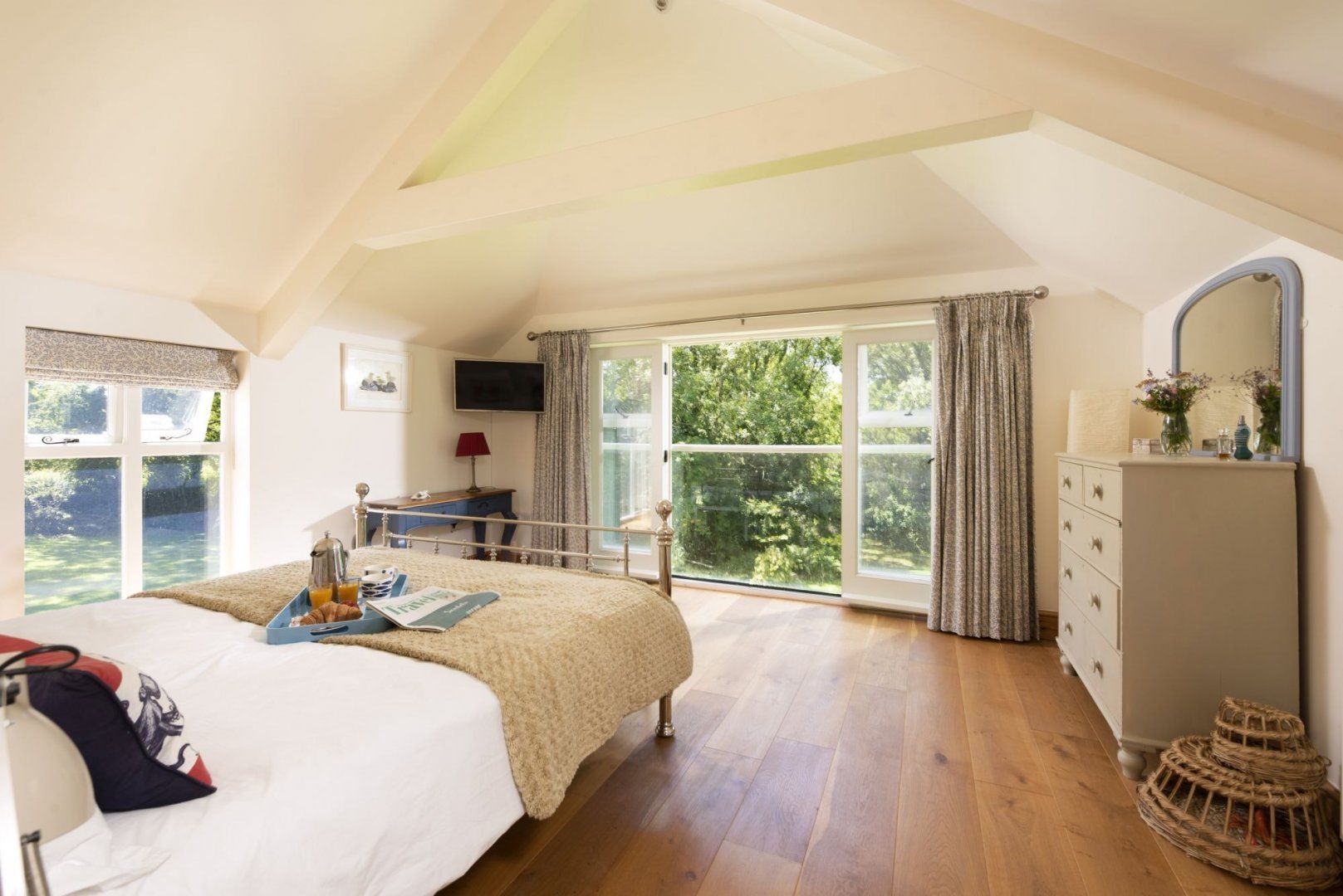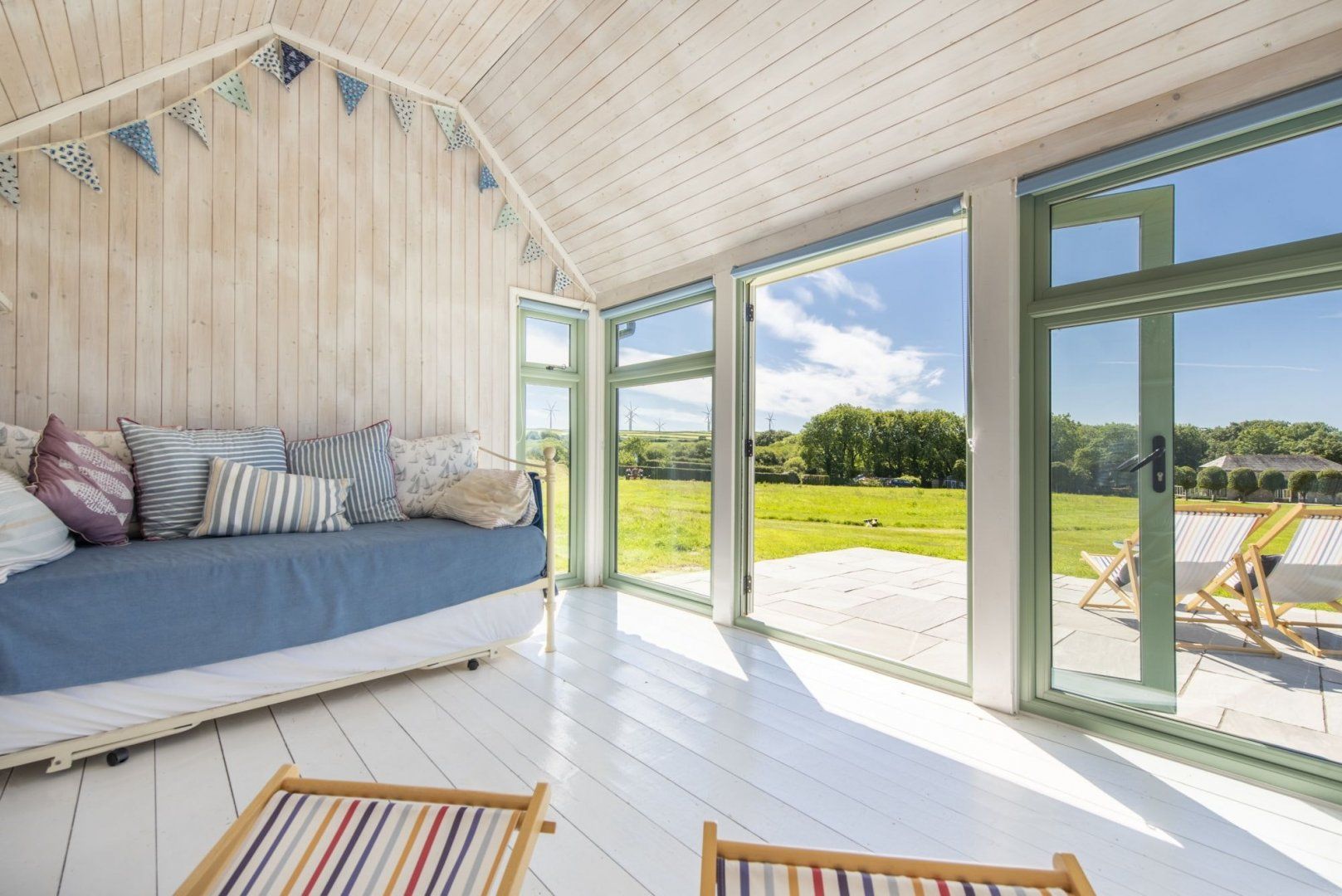 Spend idyllic days in the Cornish countryside when you stay at this recently converted barn, situated a twelve-minute drive from beautiful Padstow. Enjoy long walks on the South West Coast Path – the cliff tops at Park Head offer incredible views across to the sea stacks at Bedruthan Steps (a ten-minute ride away). Back at this wonderful barn – it's perfect for a family or a group of friends looking for a tranquil retreat. Inside, we were blown away by the rustic charm mixed with elegant modernism. We love the Delabole slate bathrooms, exposed stone walls and vaulted beams throughout this home. In fact, this place has been designed with socialising and entertaining in mind – it's a great space to spend quality time together. On chillier days, curl up in front of the cosy wood-burning stoves in the living room or den and settle in for an evening of board games with the family. There are four acres of grounds to explore here, including orchards and wildflower meadows. There's even an outdoor shower, so you can rinse off after visiting the beach – your lovely hosts have really thought of everything here. Our favourite spot in the garden has to be the magical summerhouse – savour the spectacular views that stretch to the Atlantic Ocean or recline on the day bed and read a book. It's just one of the many fantastic features that make this home so very special.