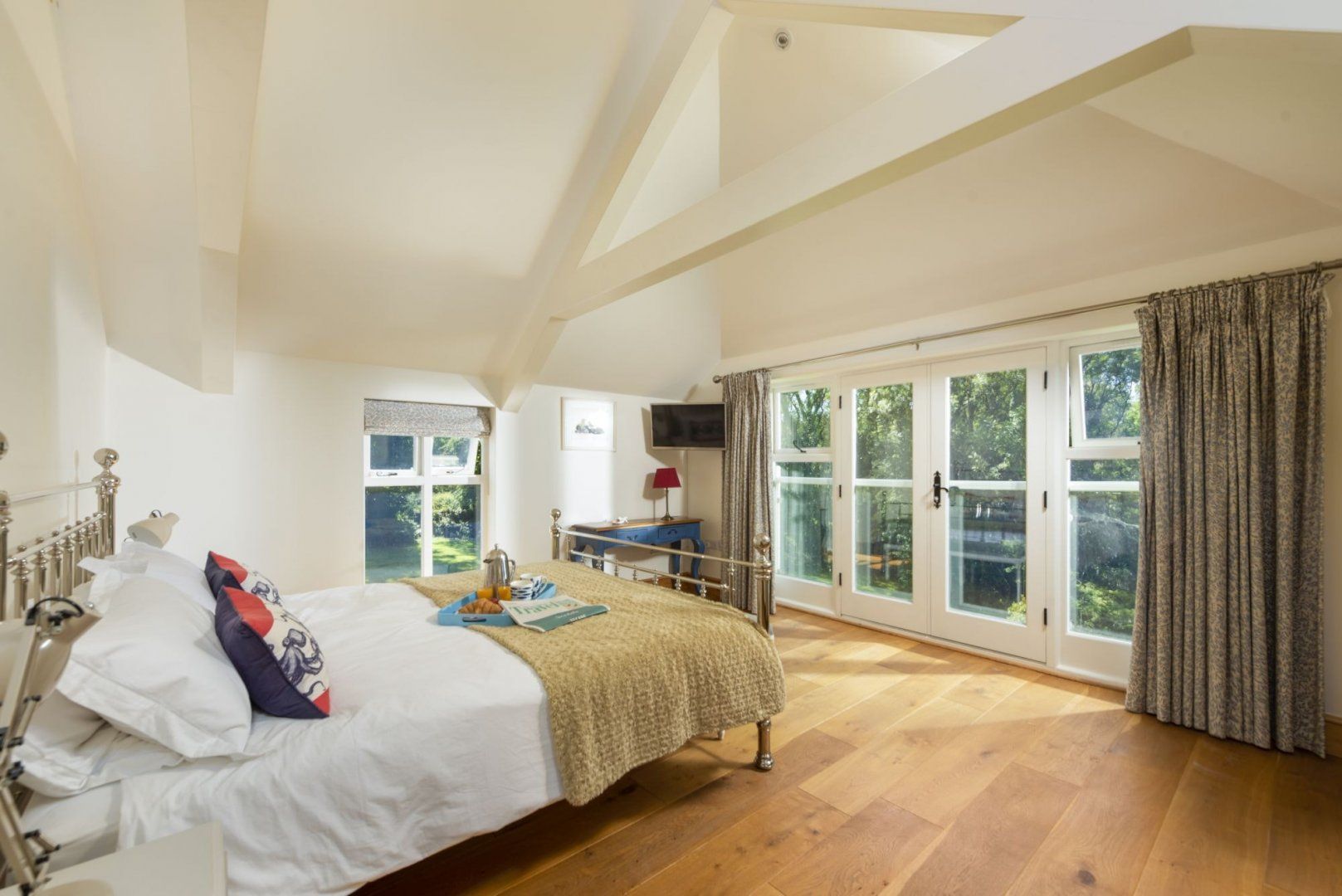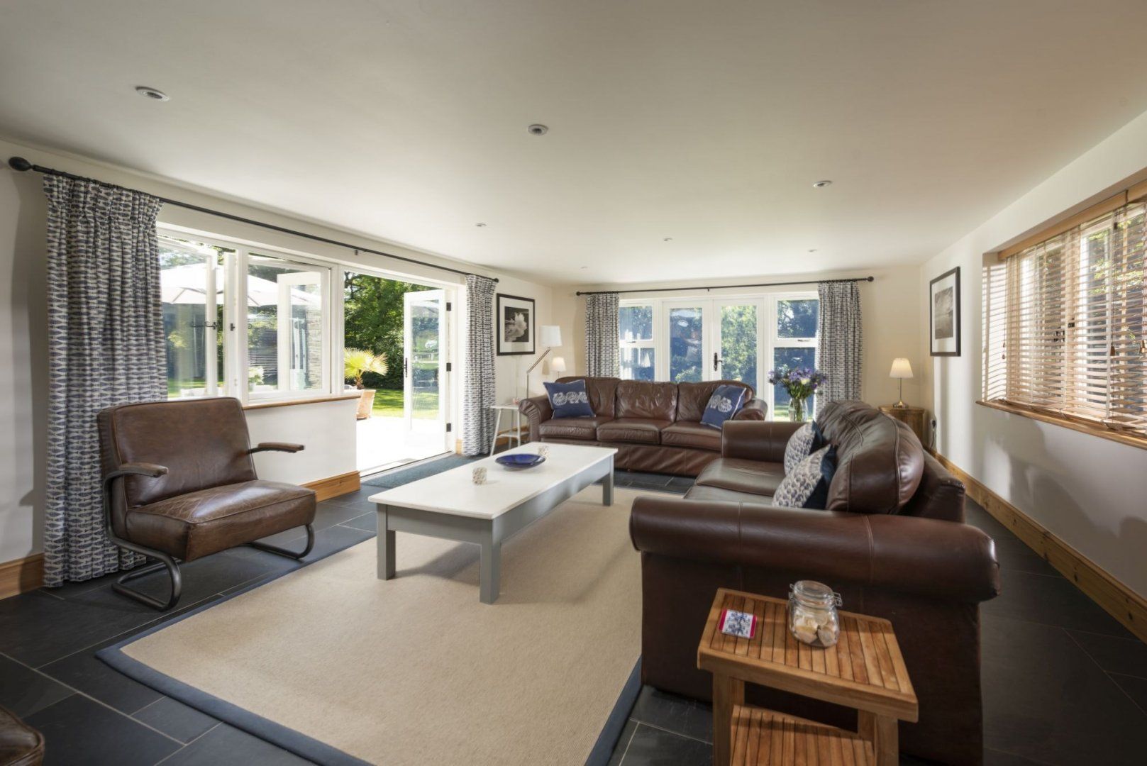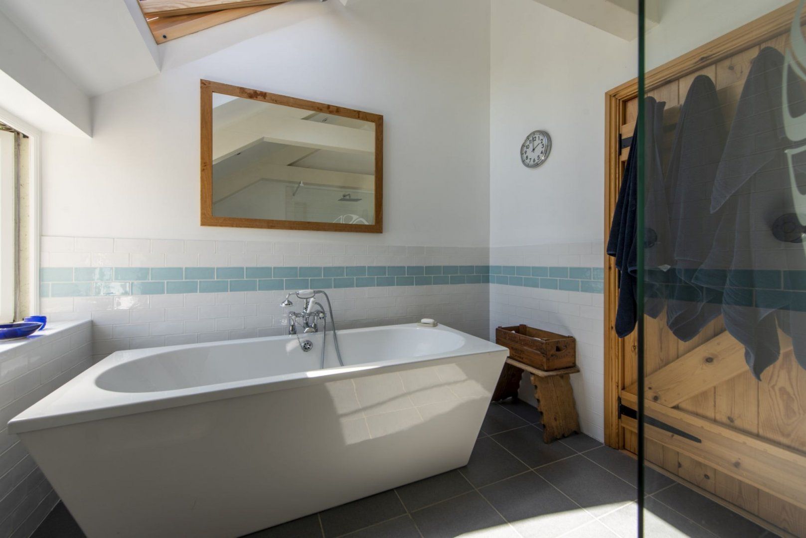 Spend idyllic days in the Cornish countryside when you stay at this recently converted barn, situated a twelve-minute drive from beautiful Padstow. Enjoy long walks on the South West Coast Path – the cliff tops at Park Head offer incredible views across to the sea stacks at Bedruthan Steps (a ten-minute ride away). Back at this wonderful barn – it's perfect for a family or a group of friends looking for a tranquil retreat. Inside, we were blown away by the rustic charm mixed with elegant modernism. We love the Delabole slate bathrooms, exposed stone walls and vaulted beams throughout this home. In fact, this place has been designed with socialising and entertaining in mind – it's a great space to spend quality time together. On chillier days, curl up in front of the cosy wood-burning stoves in the living room or den and settle in for an evening of board games with the family. There are four acres of grounds to explore here, including orchards and wildflower meadows. There's even an outdoor shower, so you can rinse off after visiting the beach – your lovely hosts have really thought of everything here. Our favourite spot in the garden has to be the magical summerhouse – savour the spectacular views that stretch to the Atlantic Ocean or recline on the day bed and read a book. It's just one of the many fantastic features that make this home so very special.