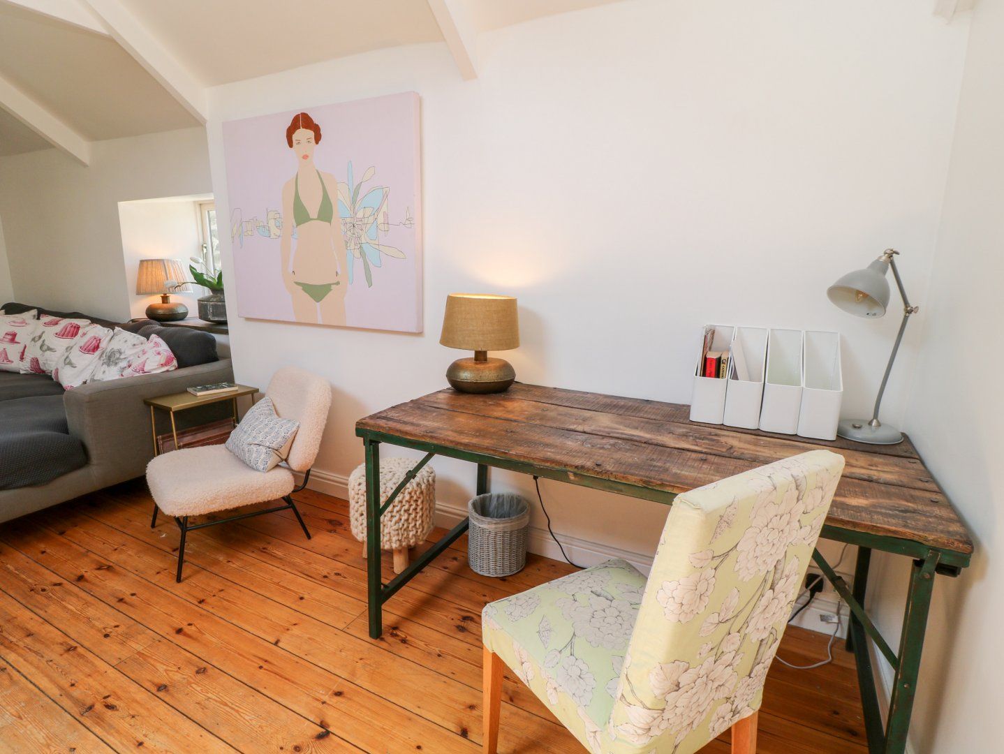 Oil central heating. Gas Range cooker and hob, microwave, fridge/freezer, washing machine, tumble dryer, dishwasher. Smart TV, WiFi. Fuel and power inc. in rent. Bed linen and towels inc. in rent. Travel cot and highchair available on request. Ample off-road parking. Lawned garden and wrap-around patio with furniture, outdoor shower and barbecue. Two well-behaved pets welcome. Sorry, no smoking. Shop 0.5 miles, pub 0.2 miles, beach 1.3 miles. Note: There are horses in the neighbouring field. Note: Check-in from 16:00 and check-out by 10:00. Note: The small double bed is accessed via a mezzanine ladder and is suitable for one adult or two children