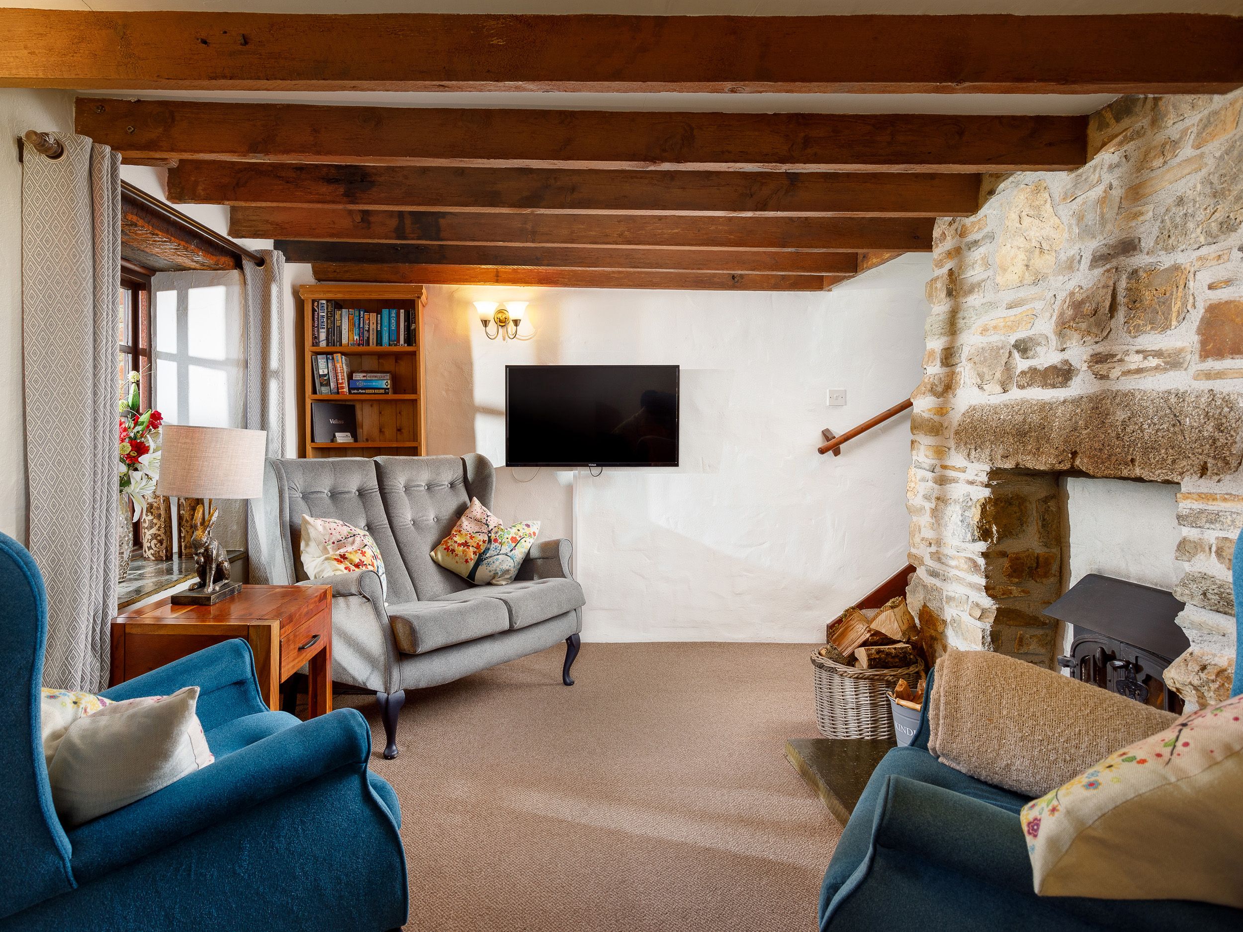 Holiday home Ash Cottage is a pretty, stone fronted barn in Warbstow, close to the North Cornwall coast. Hosting two bedrooms; a double, and a twin room, this property can sleep up to four people. Ground floor bathroom. Inside you will find a neat living area with a kitchen, dining area and sitting area with woodburning stove. Outside you are welcome to explore the farm and can meet the animals, and friendly Alpacas. Located in a quiet rural setting but within easy driving distance of both the coast and the moors, Ash Cottage is an excellent retreat in a beautiful part of Cornwall. Off-street parking for 2 cars, with EV Charger on site. Additional public parking nearby. Note: Cot and High Chair available.