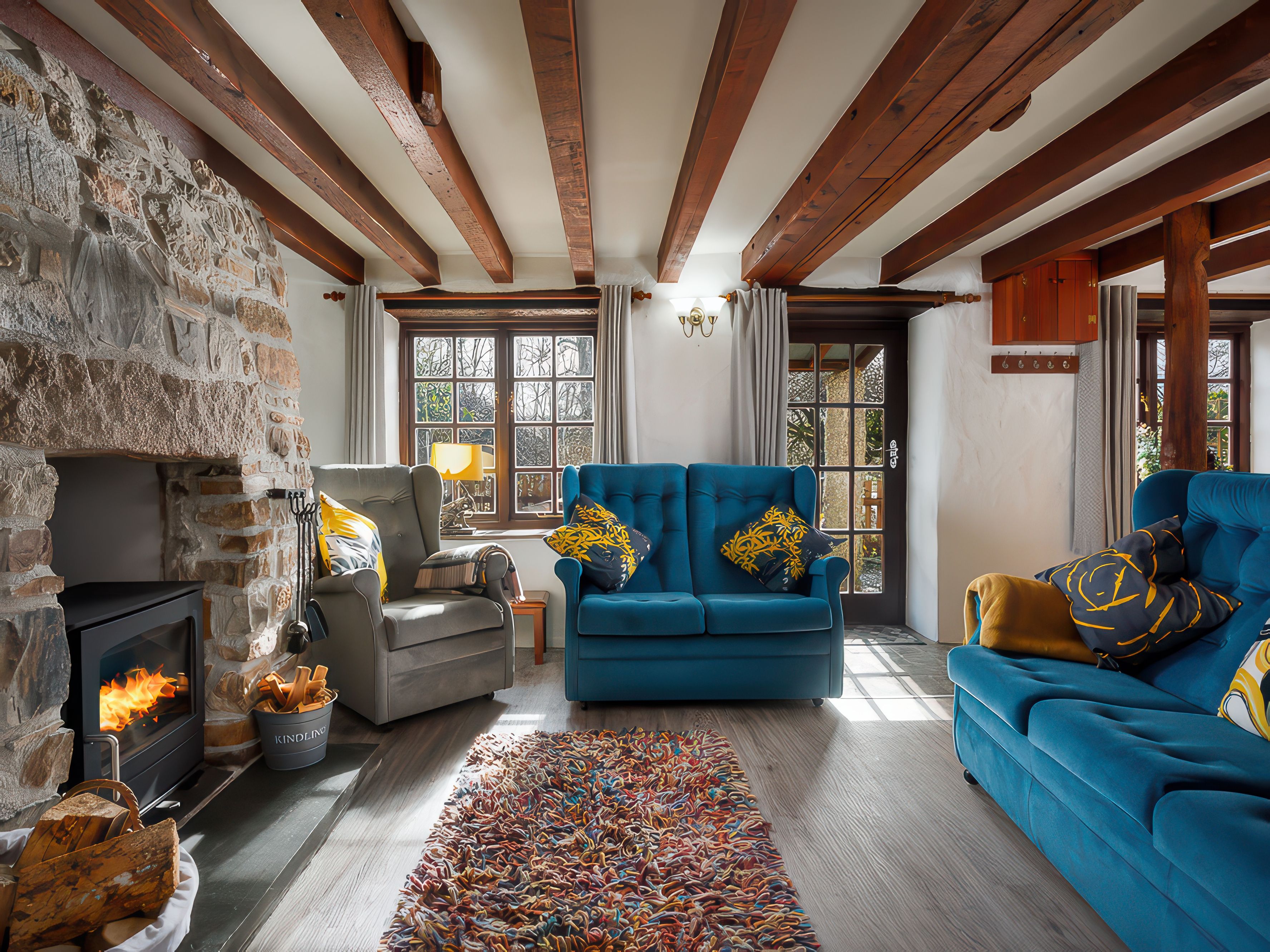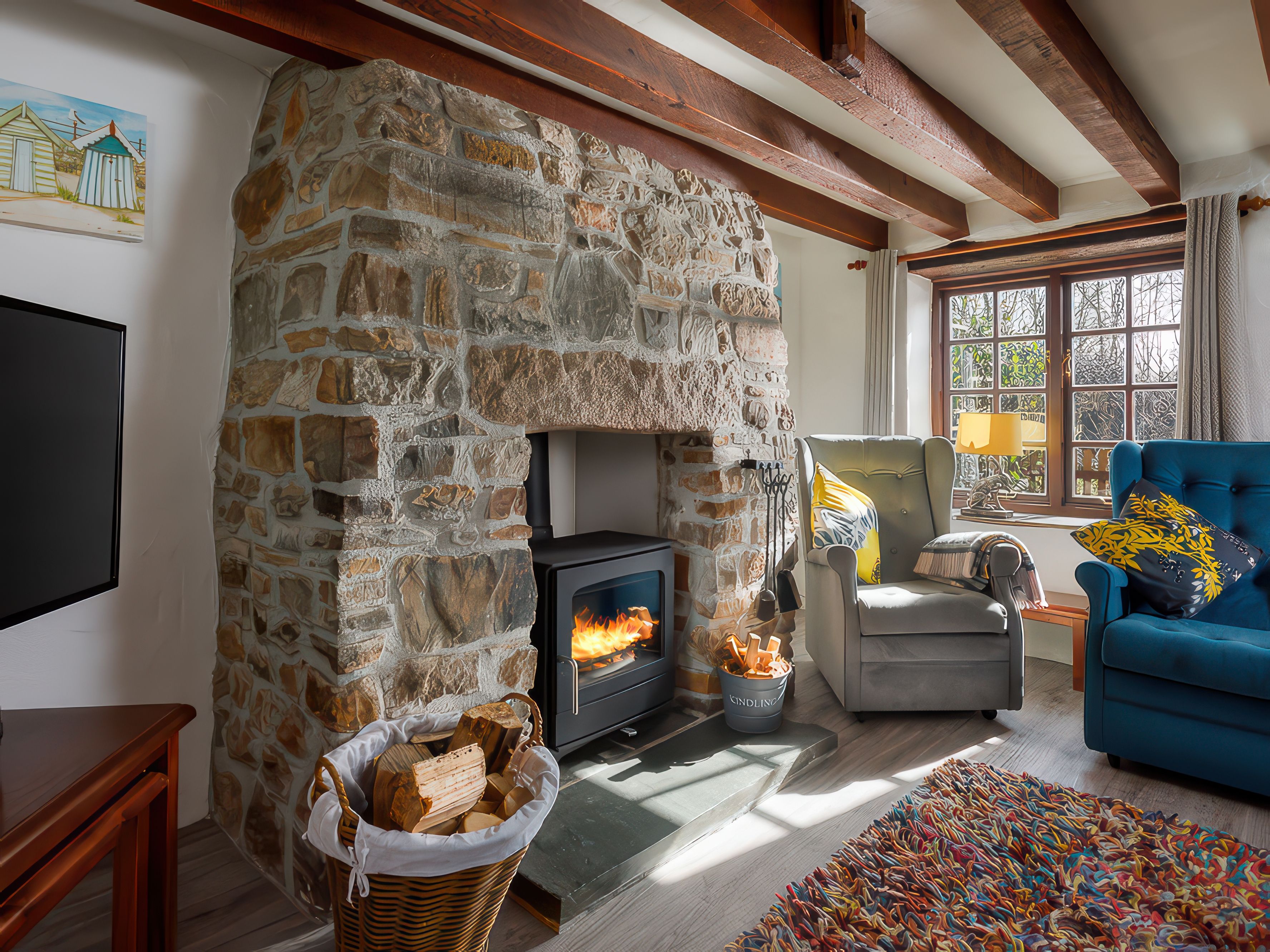 Amenities Electric heating with woodburning stove. Electric oven and hob, microwave, fridge, washer/dryer, dishwasher, smart TV, superfast Wifi, docking station, selection of books and games. Fuel, power and starter pack for wood burner inc. in rent. Bed linen and towels inc. in rent. Cot and highchair available. Table tennis, darts and communal freezer available in open fronted barn. Children's play area, boules, BBQ and fire pit. Off road parking for two cars. EV charging point available. Sorry, no smoking. Three well-behaved dogs welcome £20 supplement applies per pet, with fenced garden. Sorry, no puppies or cats allowed at the property. Gold Award for Green Tourism 2021 Shop and pub 3 miles. Coast 5 miles. Note: This property has a 4pm check in time. Note: This property has some low beams, those over 6'2 should be aware.