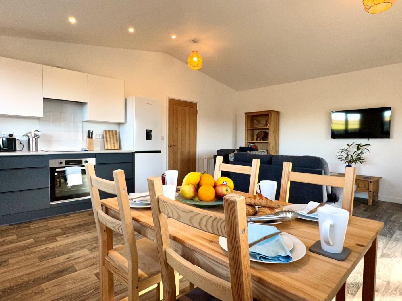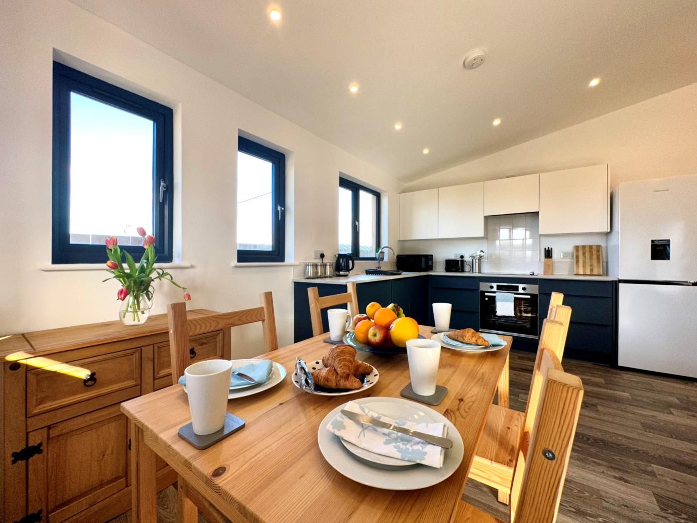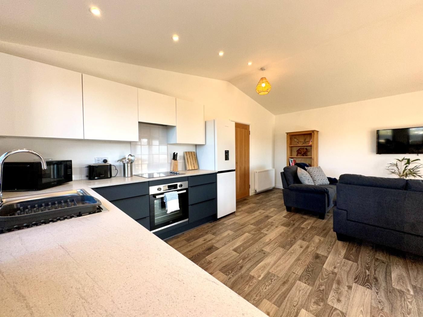 Step into the hallway, where sandy shoes can be removed before heading through to the light and airy lounge/kitchen/diner, offering a taste of sociable, contemporary coastal life.