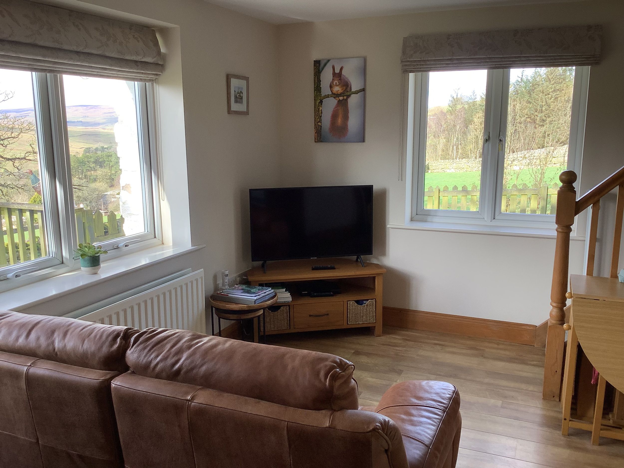 Amenities Gas central heating. Electric oven and ceramic hob, microwave, fridge with integrated freezer, 2 x TV with Freeview, WiFi, selection of books, games and DVDs. Fuel and power inc. in rent. Bed linen and towels inc. in rent. Stairgate. Off-road parking for one car. Enclosed front lawn. Two well-behaved dogs welcome. Sorry, no smoking. Shop 1 mile. Pub 3 miles. Note: Private track up to the property.