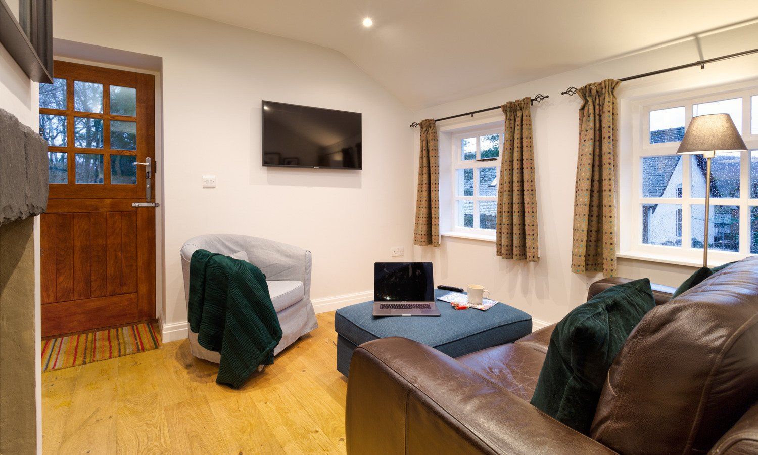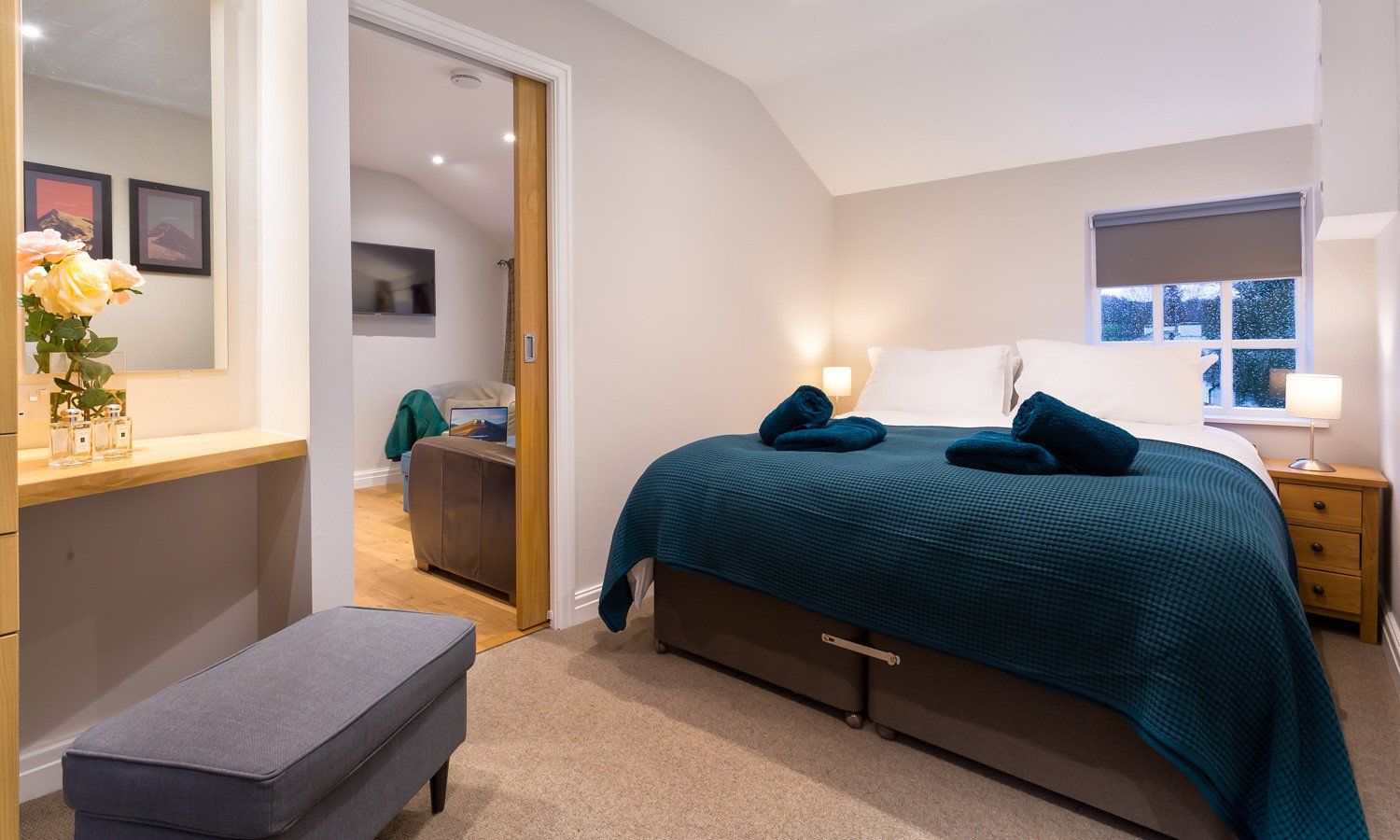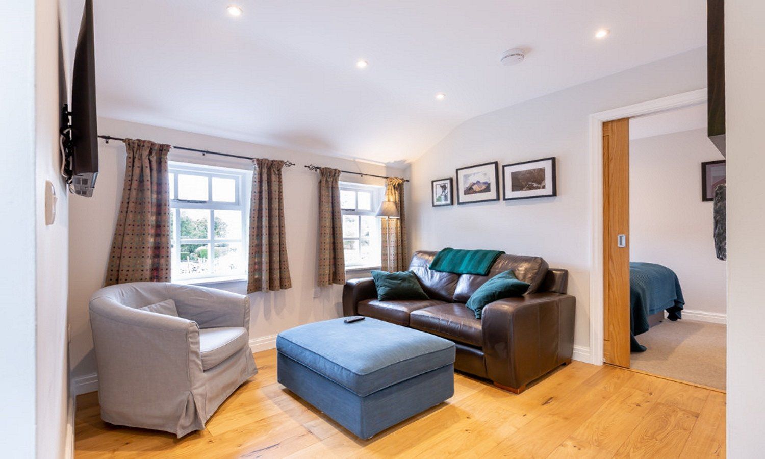 Accomodation Details All first floor. One bedroom: 1 x king-size double with en-suite shower room with shower, basin and WC. Kitchen with dining area. Sitting room with TV and log fire. Lockable barn for storage.