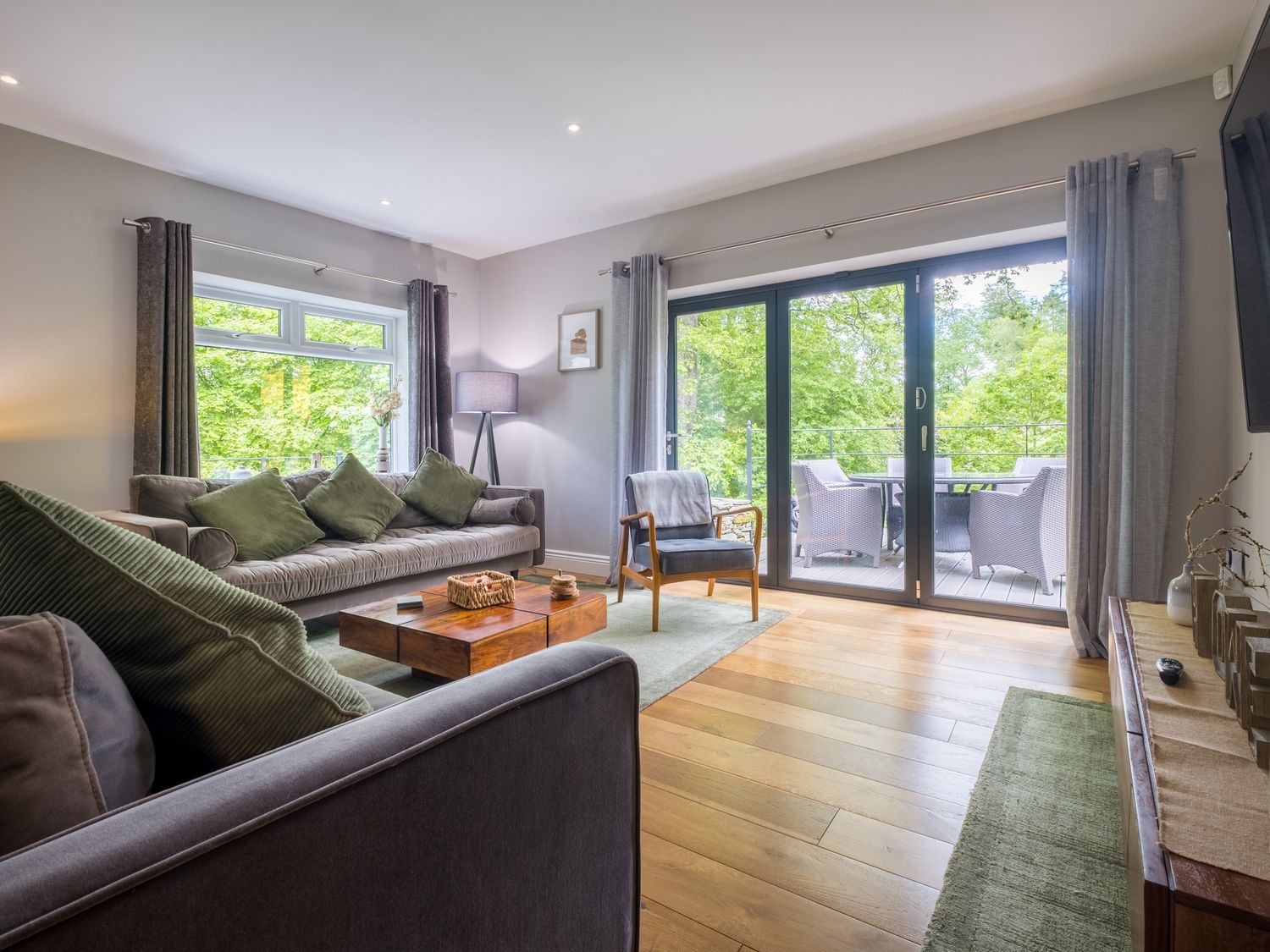Accomodation Details Three bedrooms with Smart TVs: 1 x ground-floor king-size with en-suite walk-in shower, basin, heated towel rail and WC, 2 x king-size and en-suite with walk-in shower, basin and WC. Cloakroom with basin and WC. Kitchen. Dining room. Sitting room. Snug
