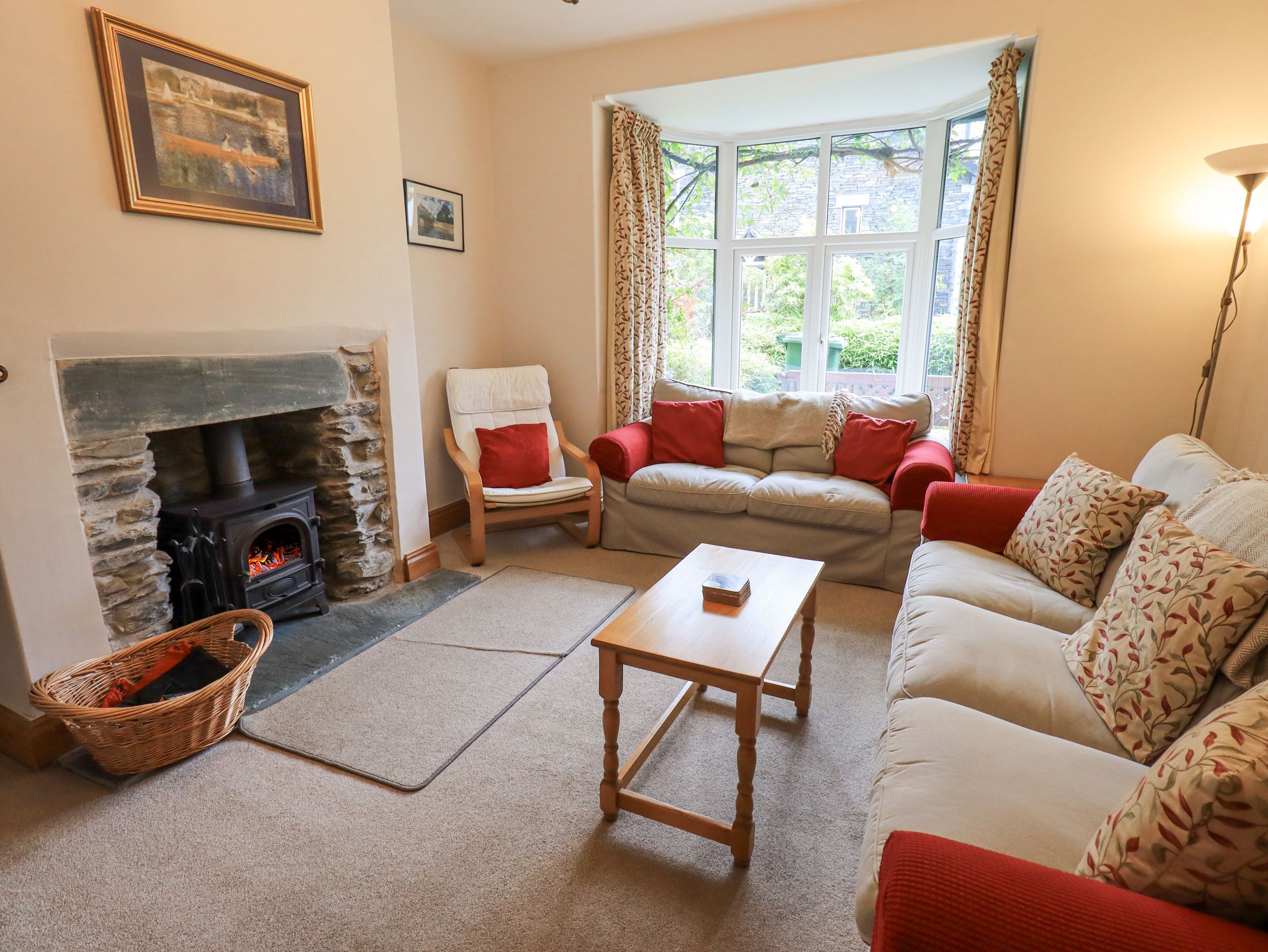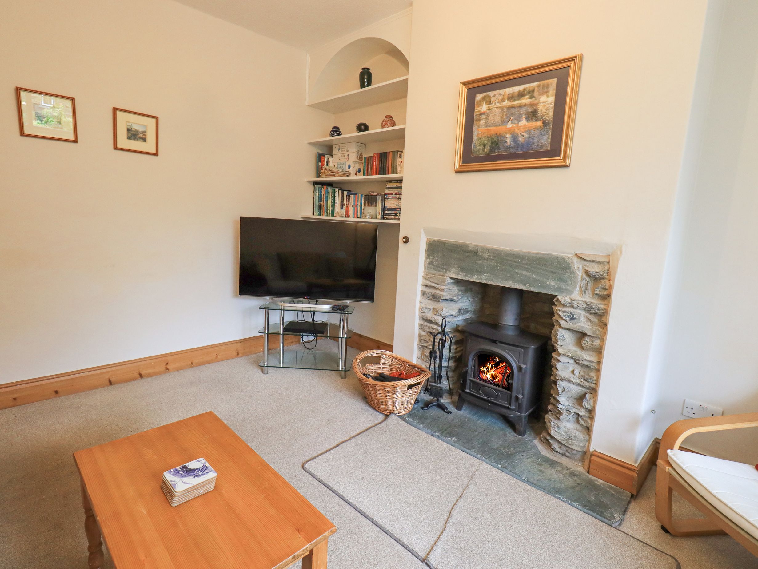 Amenities Gas central heating with gas fire and woodburning stove. Electric oven and hob, microwave, fridge/freezer, washer/dryer, dishwasher, TV with Freeview and DVD Player, WiFi. Fuel and power inc. in rent. Bed linen and towels inc. in rent. Travel cot and highchair in the property. Permit parking available on the street with additional permit parking available in the nearby public car park. Enclosed rear yard with outdoor seating and an enclosed patio to the front. Sorry, no pets and no smoking
