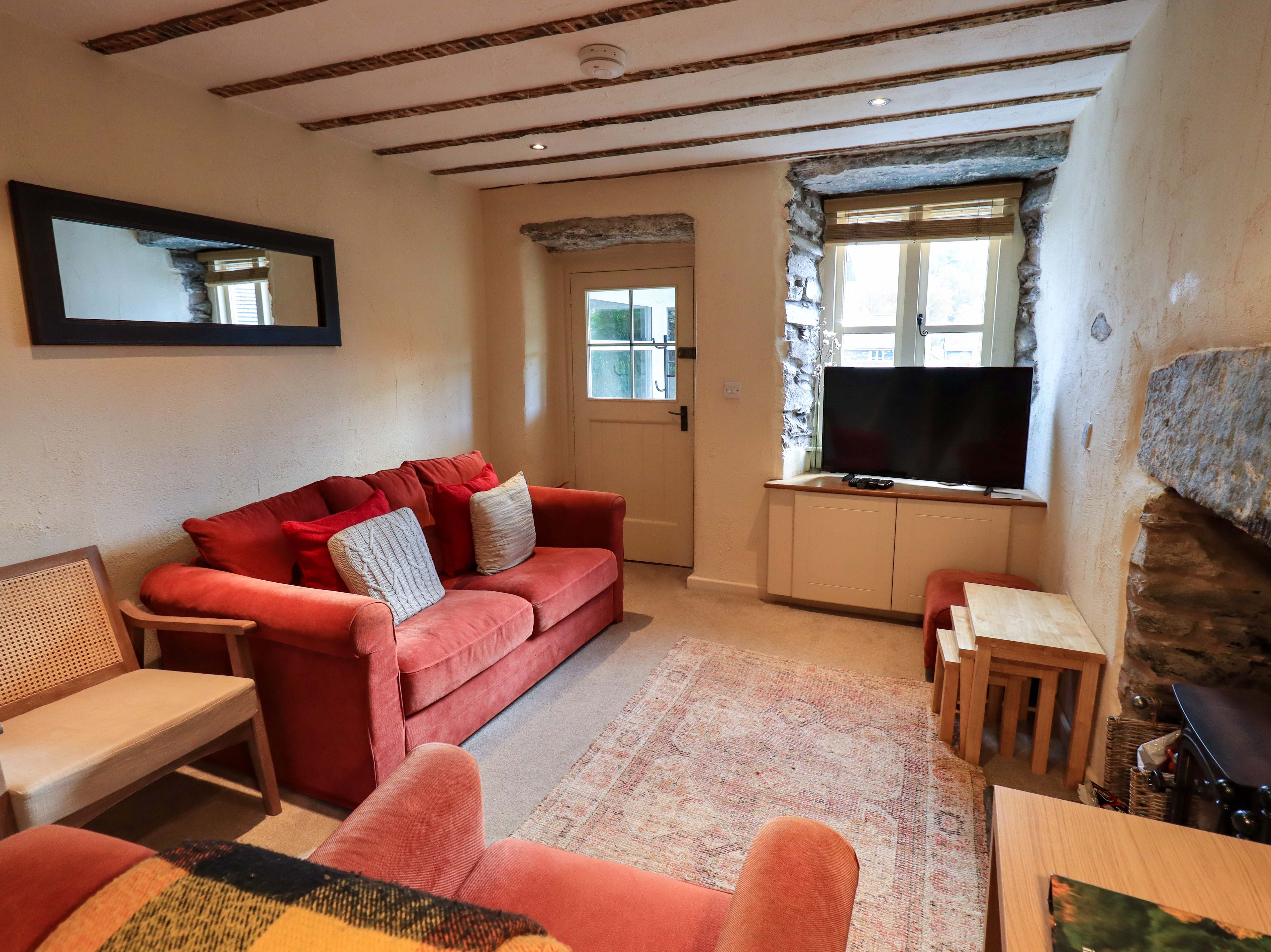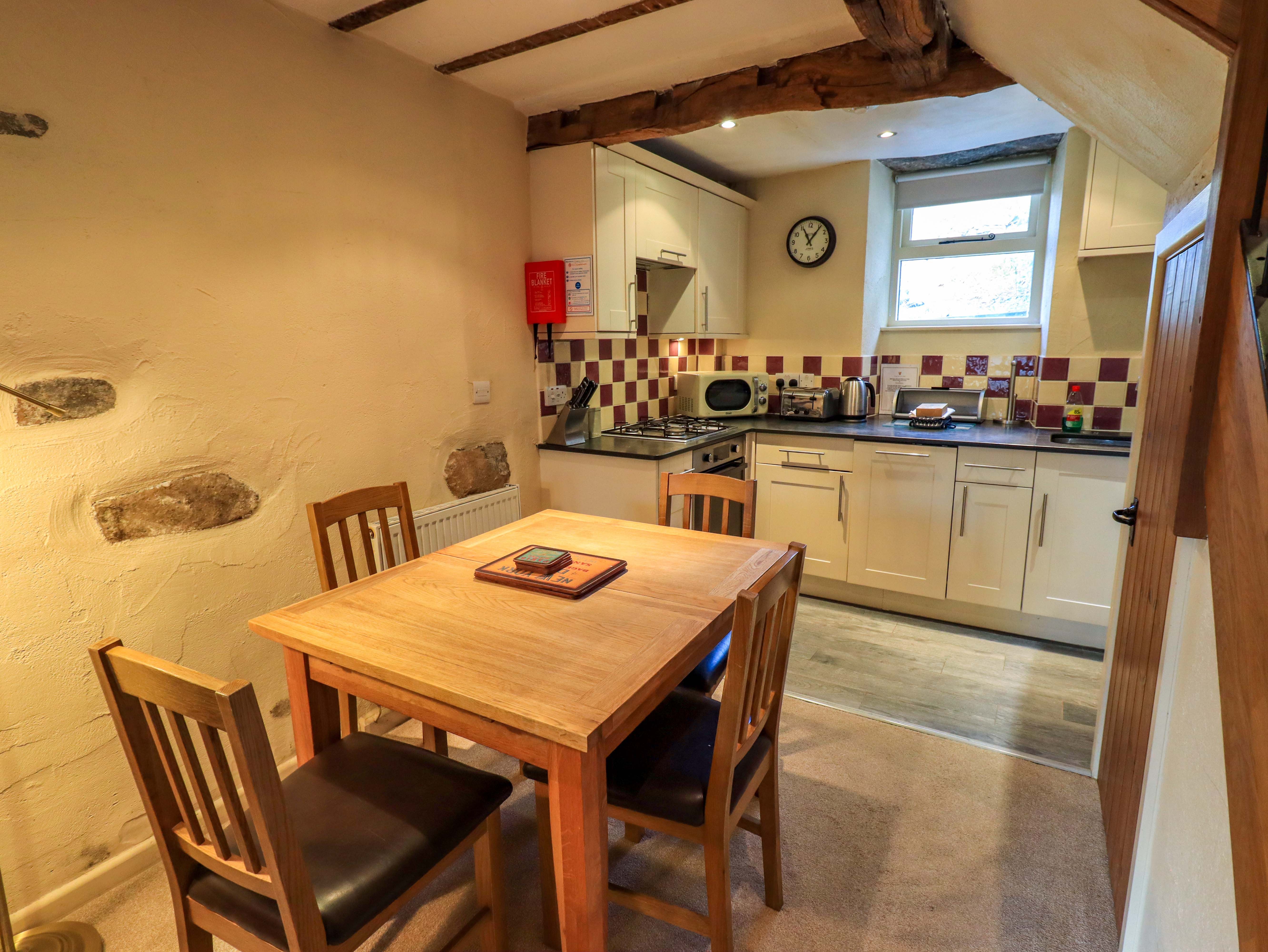Across three floors. Two bedrooms: 1 x double, 1 x second-floor double, 1 x second-floor single. Bathroom with bath, shower over, basin and WC. Open-plan living area with kitchen, dining and sitting area with multi-fuel stove