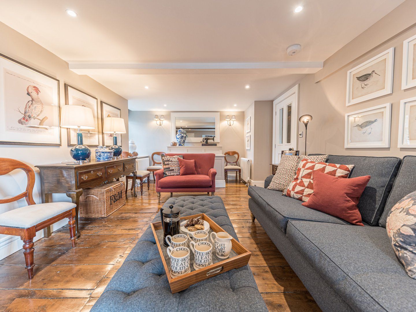 Amenities Underfloor heating throughout hallway and kitchen/diner, and woodburning stove. Lacanche range cooker with electric oven and gas hob, fridge, freezer, wine cooler, washing machine, tumble dryer, dishwasher, 75" Smart TV with Sky & Sky Sports, TVs in all bedrooms, and WiFi. Fuel and power inc. in rent. Bed linen and towels inc. in rent. Off-road parking for three cars. Patio terrace with table and chairs for 8, smaller coffee table and two chairs. Sorry, no pets and no smoking. Shop within 0.2 miles, pub within 0.1 mile. Note: Children and babies under 5 are not permitted at this property.